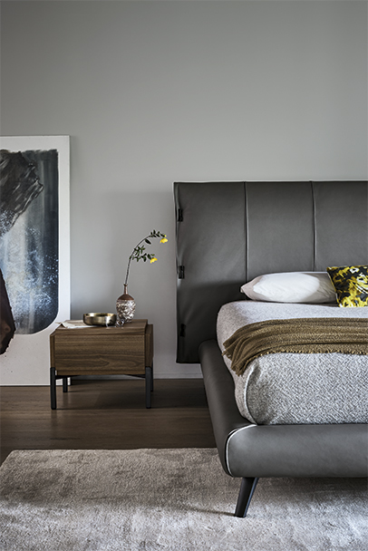 Кровать Cuff представляет собой элегантное и стильное решение для спальни, выполненное с изысканными деталями. Она доступна в одноместном и двухместном варианте, предлагая множество опций для индивидуализации. Мягкое изголовье с вертикальными складками и кожаными вставками придают модели благородный вид.