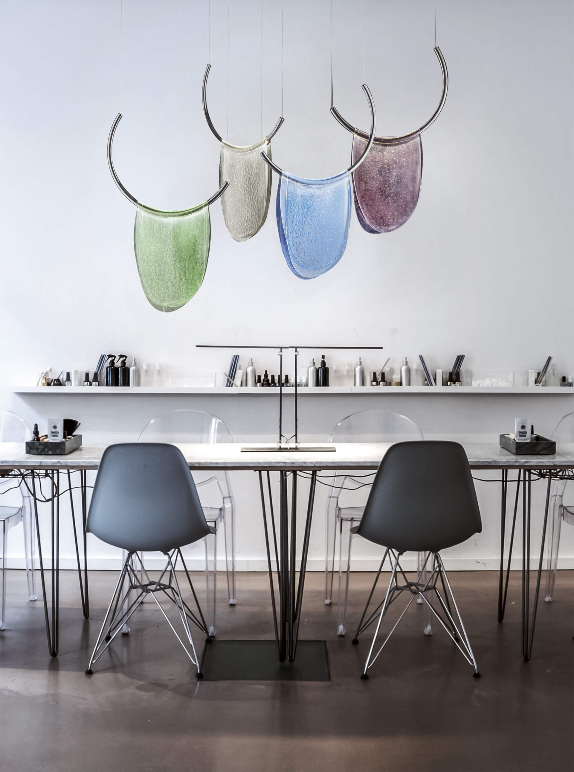 Подвеска с термоформованным стеклом и металлической конструкцией с отделкой стального серого цвета.