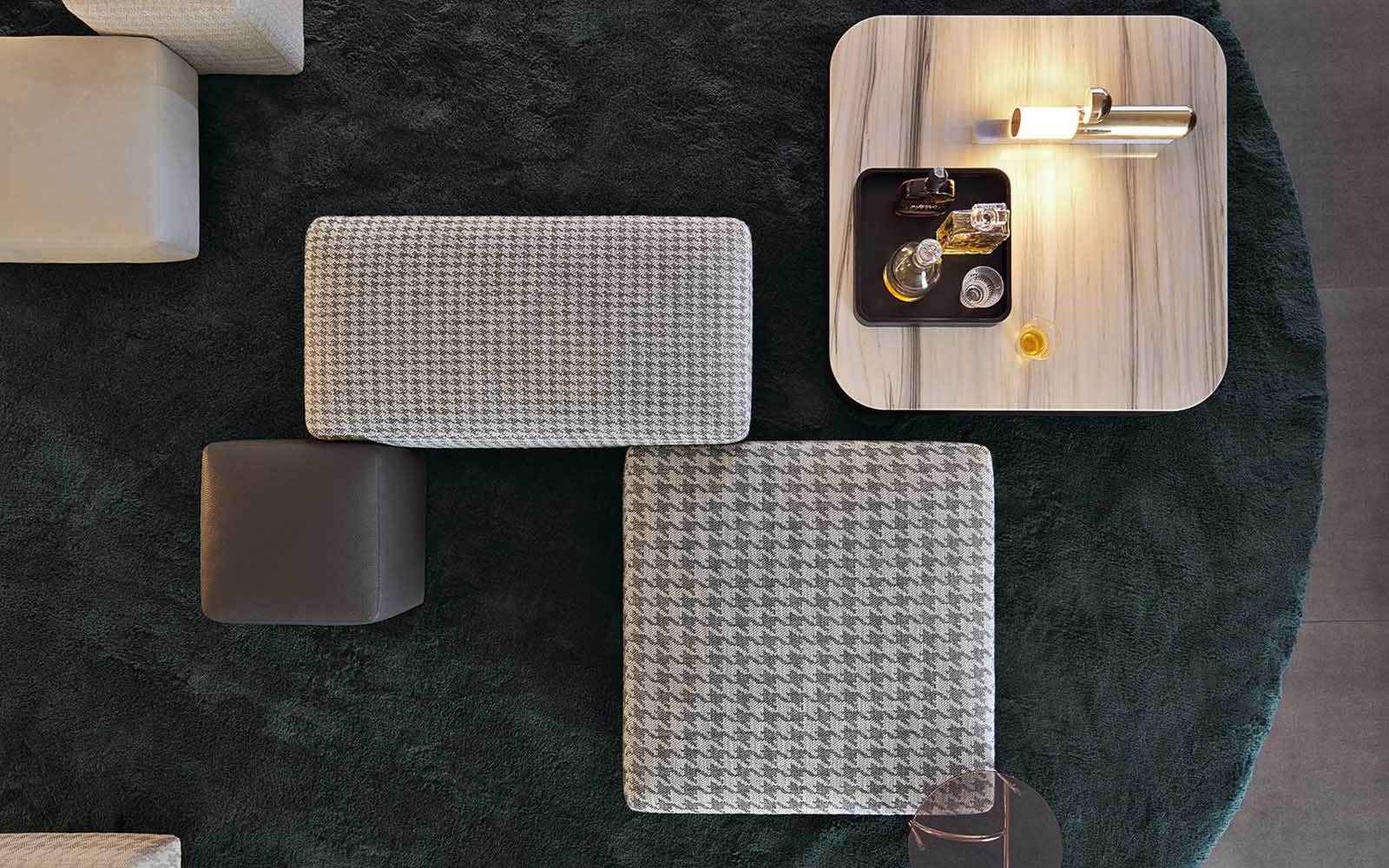 Пуф Damier — часть одноимённой системы модульной мебели, отличающейся чёткой геометрией и визуальной монолитностью. Компактный кубический элемент может использоваться как дополнительное сиденье или акцентный аксессуар.
