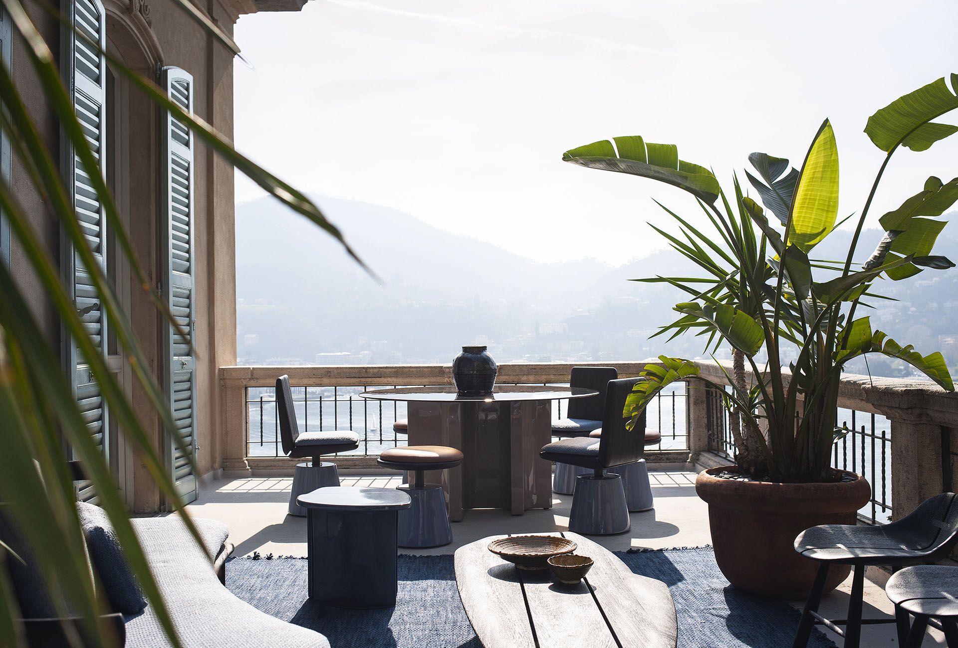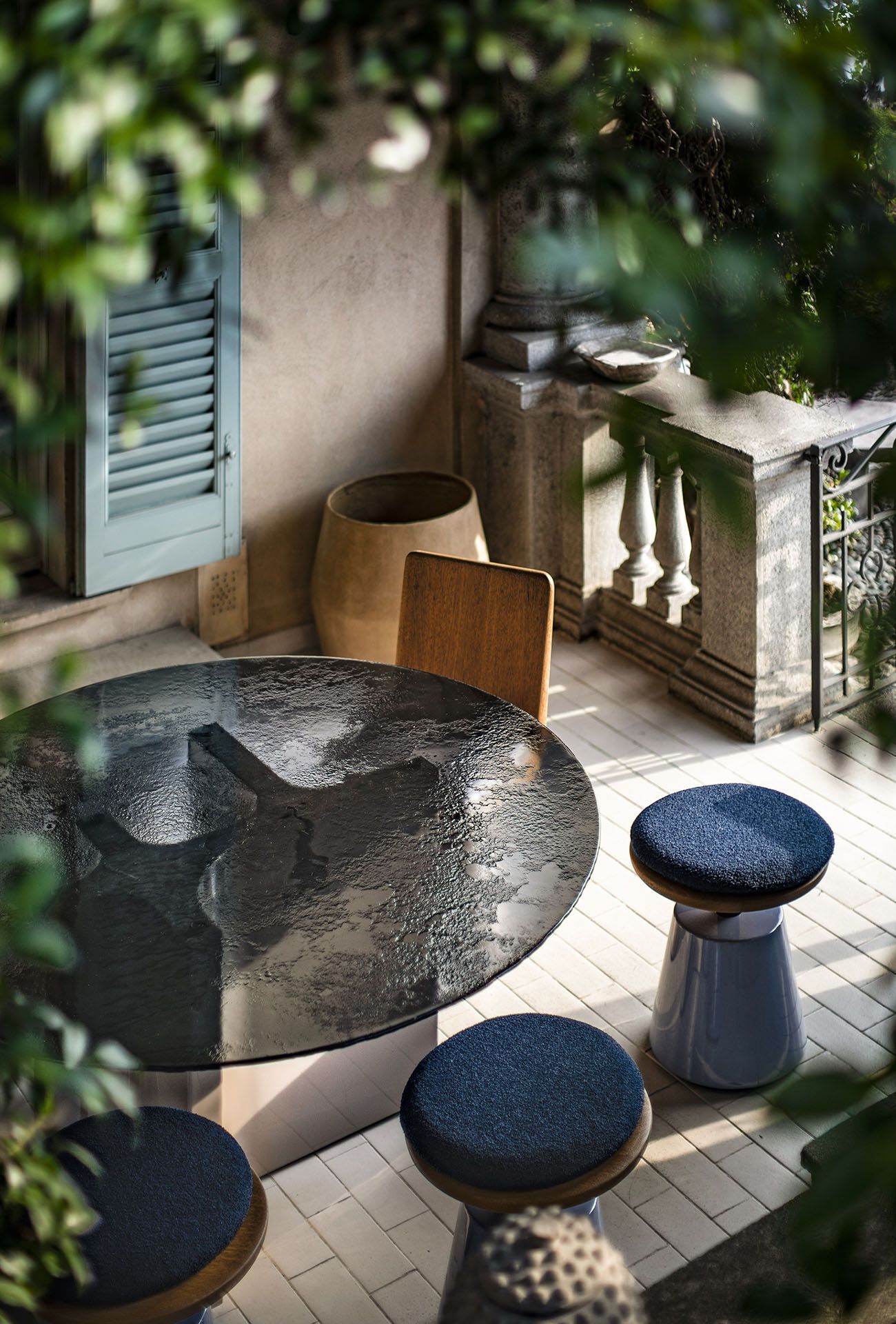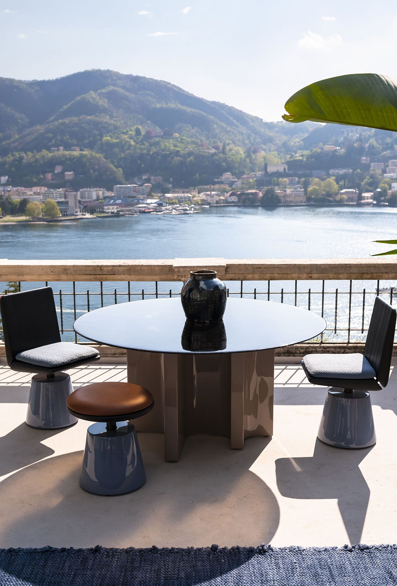 Коллекция вдохновлена постмодернизмом и эклектикой 70-х, отсылающей к эстетике Дэвида Хокни. Табурет, кресло, скамья и шезлонг из этой линейки сочетают пластичность и глянец, создавая динамичный образ. Аксессуары доступны с кожаными или тканевыми подушками для улицы. Studiopepe описывает проект как отказ от имитации природных материалов и поиск неожиданного комфорта у бассейна. Коллекция отлично вписывается не только в наружные, но и в жилые пространства.