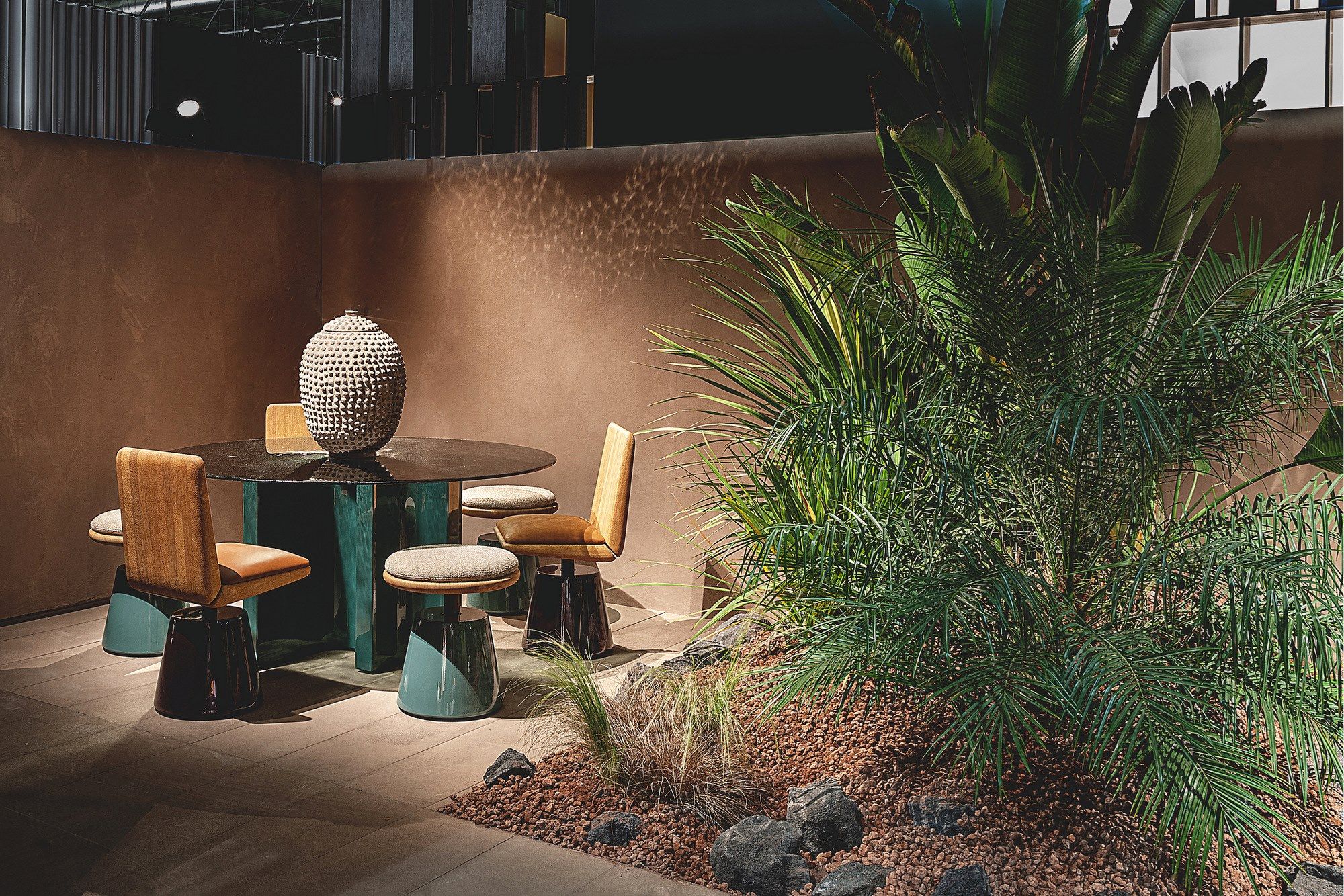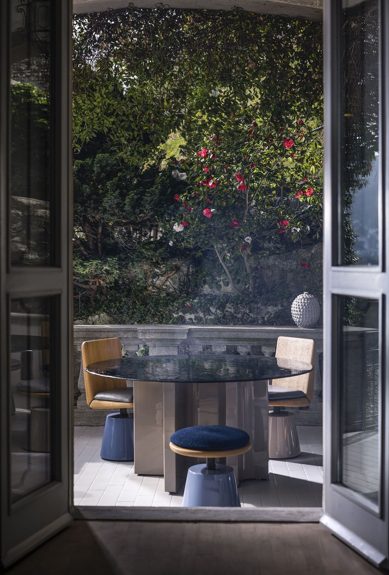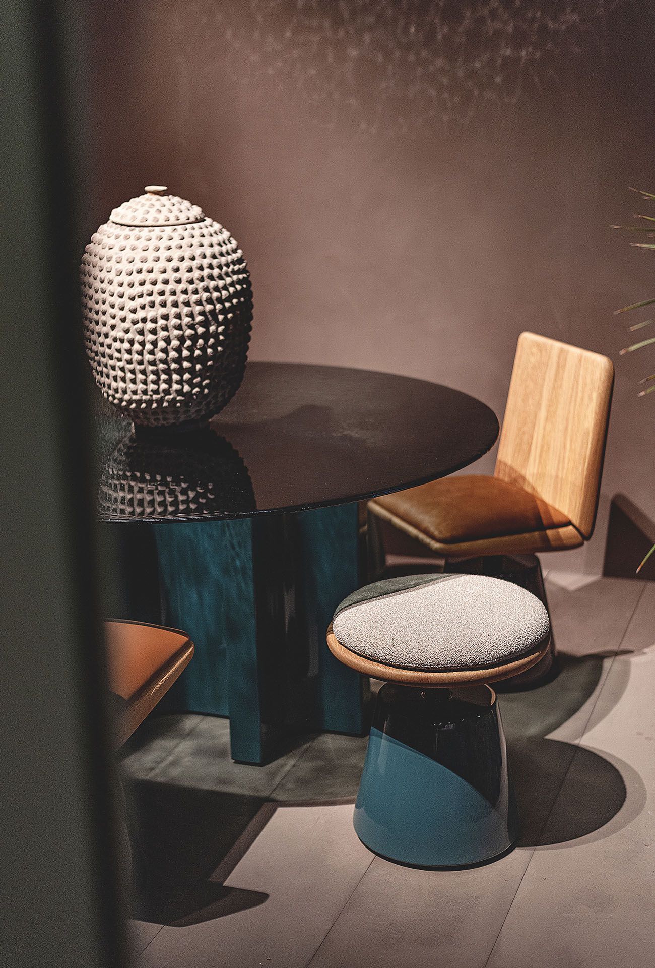 Коллекция вдохновлена постмодернизмом и эклектикой 70-х, отсылающей к эстетике Дэвида Хокни. Табурет, кресло, скамья и шезлонг из этой линейки сочетают пластичность и глянец, создавая динамичный образ. Аксессуары доступны с кожаными или тканевыми подушками для улицы. Studiopepe описывает проект как отказ от имитации природных материалов и поиск неожиданного комфорта у бассейна. Коллекция отлично вписывается не только в наружные, но и в жилые пространства.