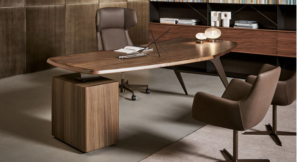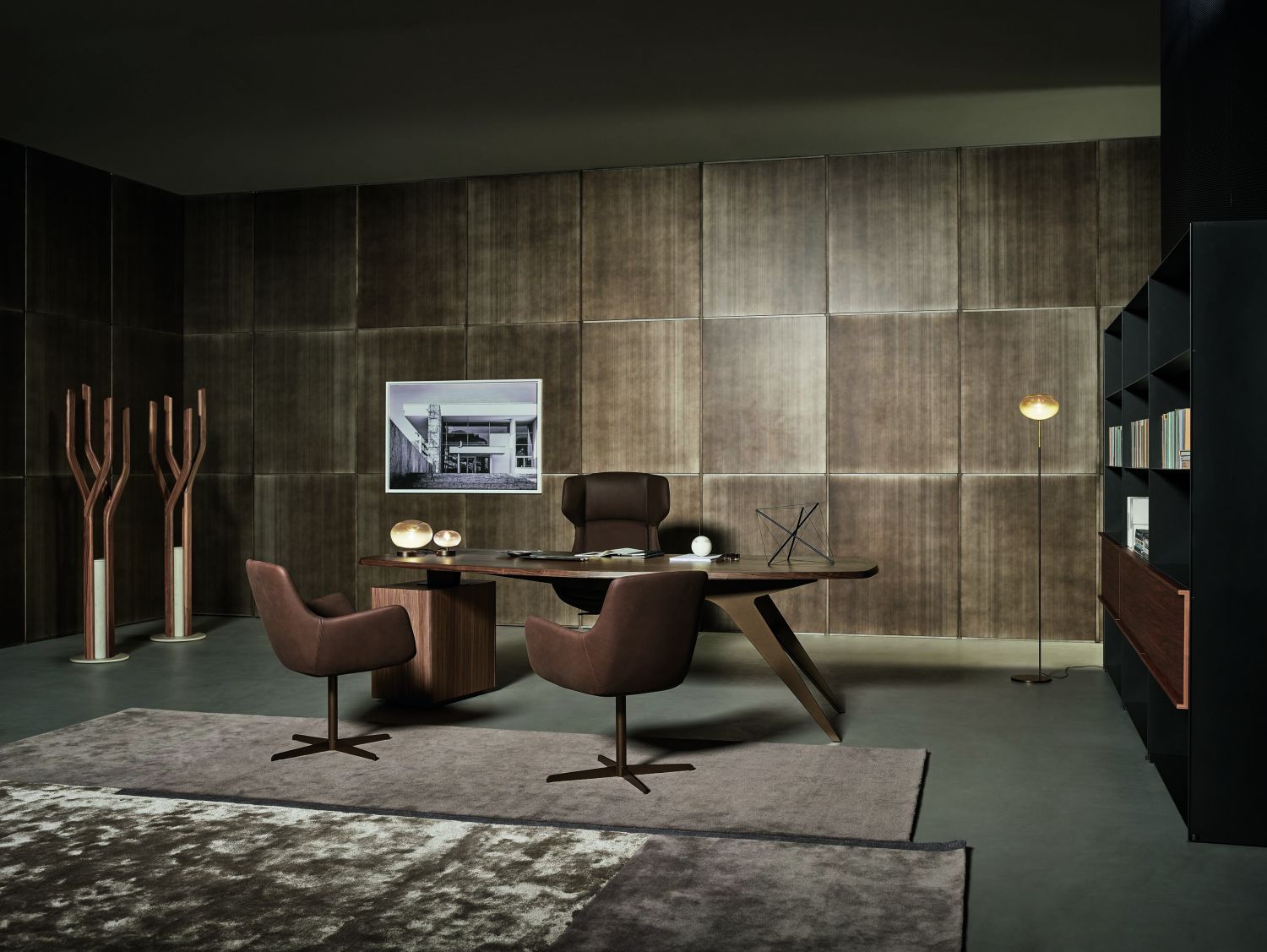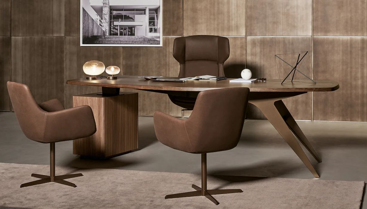 Diver — это представительский стол для руководителя, в котором сочетаются динамика и утончённая архитектурная выразительность. Его образ навеян плавным, контролируемым движением водолаза, что отражается в сбалансированной конструкции, отсылающей к эстетике конструктивизма.