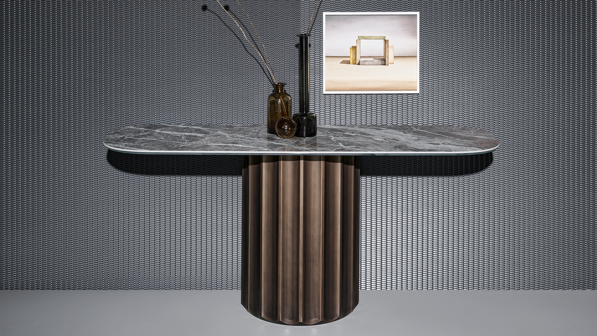 Консоль Dorian вдохновлена образом дорической колонны — одного из ключевых символов архитектуры Древней Греции. Этот классический элемент был переосмыслен и адаптирован в качестве опоры для современного предмета мебели. Основание консоли выполнено из полиуретана с матовой отделкой и украшено характерными каннелюрами, напоминающими о традиционных формах колонн. Вместо классической капители на верхней части установлена столешница из дерева, керамики или мрамора, что создаёт выразительный визуальный контраст между легкостью отделки и массивностью основания.