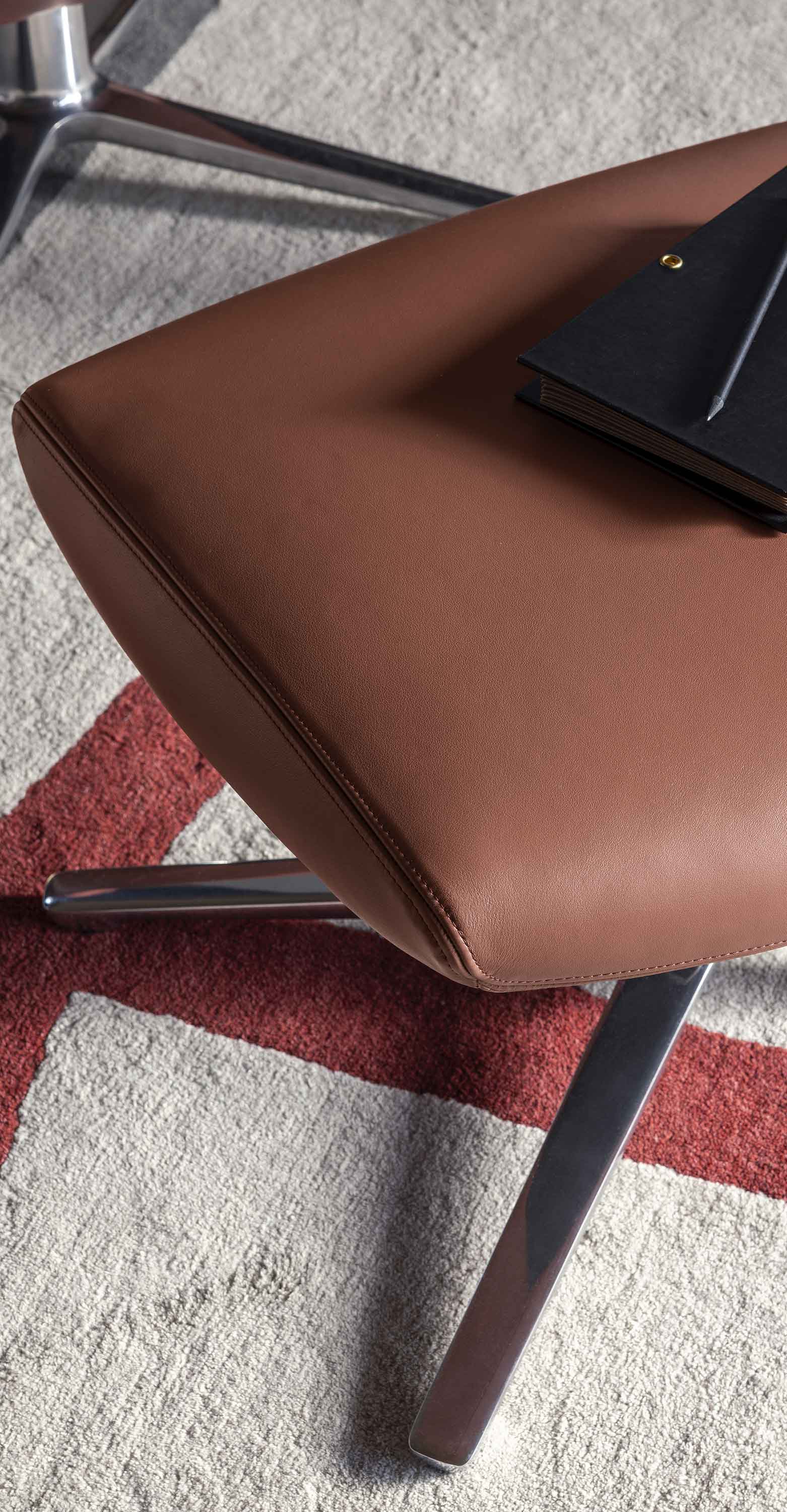 Пуф Downtown Lounge идеально дополняет одноименное кресло. Усиленная конструкция и жёсткая обивка делают его прочным и долговечным. Основание пуфа может быть выполнено из массива дерева с различными вариантами отделки или из металла с четырёхлучевой литым алюминиевым каркасом. В обеих версиях пуф Downtown Lounge доступен с кожаной или тканевой обивкойPelle Frau® различных цветов.