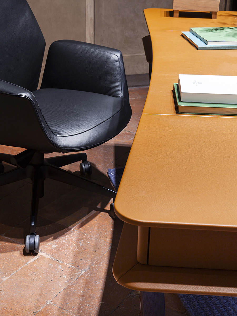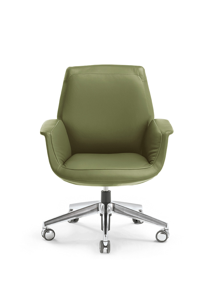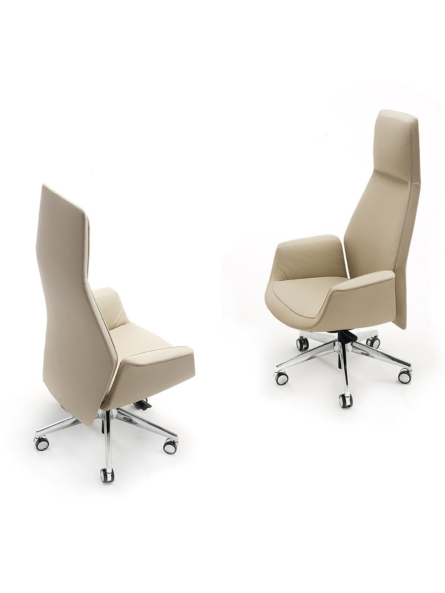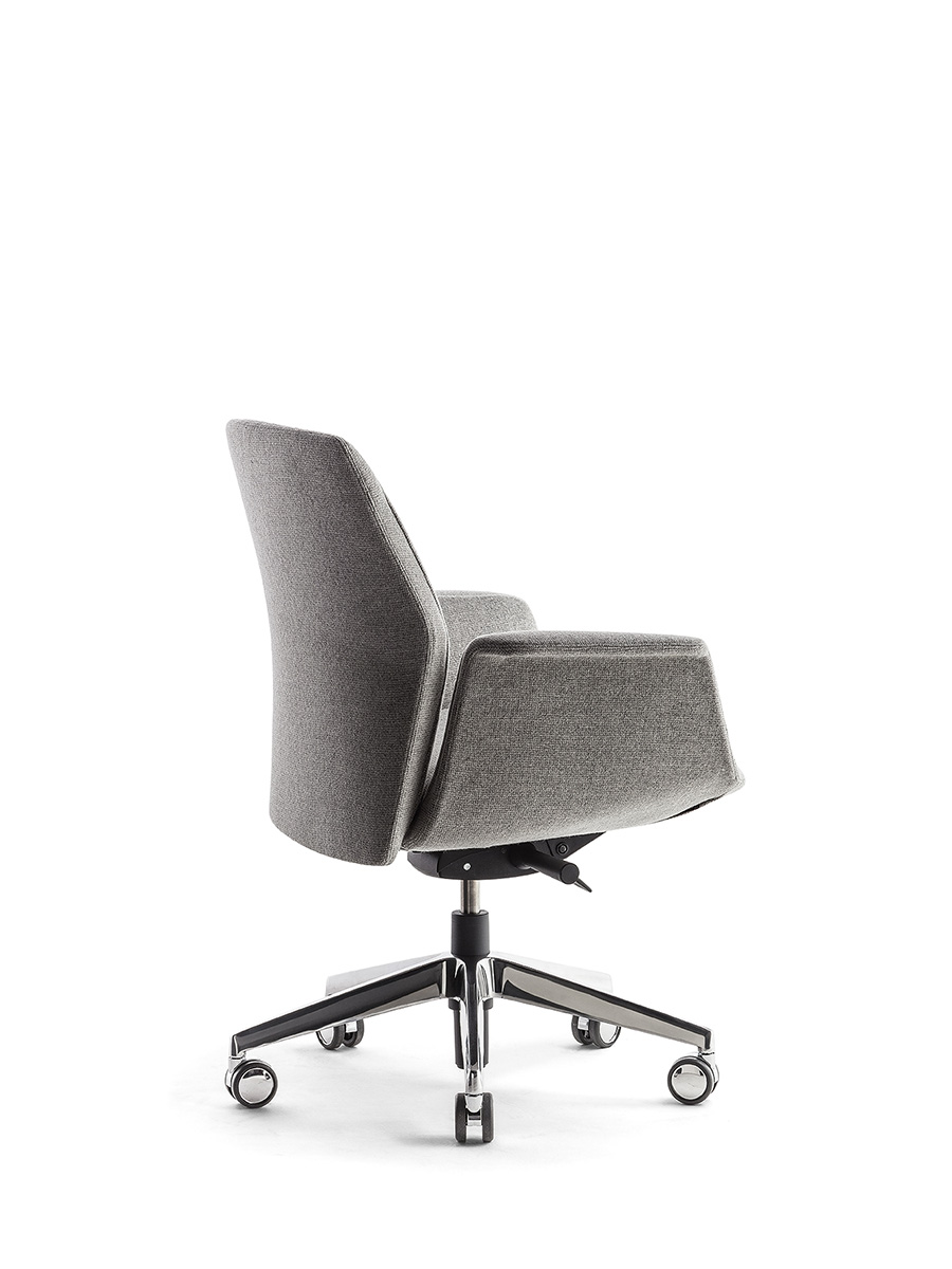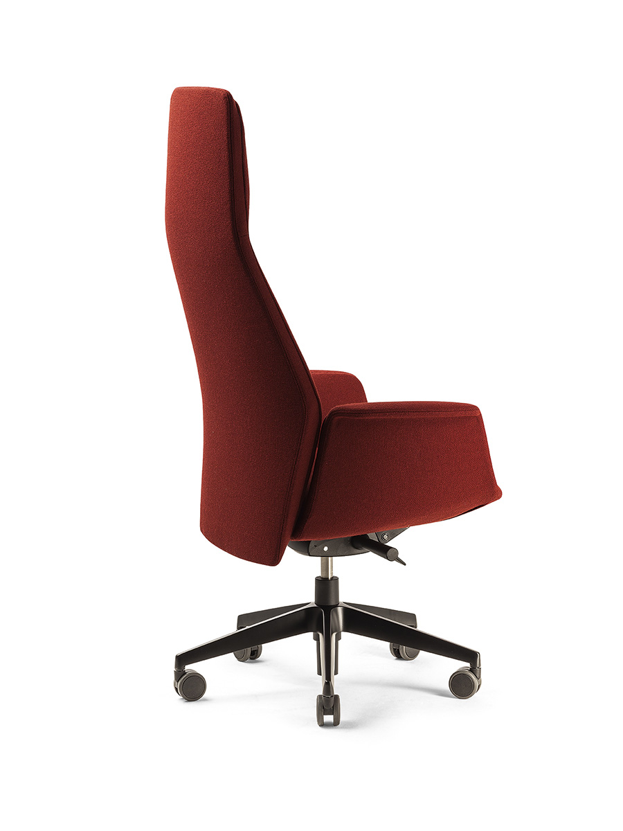 Кресло Downtown доступно в следующих моделях: President, Executive, Managerial и Meeting. Обивка выполнена из материала Pelle Frau®, дополненного строчкой в тон или контрастного цвета. Также доступна версия с микроперфорацией на внутренней поверхности сиденья, спинки, подлокотников и подушки. Основание изготовлено из глянцевого или окрашенного в черный цвет алюминия и состоит из пяти спиц, оснащенных мягкими самотормозящими поворотными роликами «W», которые адаптируются к любому типу напольного покрытия. Кресла Downtown регулируются по высоте и вращаются вокруг своей оси, если потянуть за рычаг под сиденьем с правой стороны. Версии President, Executive и Managerial оснащены механизмом наклона спинки и сиденья «Syncron», который позволяет креслу легко следовать за движениями тела, обеспечивая исключительный комфорт. Механизм кресла имеет возможность фиксации в четырех положениях. Downtown Meeting может вращаться вокруг своей оси благодаря упорному подшипнику.