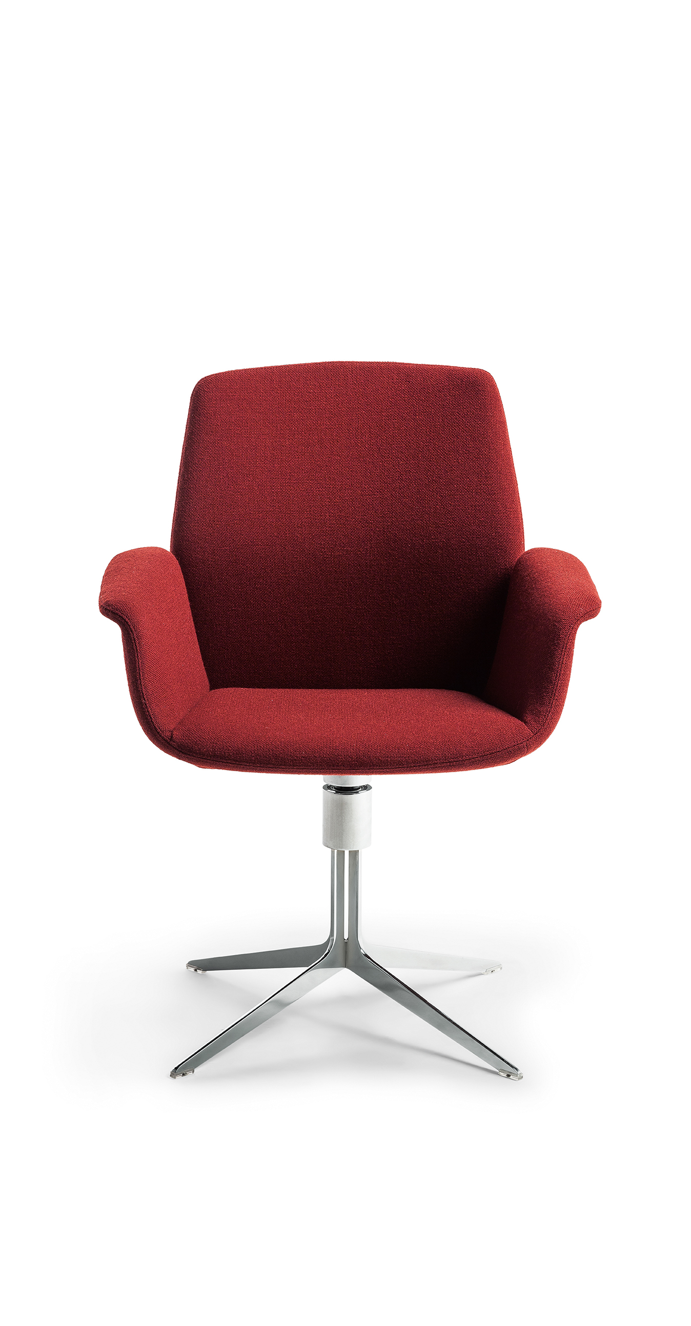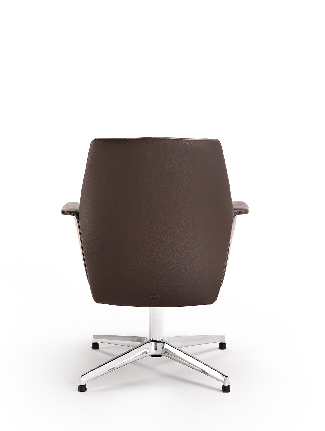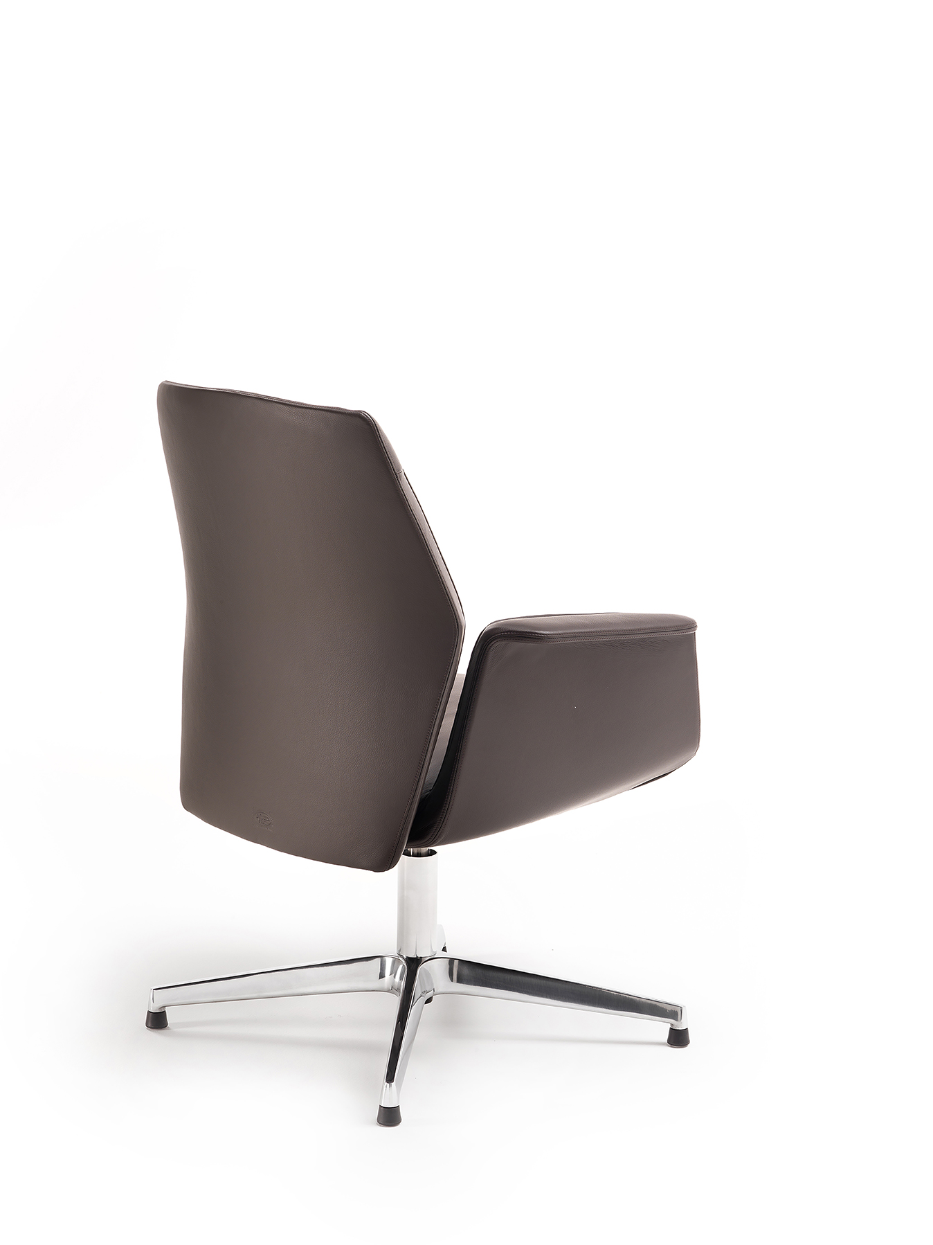 Обивка кресла Downtown Visitor дополнена строчкой в тон или контрастного цвета и выполнена из материала Pelle Frau®, который также доступен в версии с микроперфорацией на внутренней поверхности сиденья, спинки, подлокотников и подушки. Основание, изготовленное из глянцевого или окрашенного в черный цвет алюминия, состоит из четырех спиц с поворотными направляющими из пластика. Кресло регулируется по высоте и может вращаться, потянув за рычаг под сиденьем с правой стороны. Downtown Visitor оснащено возвратным механизмом благодаря упорному подшипнику, который позволяет креслу вращаться и возвращаться в исходное положение.