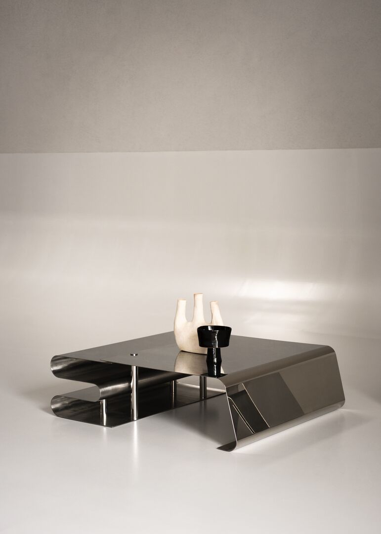 Каждый изгиб конструкции формирует практичные поверхности — Dune одинаково уместен как в роли журнального столика в гостиной, так и в качестве тумбы рядом с кроватью. Отражающая поверхность усиливает эффект простора и игры света, превращая столик в динамичный акцент интерьера.