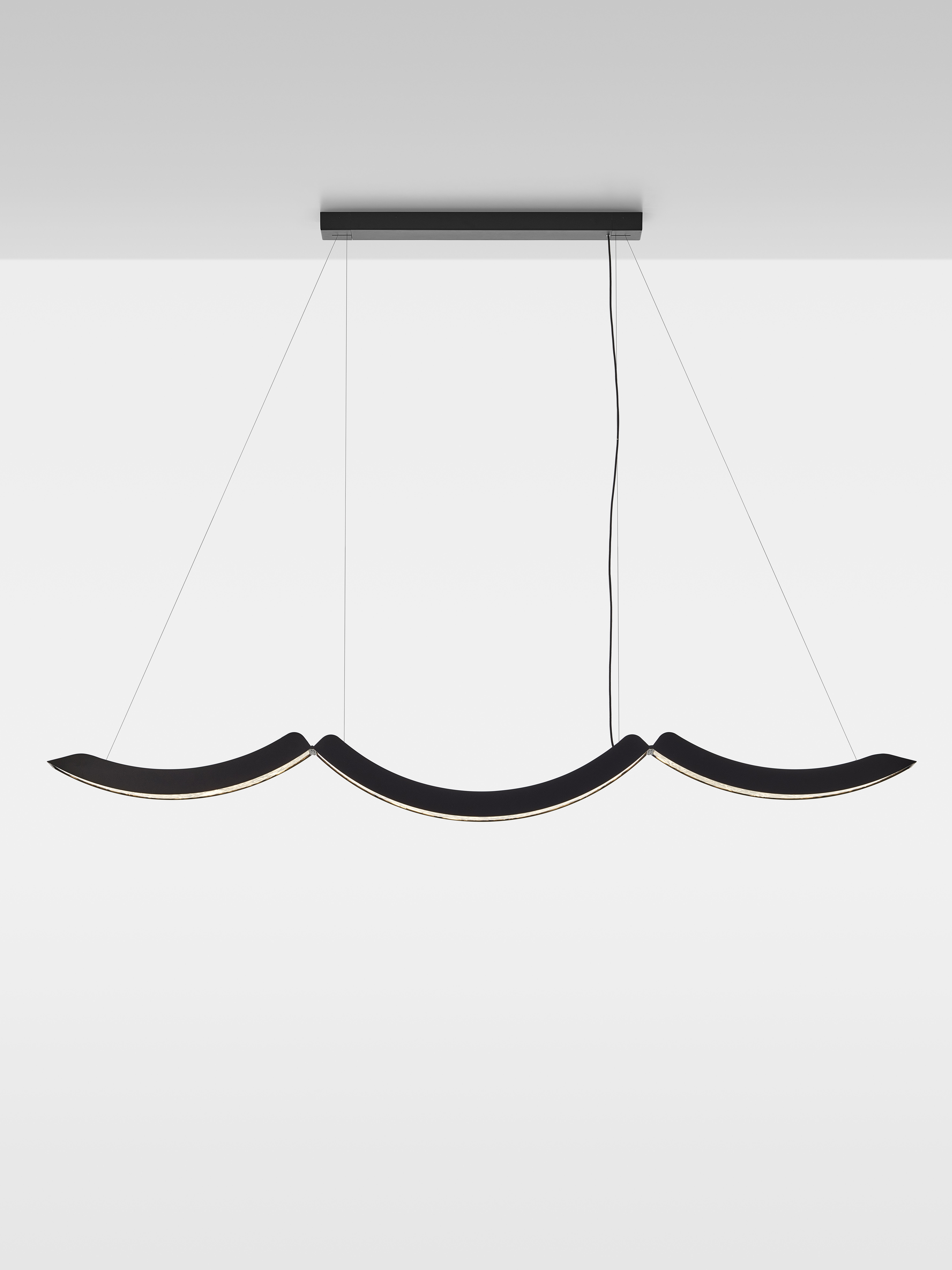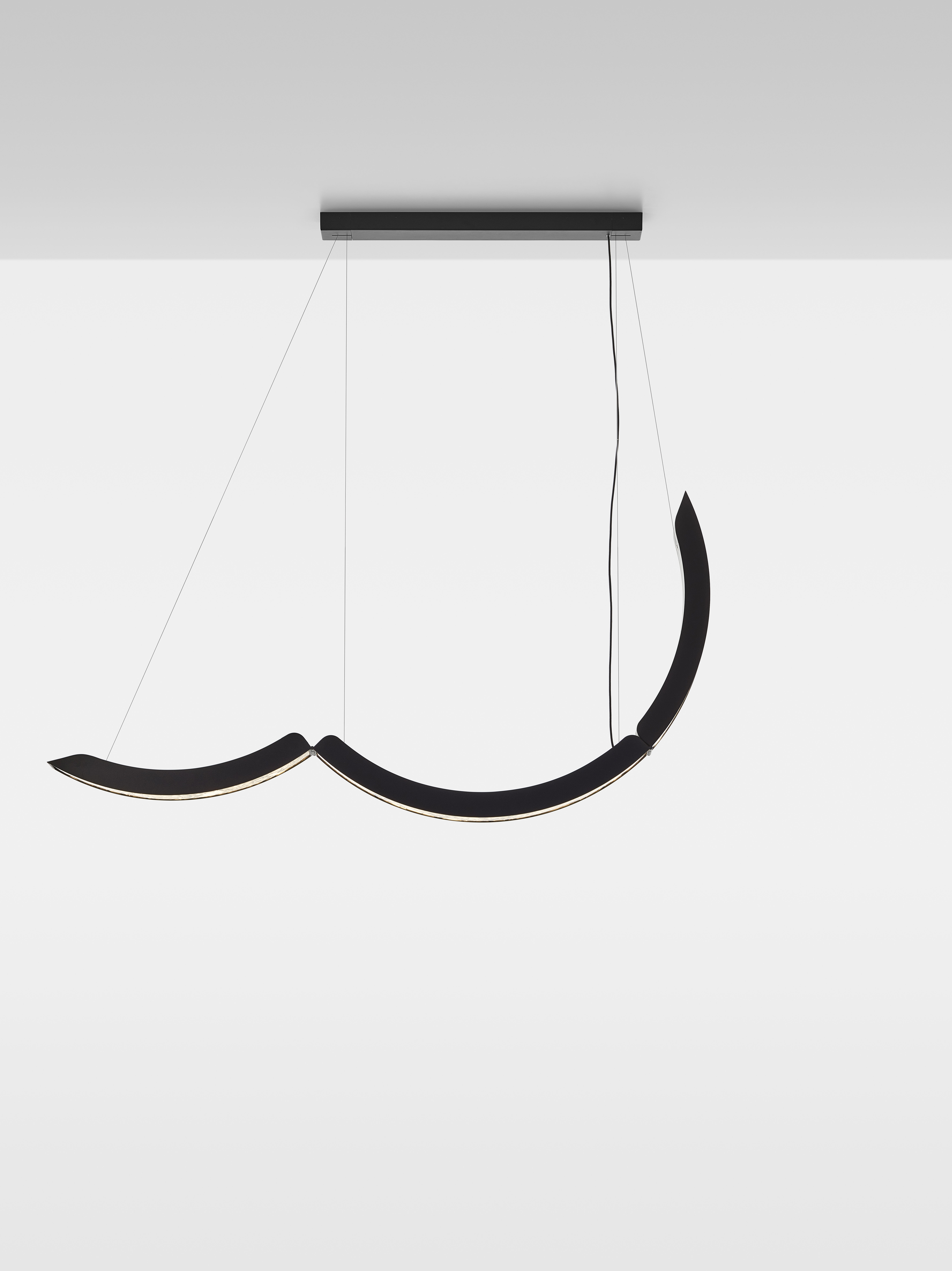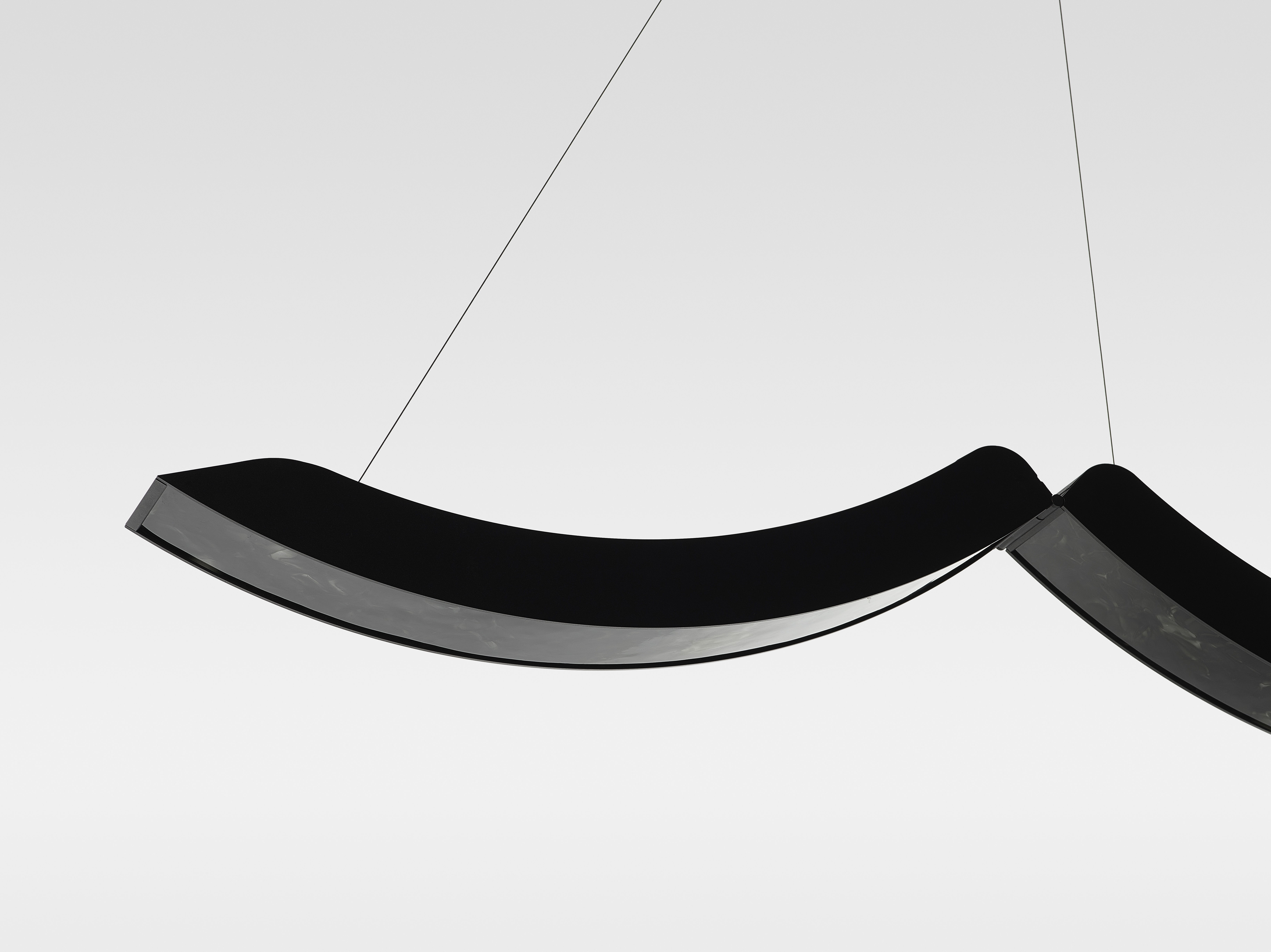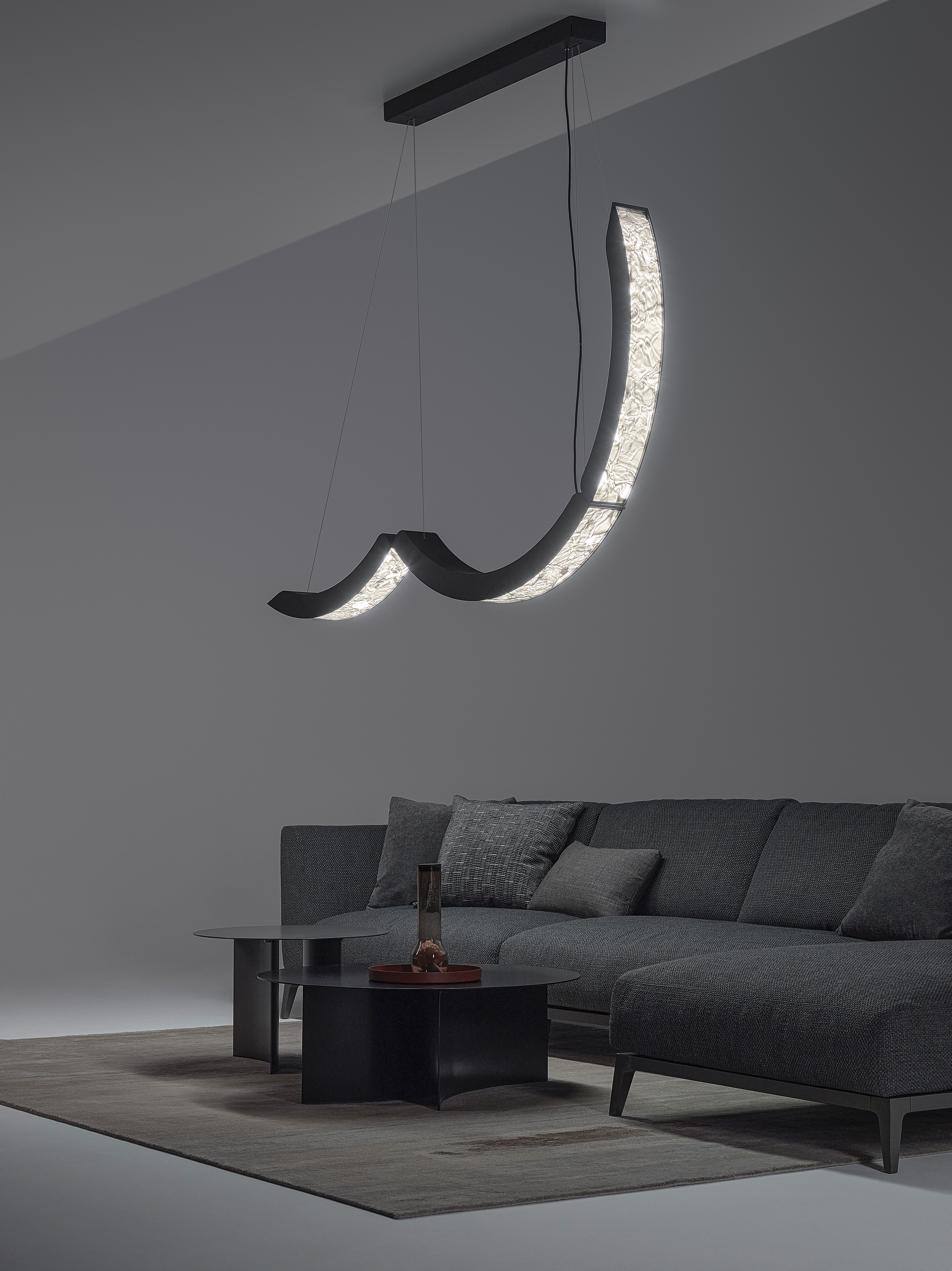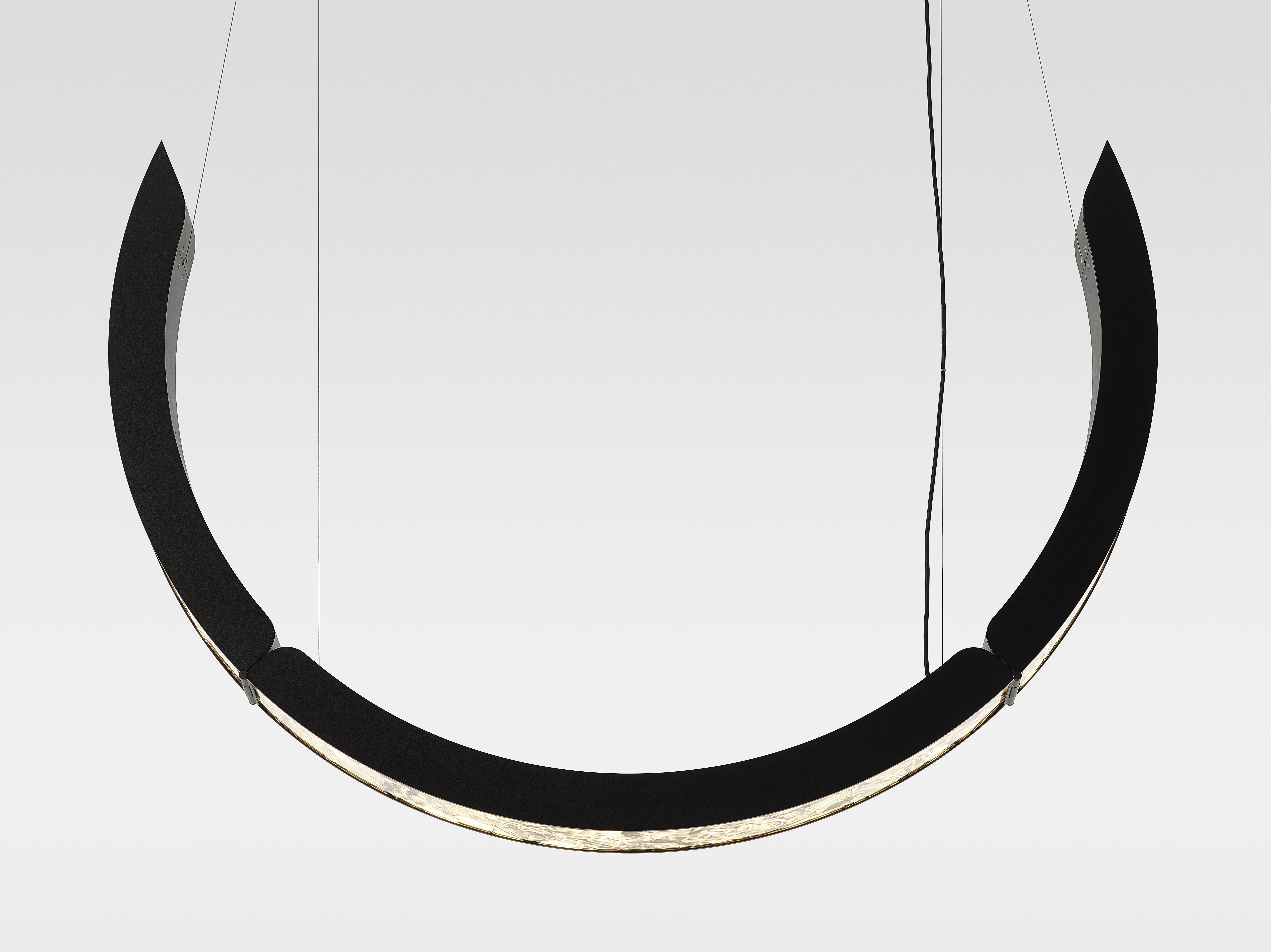 Коллекция Elo — инновационный подвесной светильник, в котором выразительная фактура BROKISGLASS сочетается с изящной алюминиевой конструкцией. Композиция построена на трёх подвижных дугах, две из которых можно фиксировать в различных положениях, формируя разнообразные сценографические решения и задавая пространству яркий архитектурный ритм.