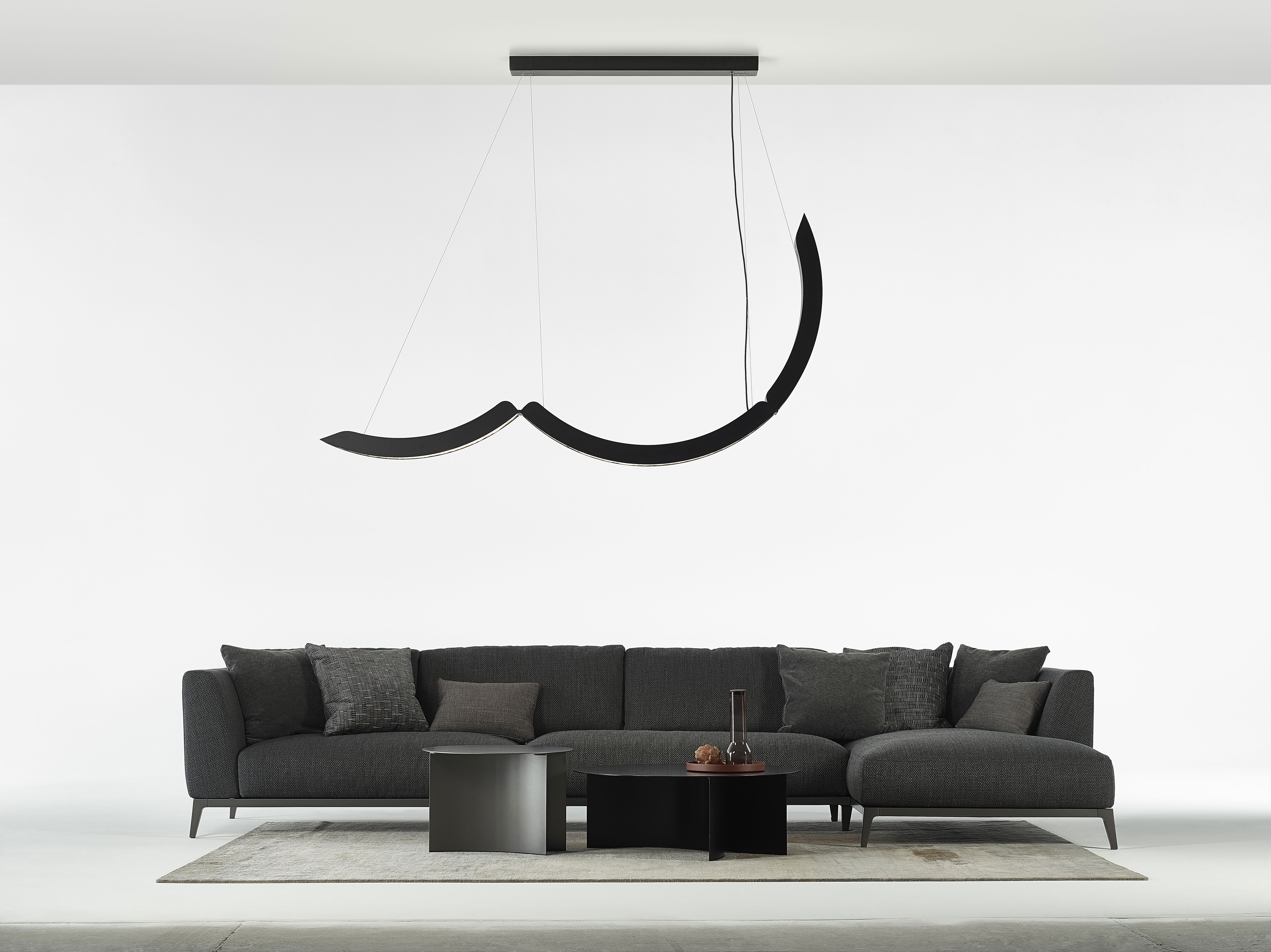 Elo может использоваться как линейный подвес или как сложная многосоставная композиция. Светильник органично вписывается в масштабные частные интерьеры, а также в общественные пространства — отели, рестораны и офисы, где выступает самостоятельным художественным элементом.