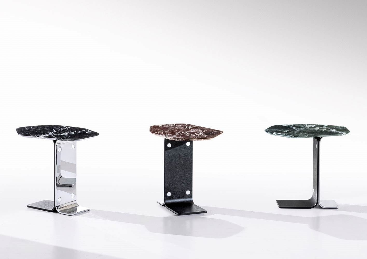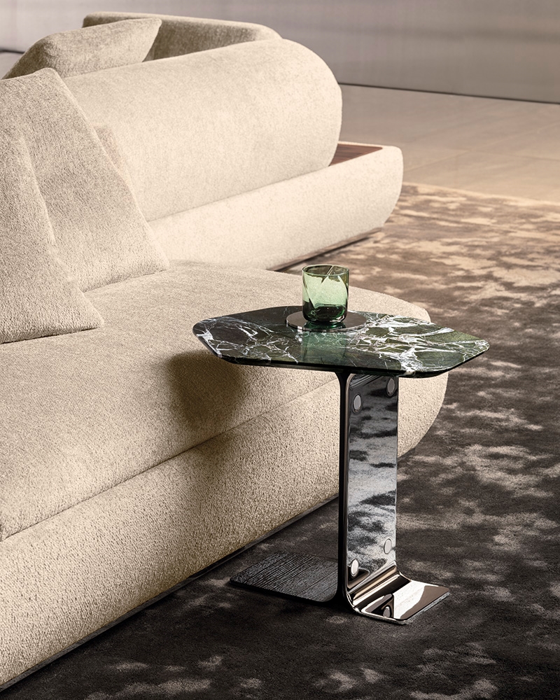 Ethan — это столик с мраморной столешницей неправильной шестиугольной формы, опирающейся на оригинальное основание. Его уникальная геометрия и сочетание материалов придают интерьеру современный и изысканный вид.