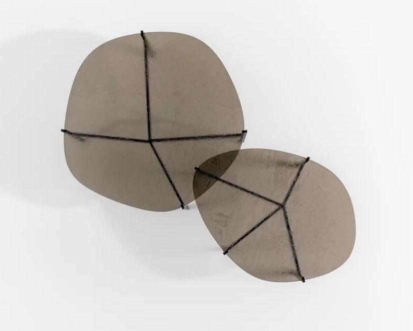 Изящную конструкцию поддерживает металлическое основание в виде перекрещивающихся ножек, придающее столикам воздушность и современность.