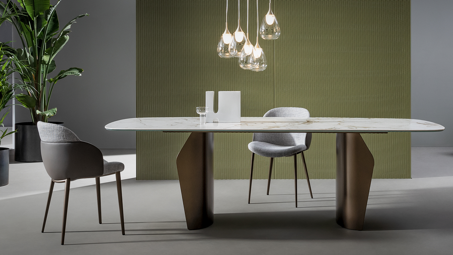 В Flame форма и функция сливаются в единое целое: стол легко адаптируется под стиль интерьера и потребности пользователя. Индивидуальная конфигурация позволяет подобрать идеальные сочетания материалов и отделок — от благородного дерева до керамики и мрамора.