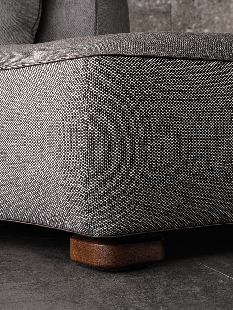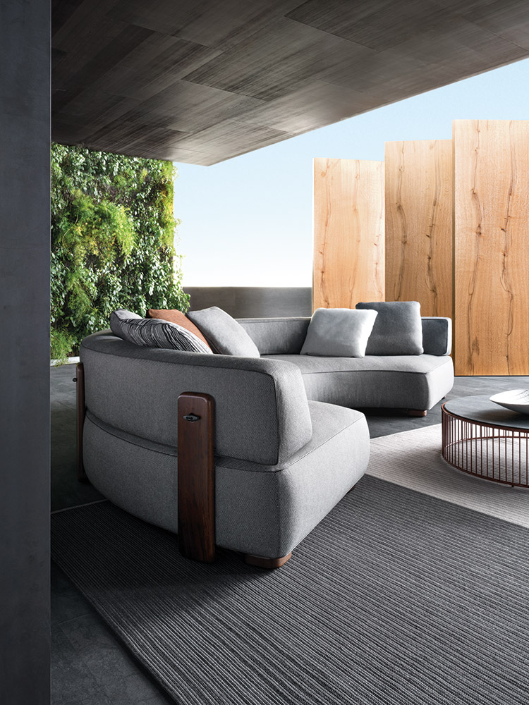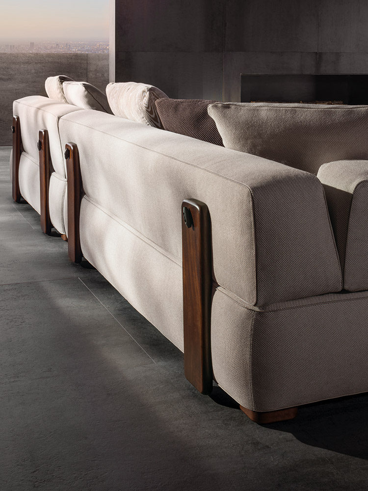 Диван Florida от Minotti разработан с учётом смешения материалов. Он включает в себя декоративные деревянные элементы, в частности:
