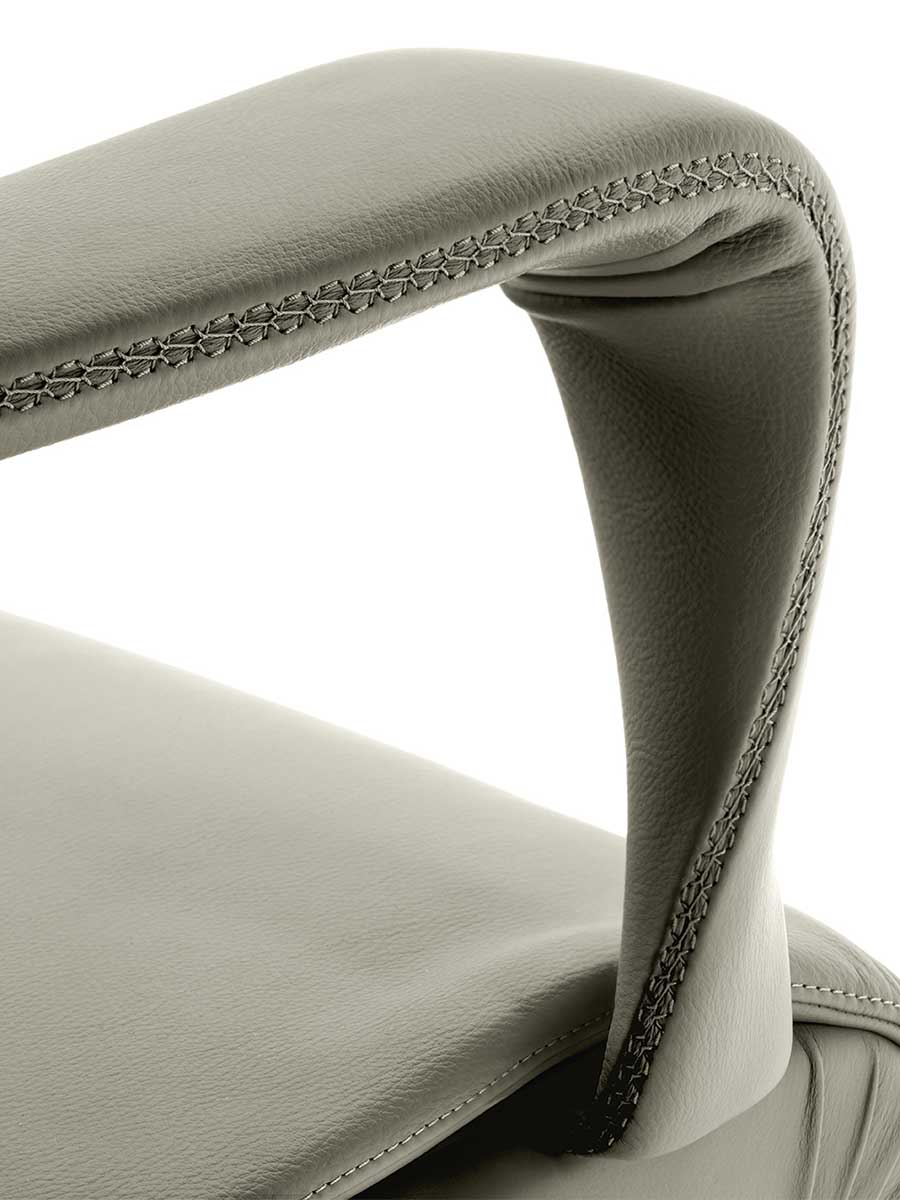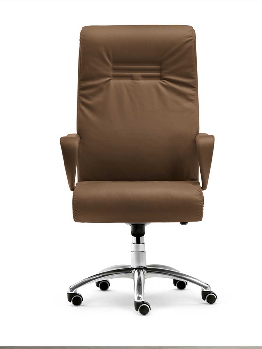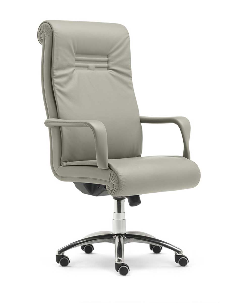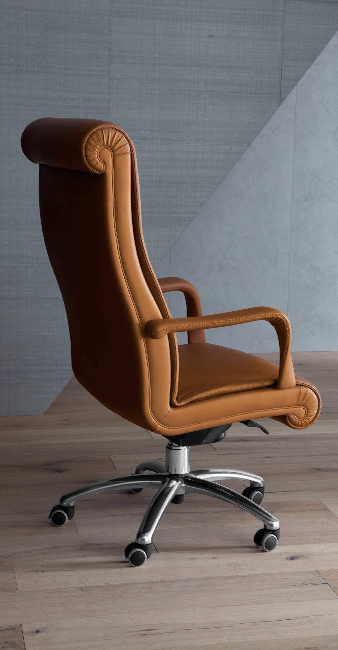 Кресло Forum President имеет пятилучевую крестовину из окрашенного в черный цвет или полированного алюминия, вращается на 360° и регулируется по высоте. Каркас изготовлен из березовой фанеры с перекладинами из массива бука и наполнителем из вспененного полиуретана. Обивка выполнена из материала Pelle Frau®.