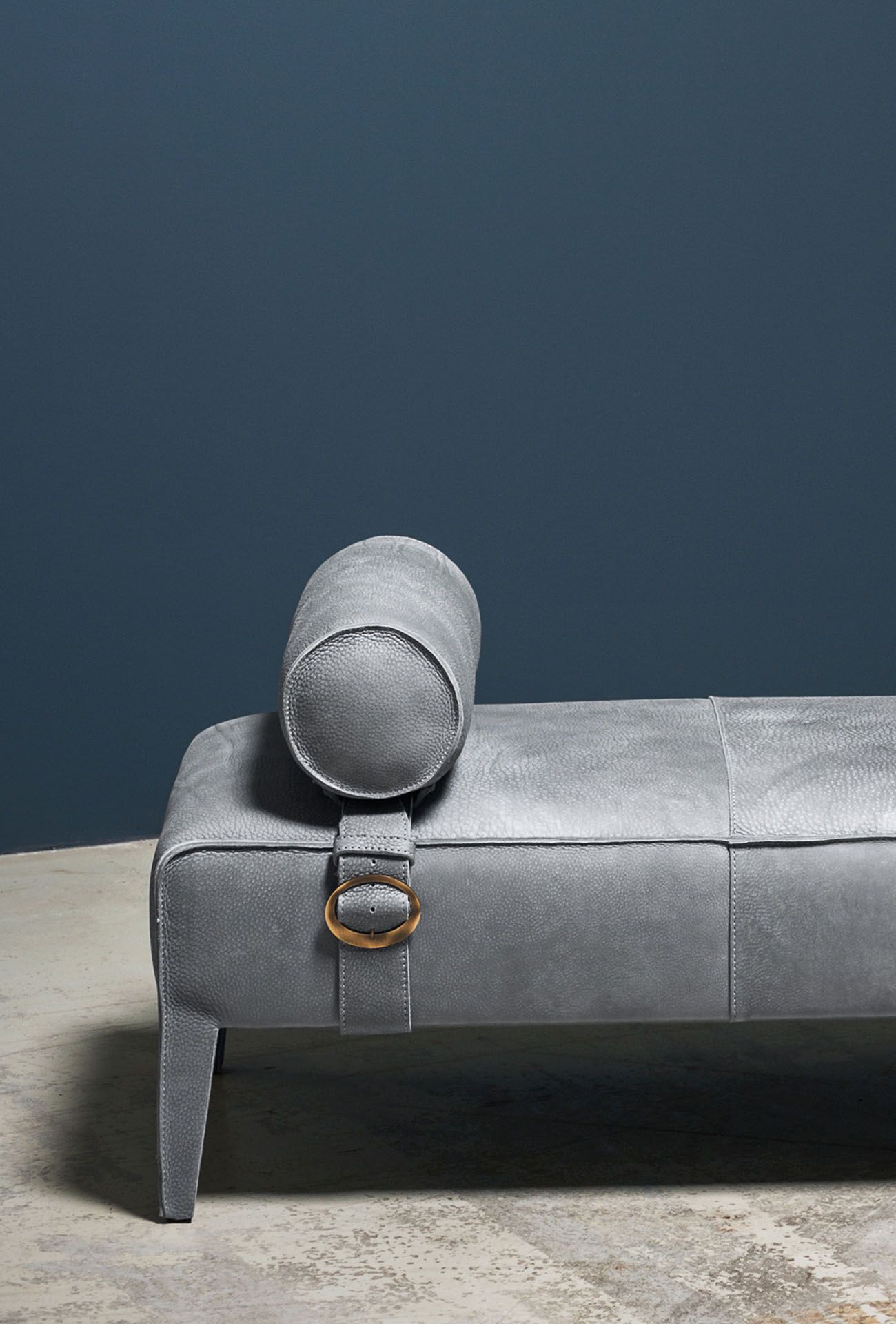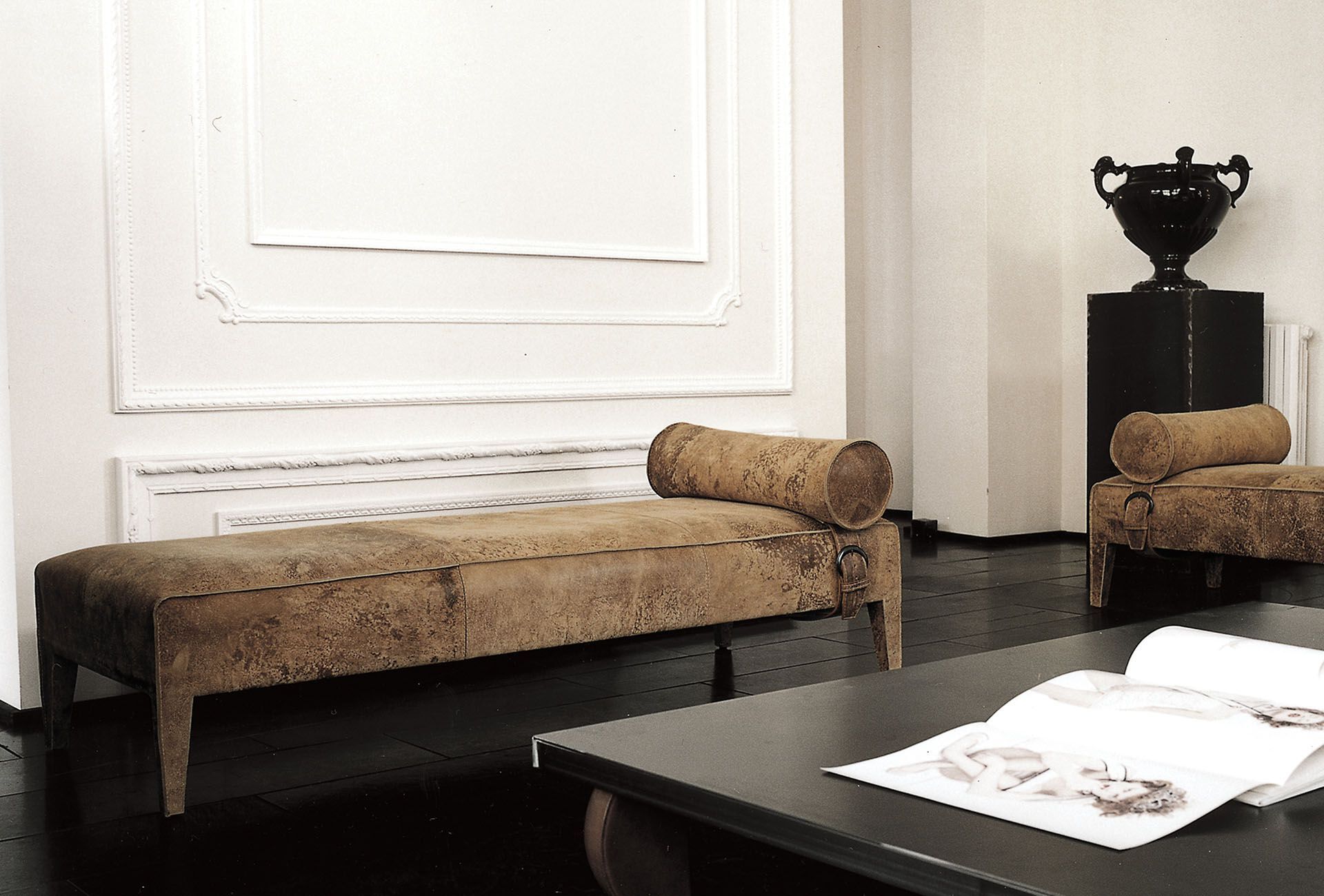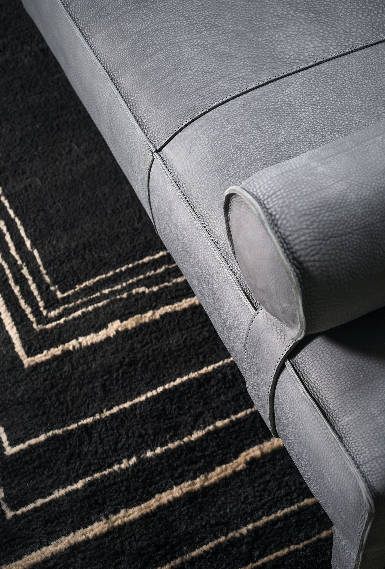 Каркас из сосновой и тополиной фанеры, наполнитель из полиуретана разной плотности. Отделка выполнена с открытым кантом. Рекомендуется использовать плотную кожу повышенной толщины.