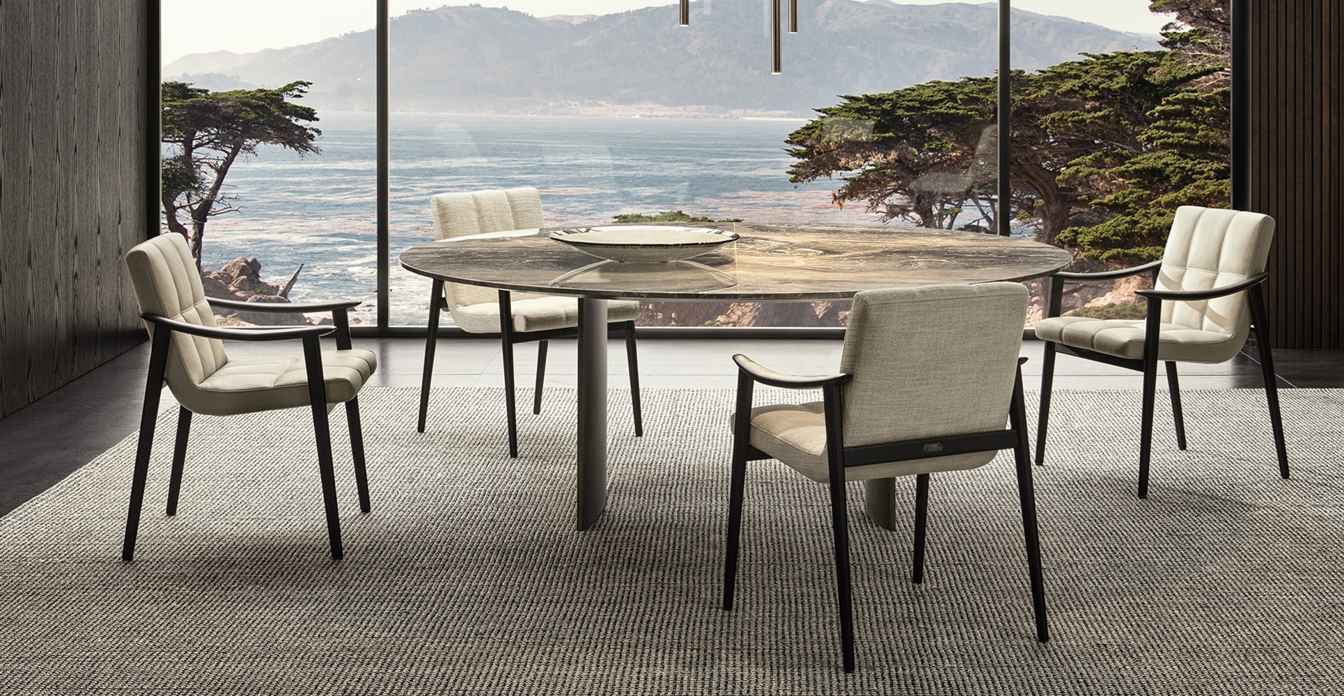 Fynn Dining – элегантное кресло с подчёркнуто тонким деревянным профилем и мягкой посадкой. Облегчённый визуально каркас сочетается с мягкими элементами, формируя предмет, в котором чувствуются ремесленные традиции и современный взгляд.