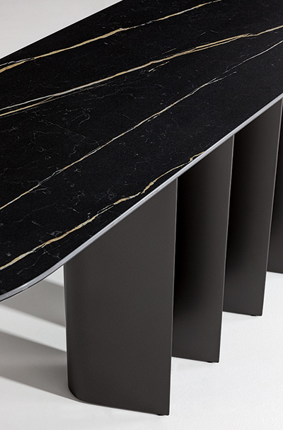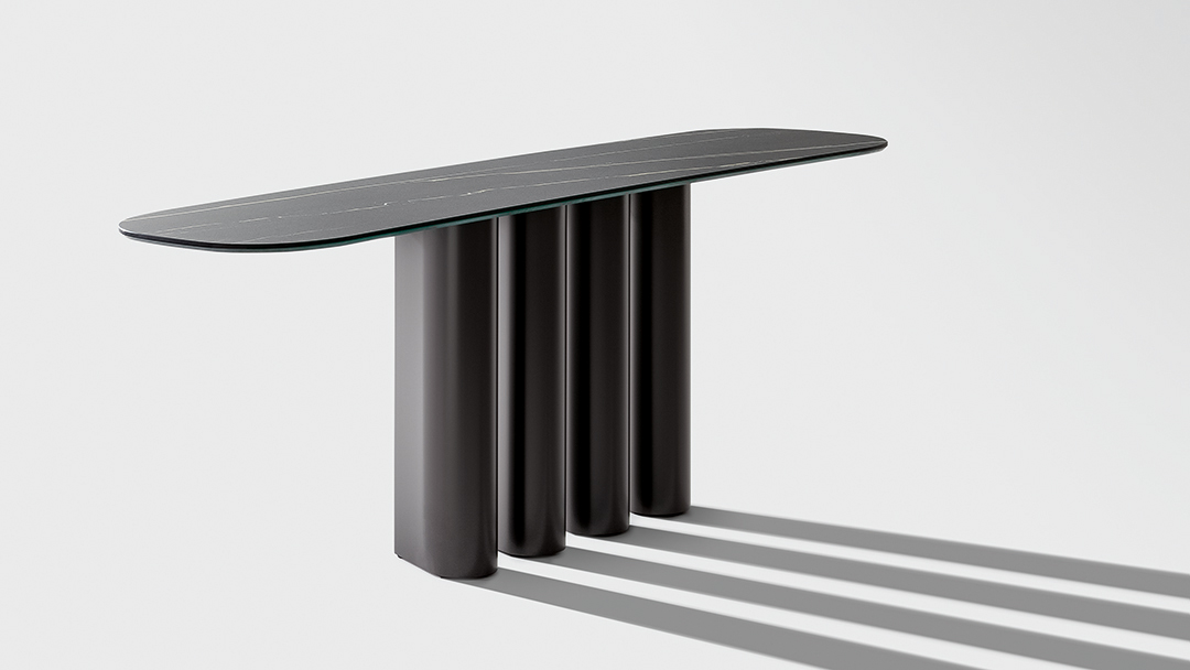 Основание с четырьмя каплевидными ножками создает интересный визуальный эффект: в зависимости от угла обзора предмет может восприниматься то объемным, то остро очерченным.
