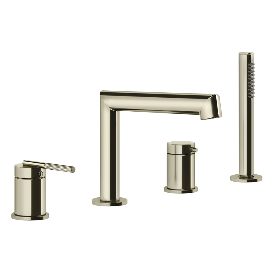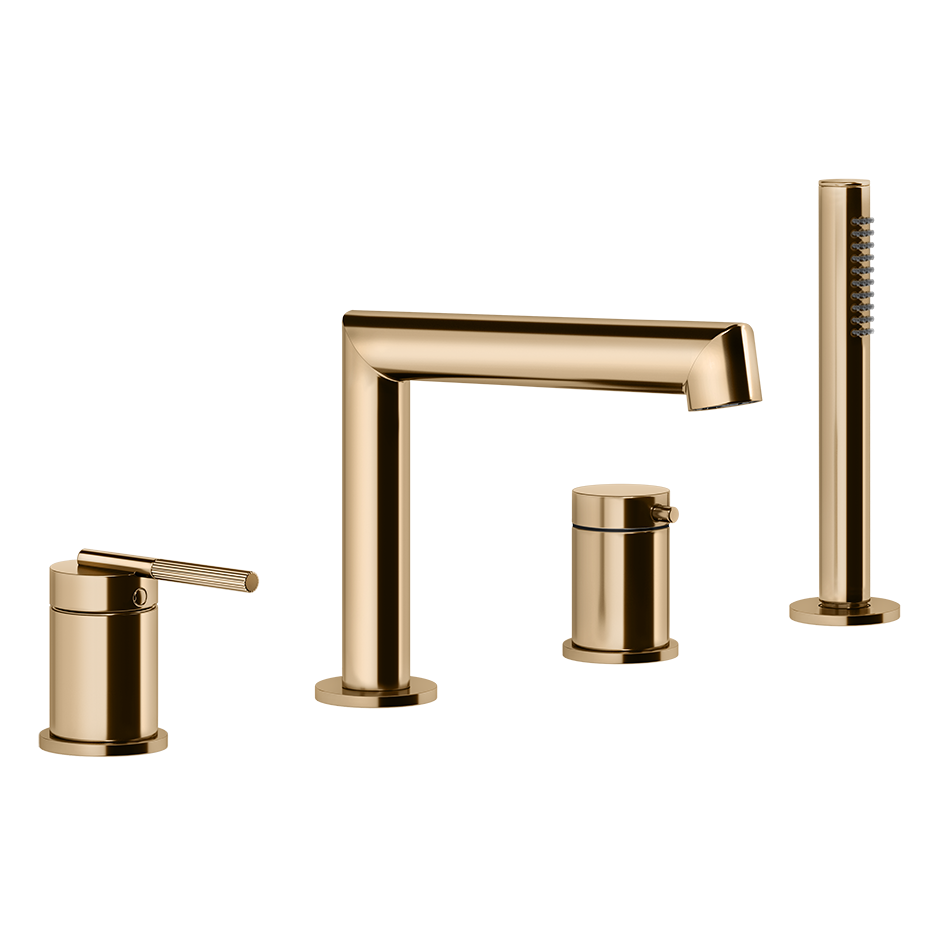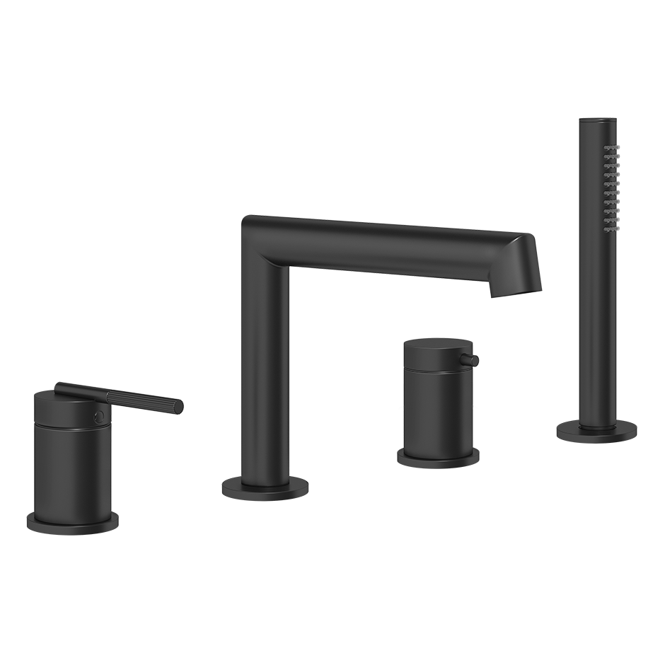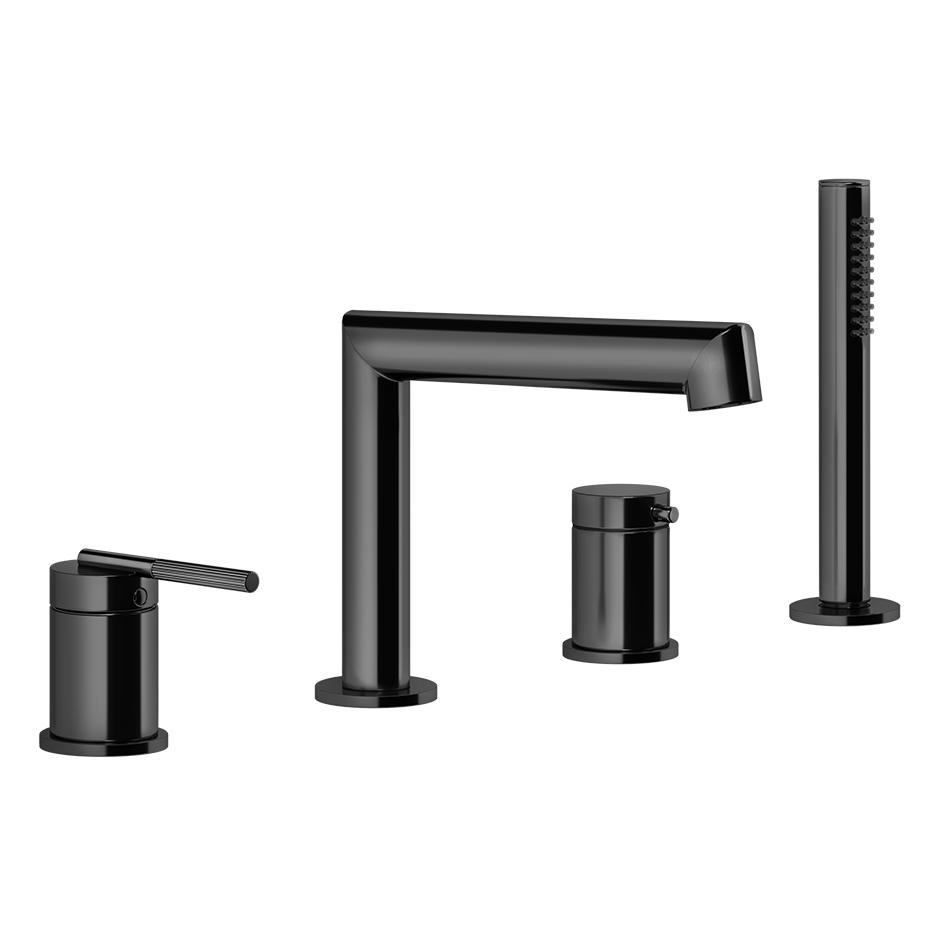 Смеситель для ванны на четыре отверстия с переключателем, изливом для наполнения ванны, гибким шлангом длиной 1,50 м и ручным душем с защитой от известкового налета