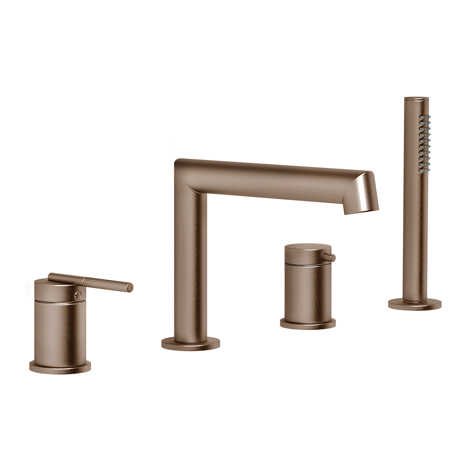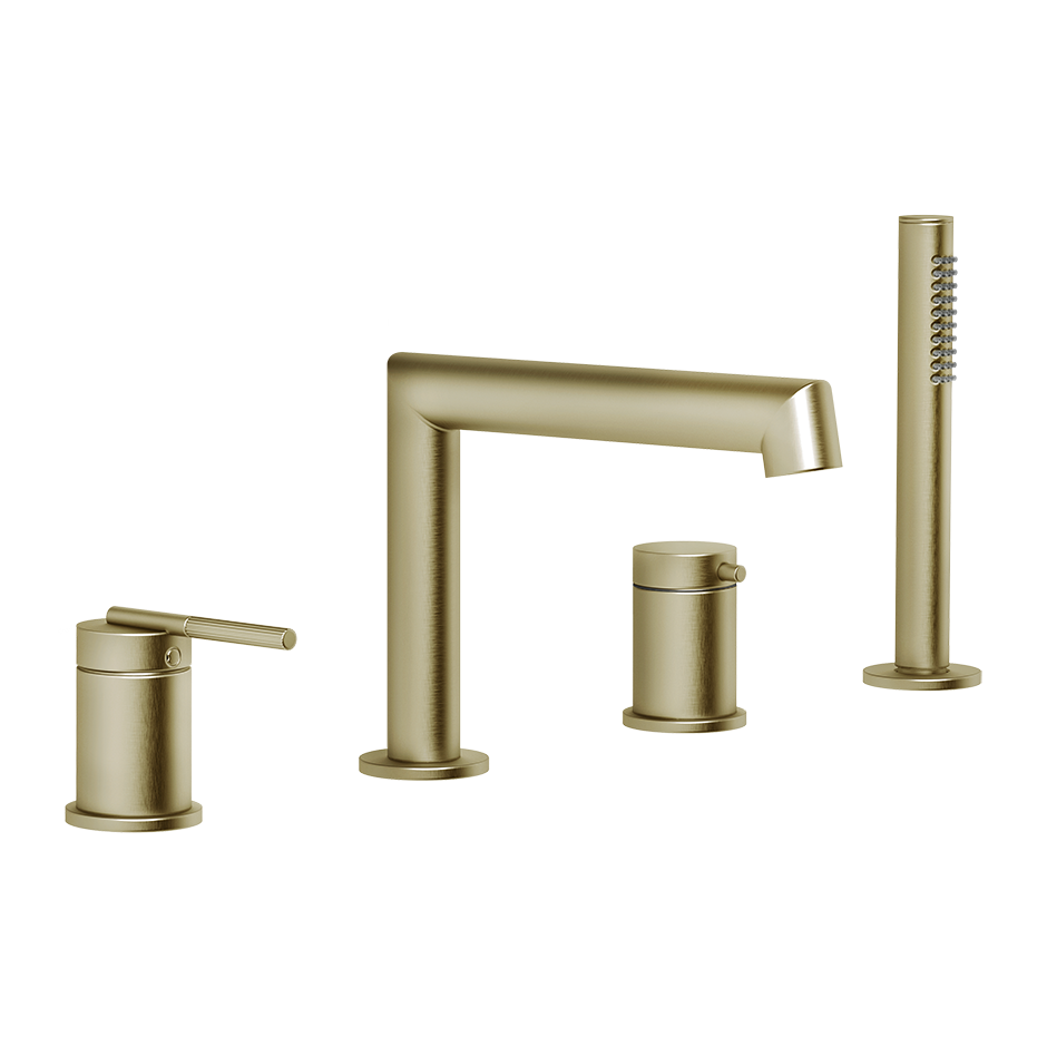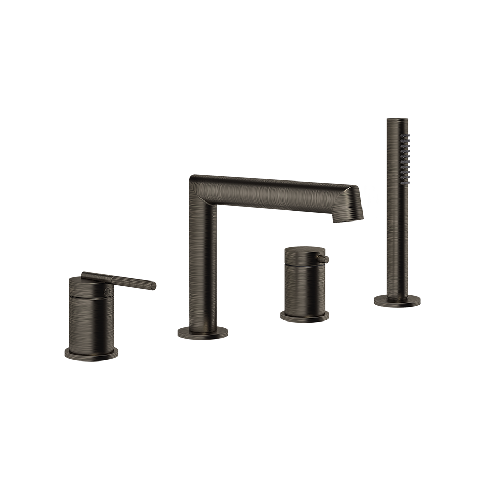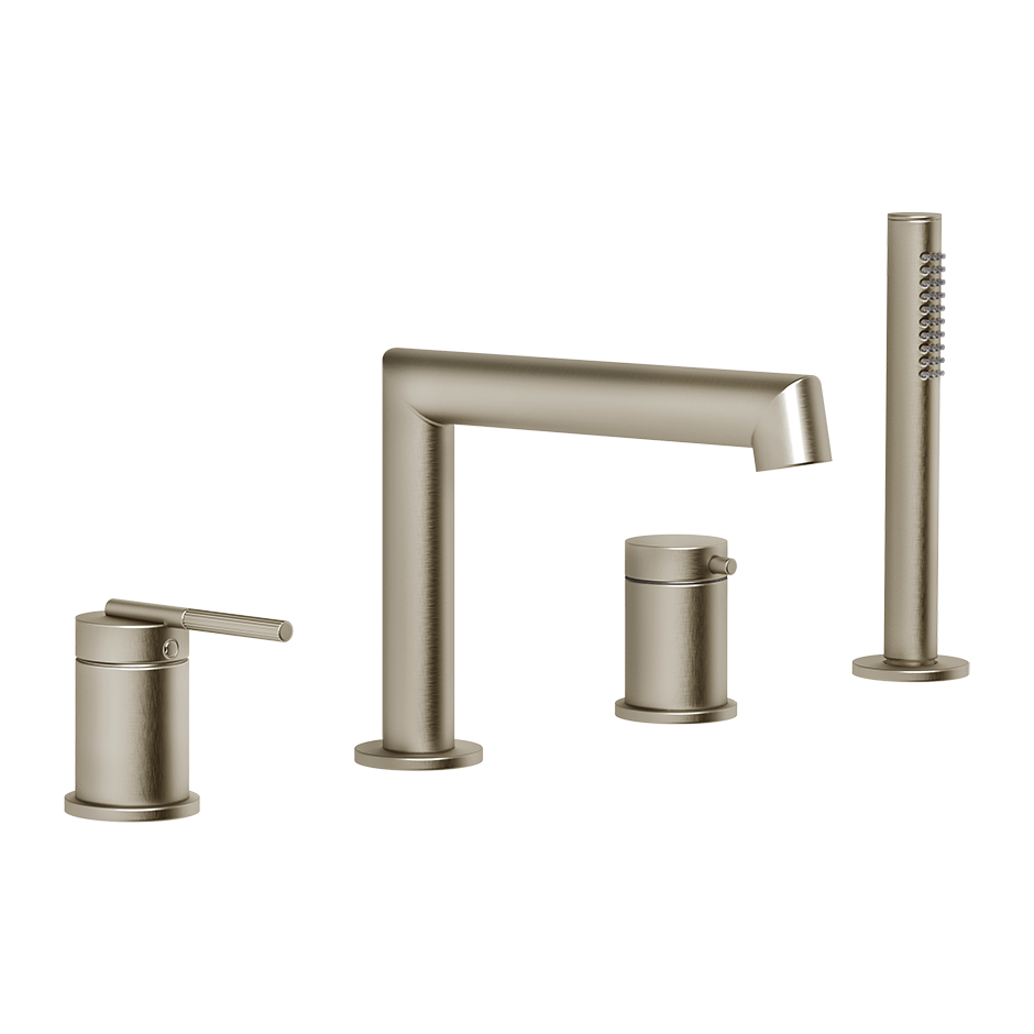 Смеситель для ванны на четыре отверстия с переключателем, изливом для наполнения ванны, гибким шлангом длиной 1,50 м и ручным душем с защитой от известкового налета