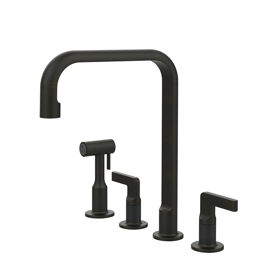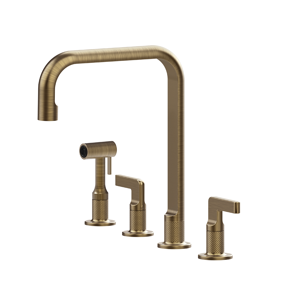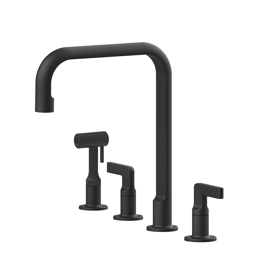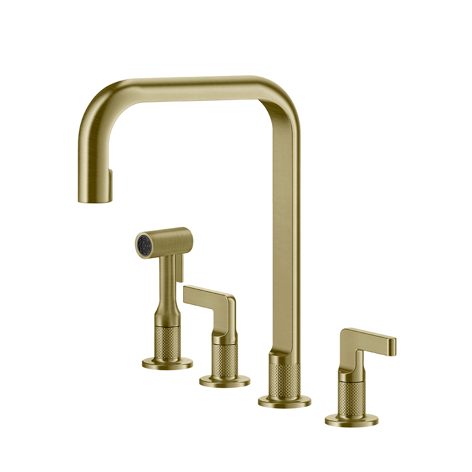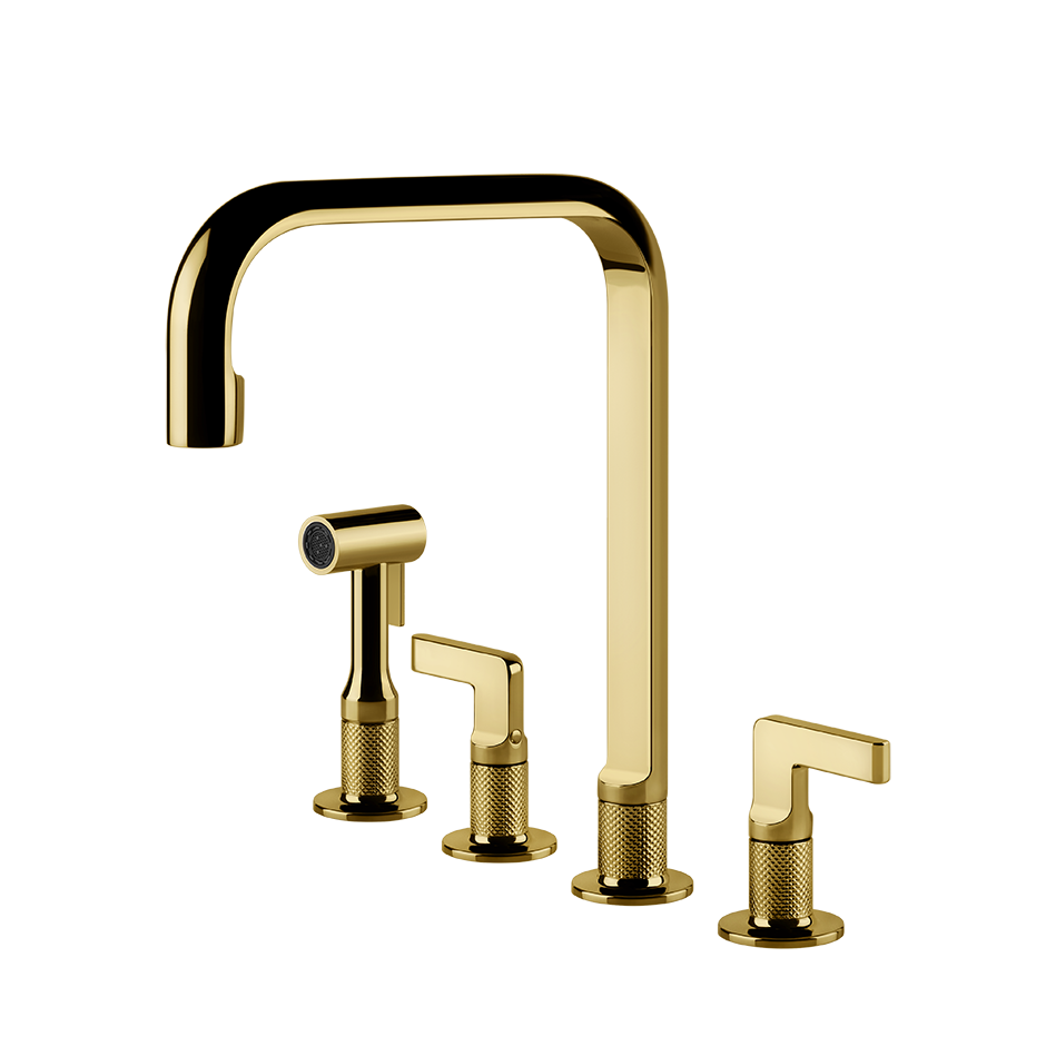 Четырехпозиционный смеситель с поворотным изливом и выдвижным ручным душем с одной форсункой