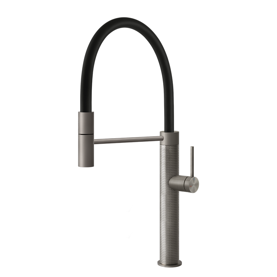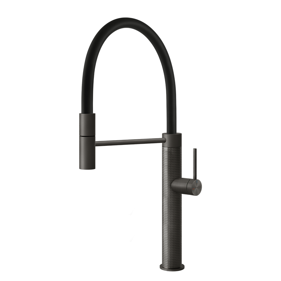 Полупрофессиональный смеситель для раковины с поворотным изливом и выдвижным душем с одной струёй