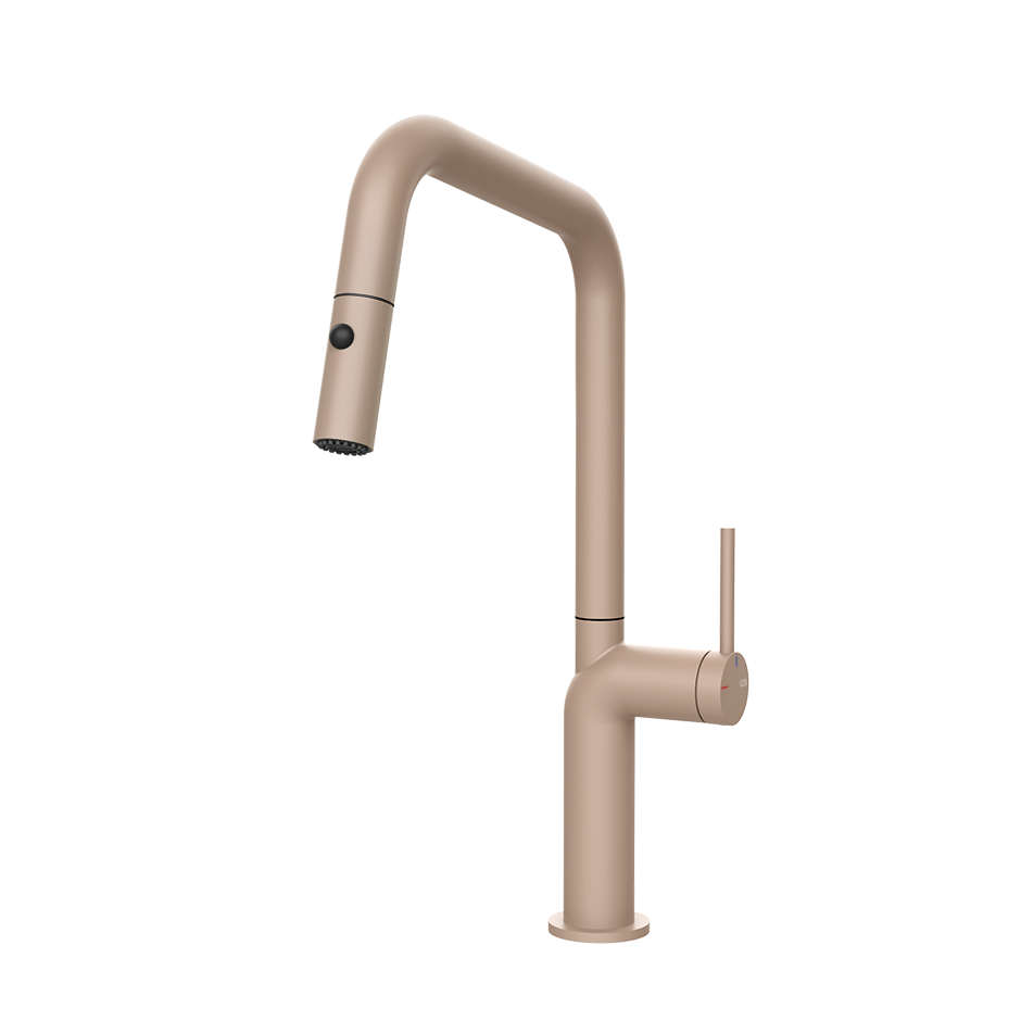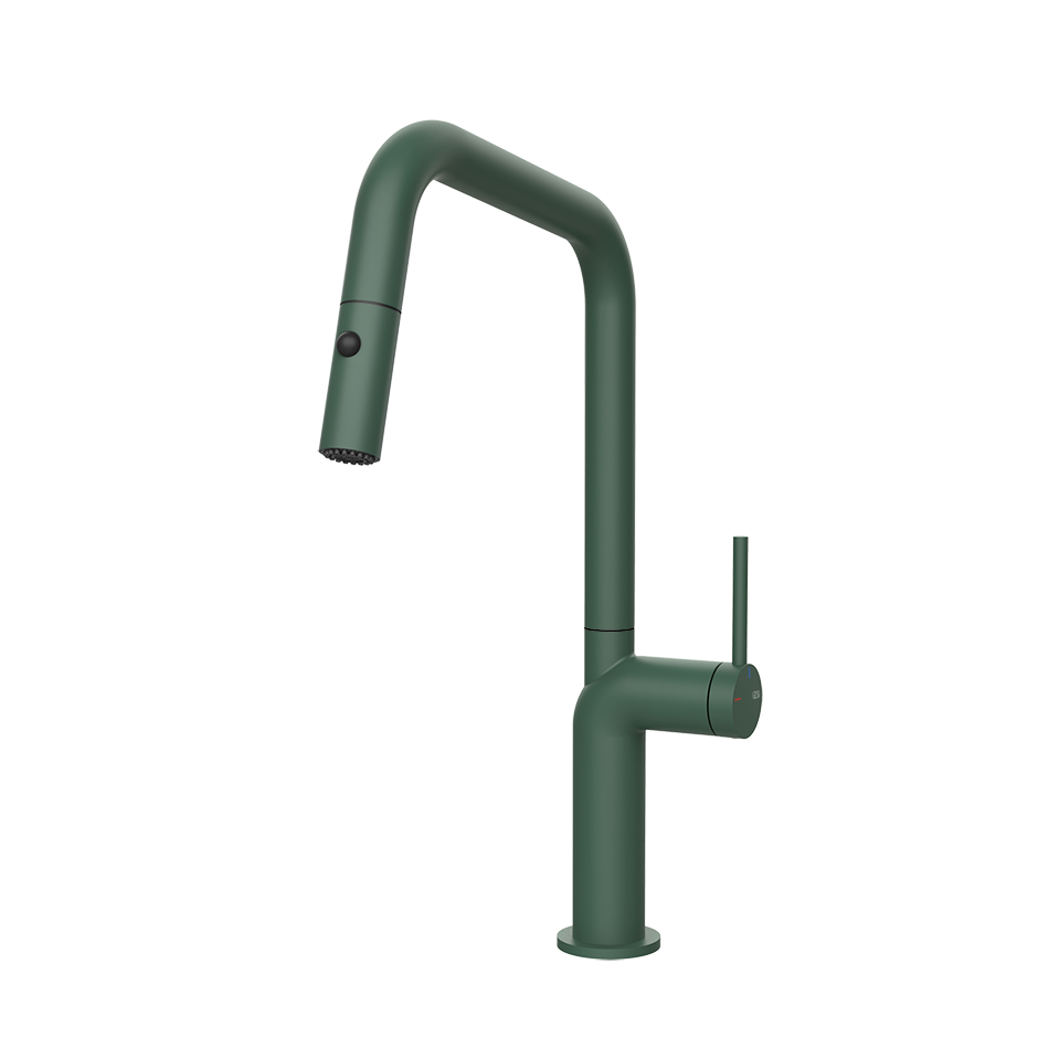 Смеситель для раковины с поворотным изливом и выдвижным ручным душем с двумя форсунками