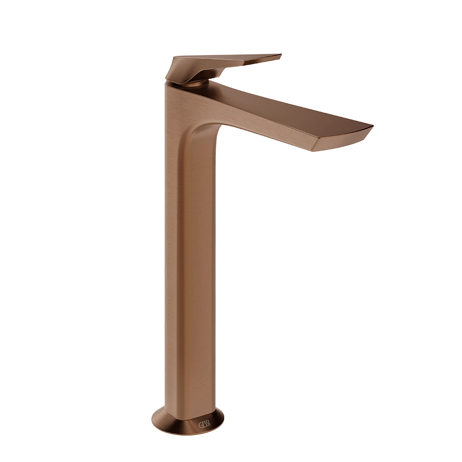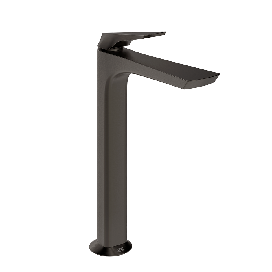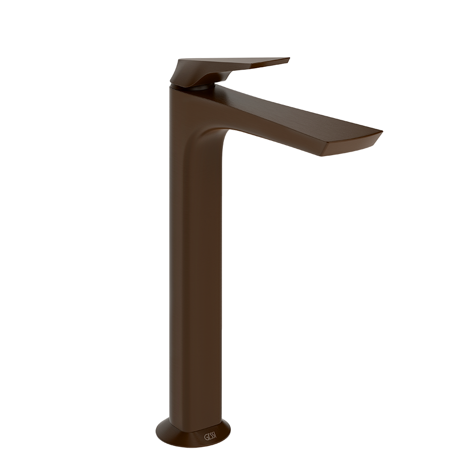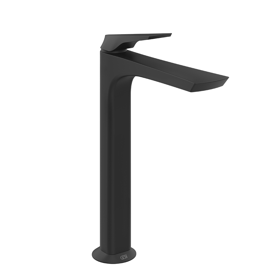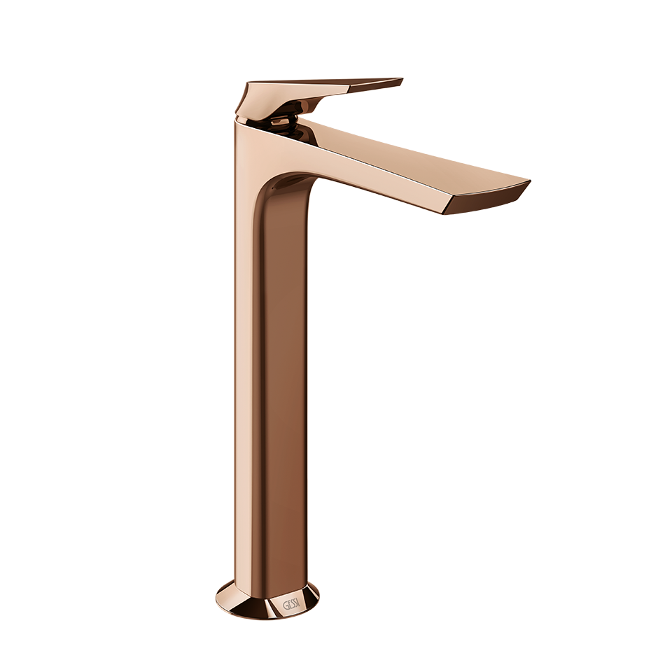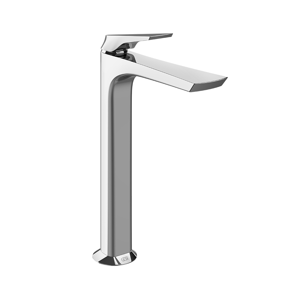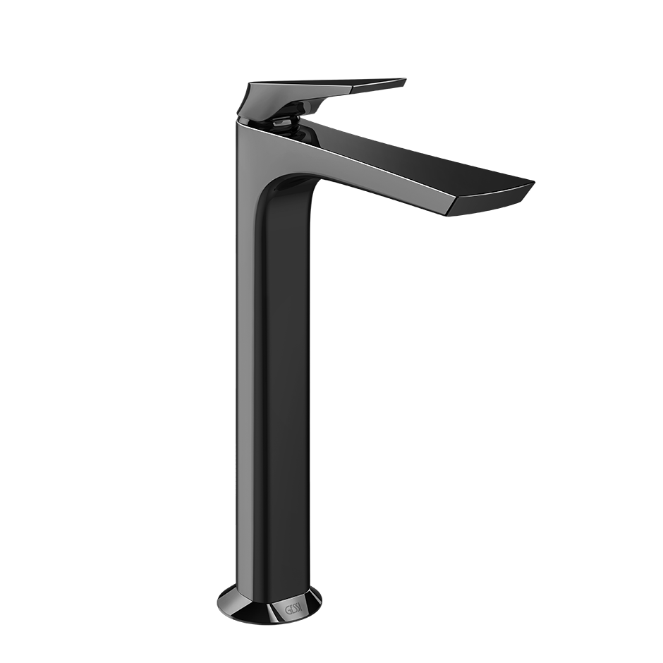 Смеситель для раковины высокой версии без донного клапана, с гибкими соединительными трубками.