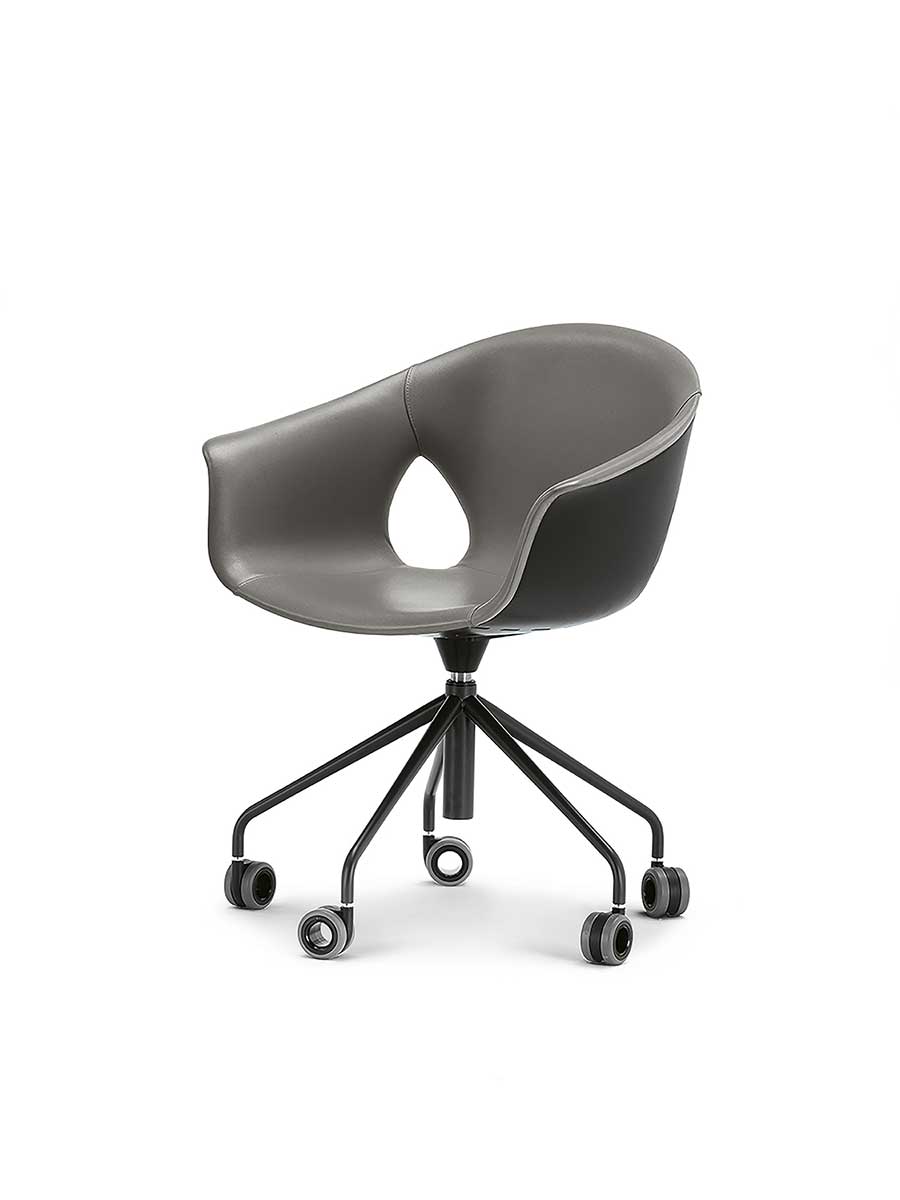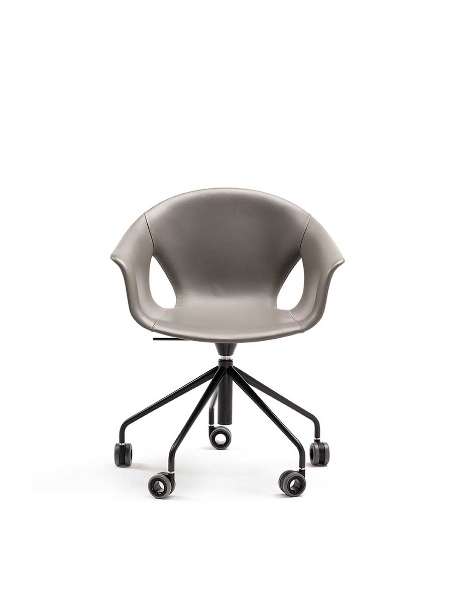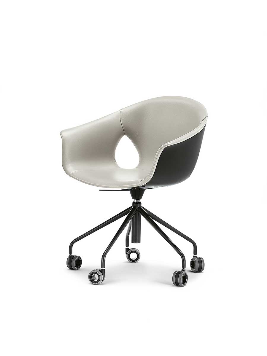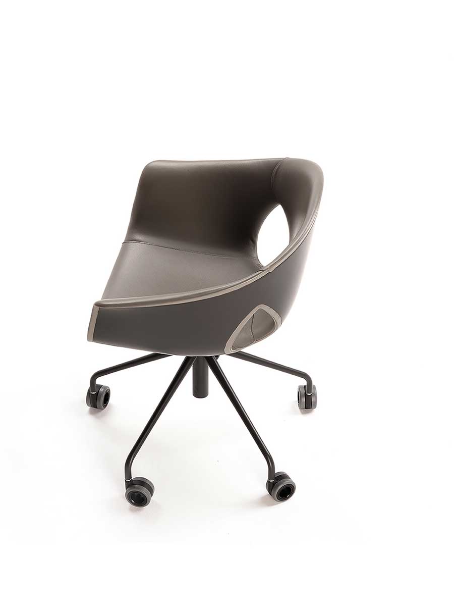 Кресло Ginger Ale имеет пятиспицевое основание из окрашенной стали с колёсиками. Оно доступно как в версии с поворотом на 360° и фиксированной высотой, так и в версии с газовой пружиной для регулировки высоты сиденья. Обивка может быть полностью выполнена из Pelle Frau®, с обивкой из того же материала или в комбинации с Pelle Frau® для внутренней обивки и окрашенным корпусом снаружи.