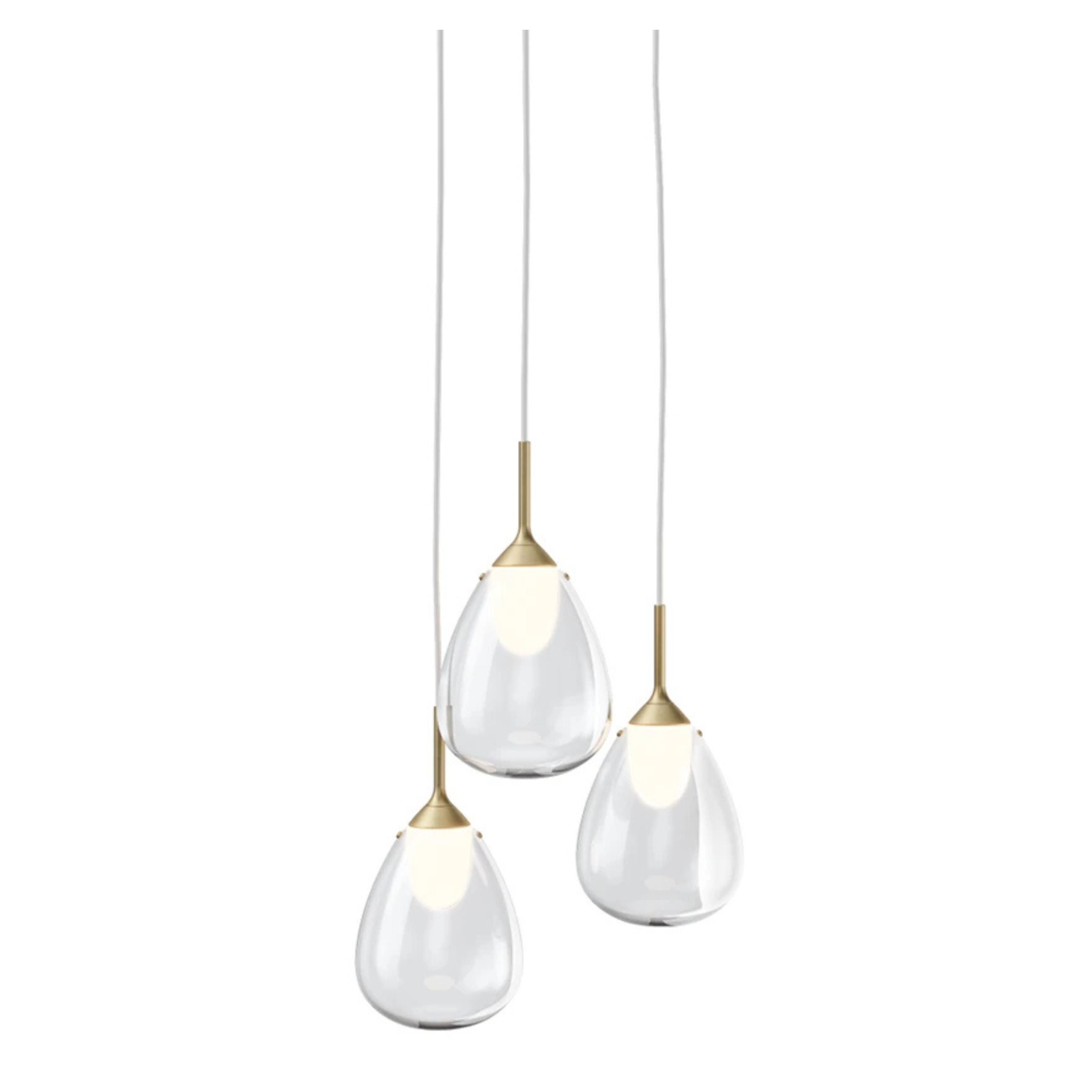Подобно природным каплям, лампы светильника Gocce спускаясь с потолка, освещают всю архитектурную среду. Система подвесных светильников Gocce состоит из стеклянных пузырьков, выполненных из стекла Pyrex в форме капли, имеет 2 слоя: внешний слой прозрачный, а внутри используется сатинированная отделка. Стеклянные пузырьки крепятся к металлическому потолочному основанию. Люстры Gocce доступны в одиночной версии и в композициях из 3 или 5 ламп.