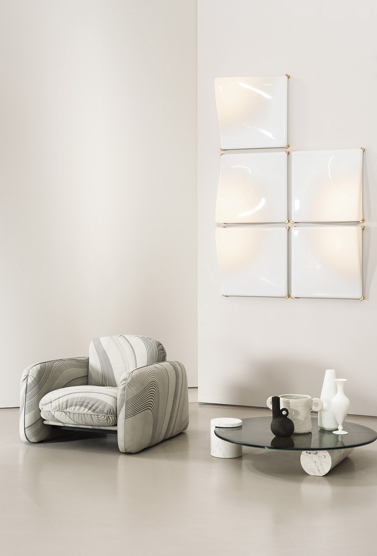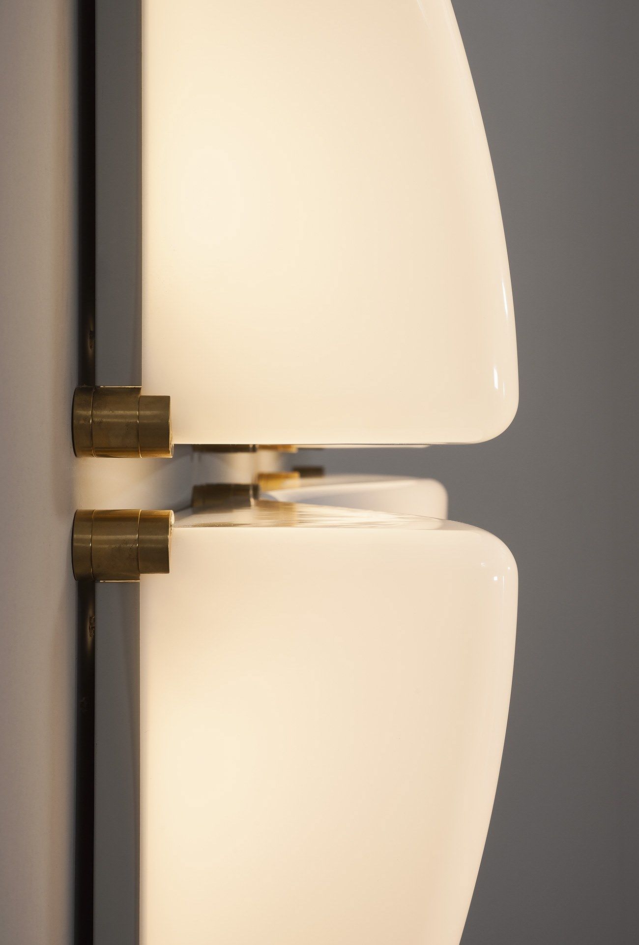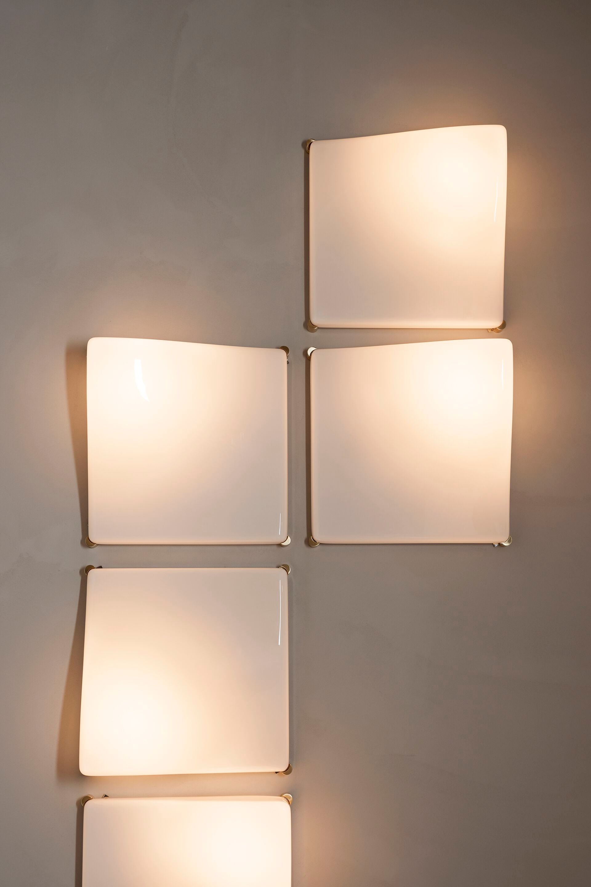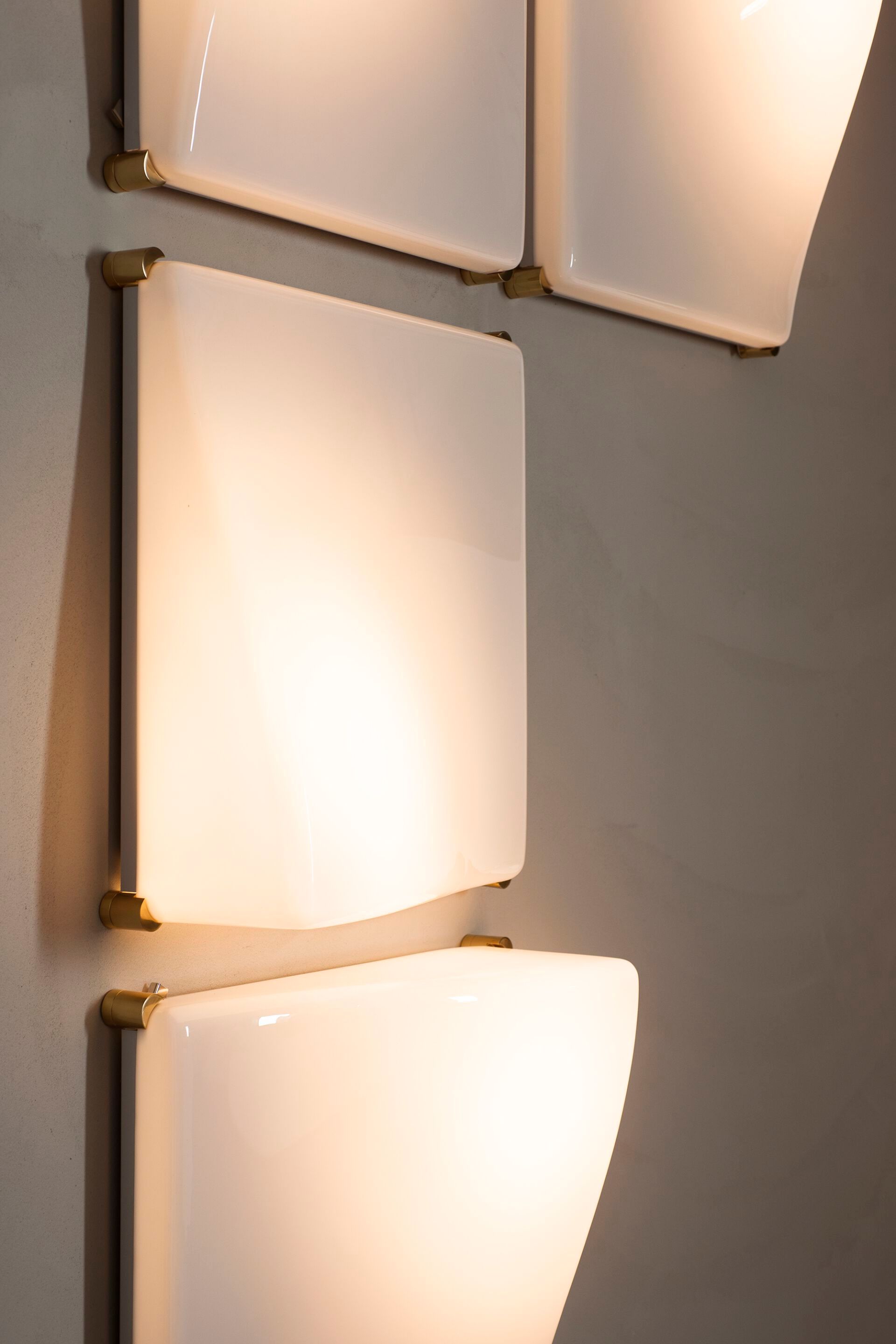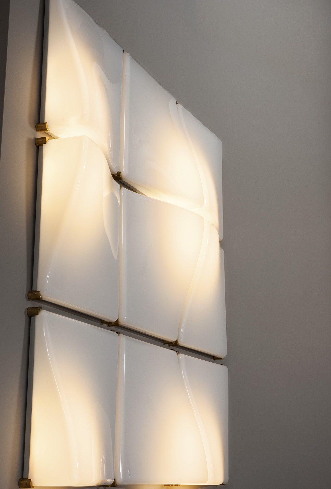 Модульная настенная лампа, разработанная Draga&Aurel. Модульная настенная/потолочная лампа с источником света LED 2700K. Белый абажур из печатного матового метакрилата. Детали из сатинированной латуни с матовой отделкой. LED плата 2700K — 15W. Питание 110/240V - 24V. Световой поток 1620 люмен.