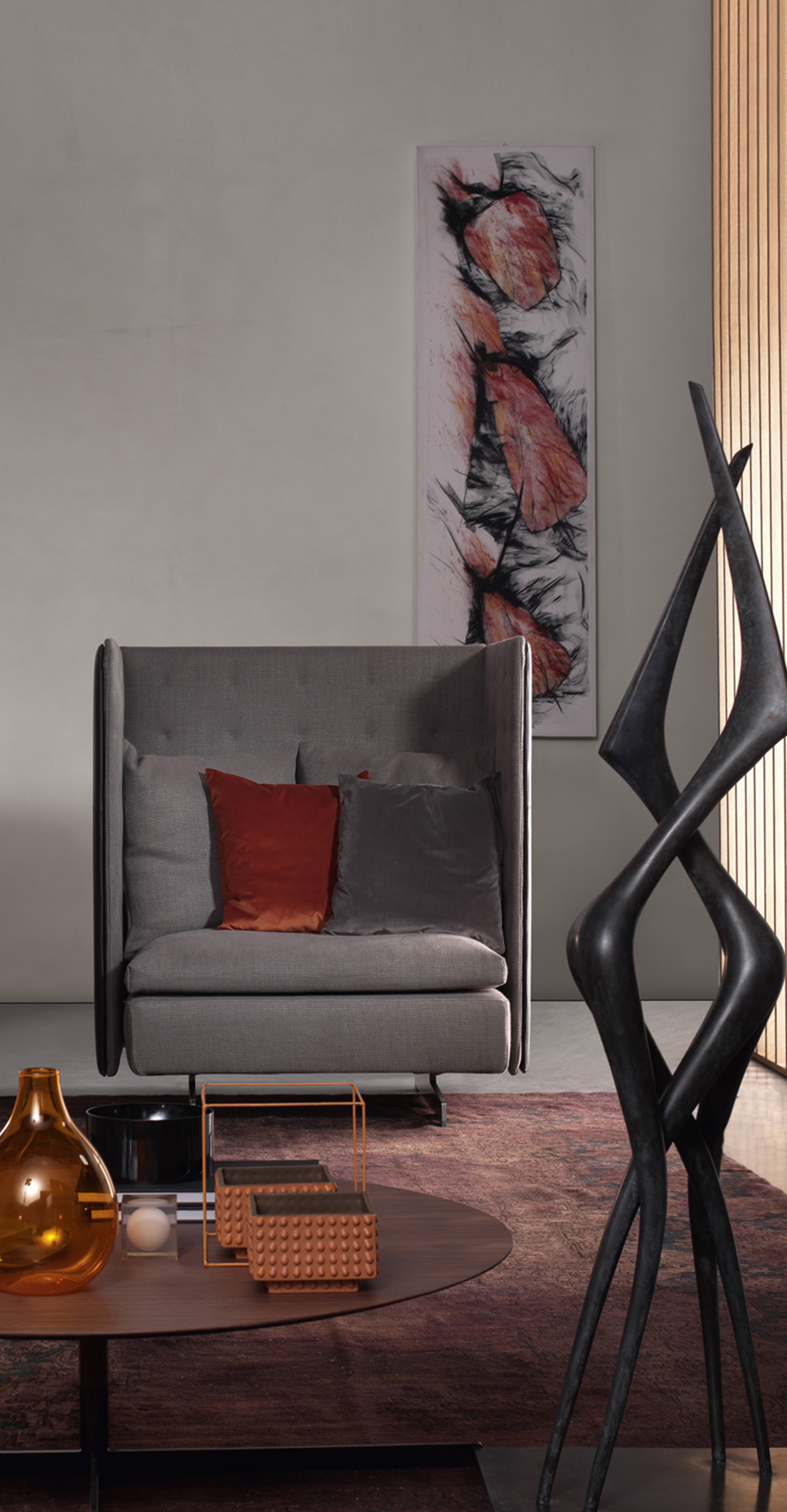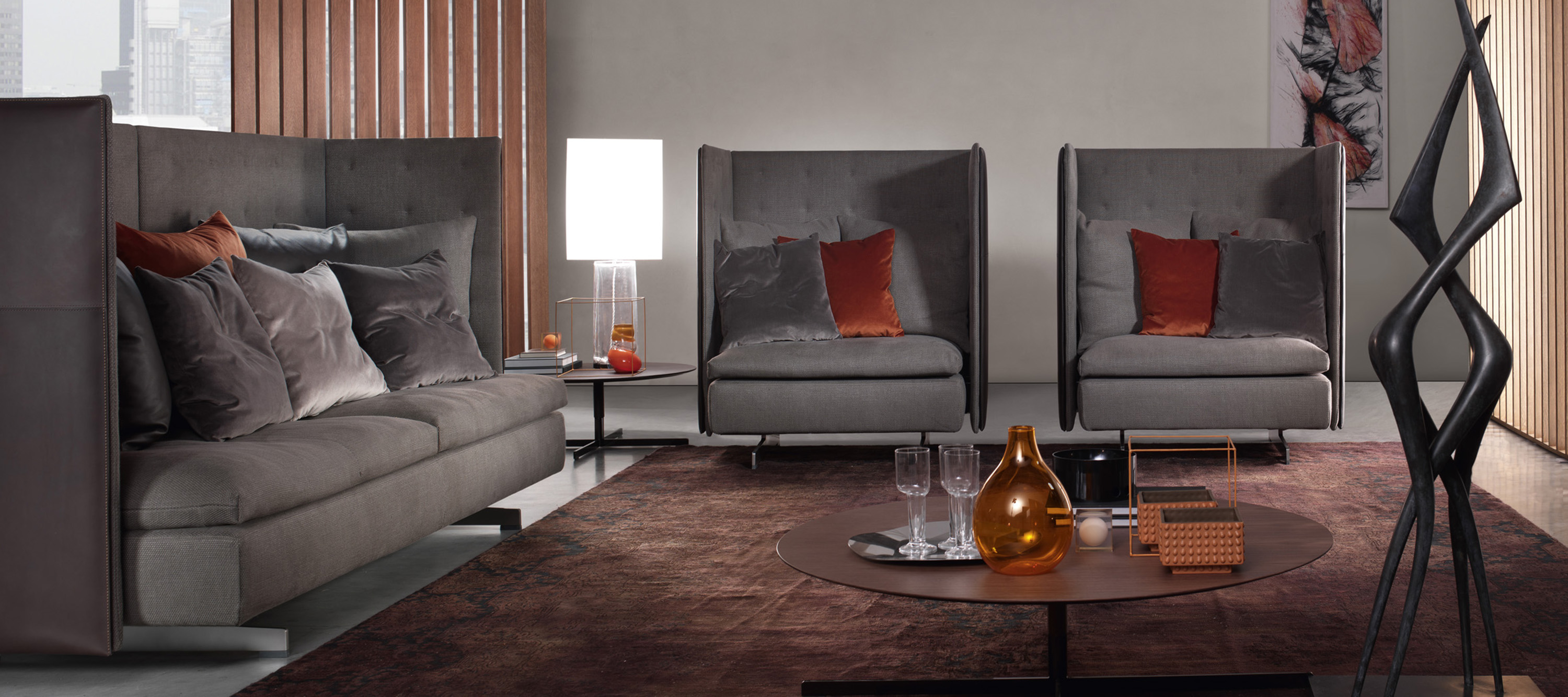 Каркас сиденья выполнен из трубчатого металла с ткаными эластичными ремнями. Спинки и подлокотники изготовлены из березовой фанеры. Внешняя обивка спинок и боковин выполнена из пенополиуретана и полиэстеровой ваты, а внутренний слой — из полиэстеровой ваты, покрытой мягкой тканевой простежкой с крестообразным швом, выполненным вручную контрастной нитью. Подушка сиденья выполнена из гусиного пуха и полиэстеровой ваты со стабилизирующей вставкой из пенополиуретана. Для улучшения спинки каждое кресло GranTorino HB оснащено точным количеством свободных подушек из гусиного пуха. Обивка сочетает кожу или седельную кожу с тканью: кожа Re-Saddle, Saddle Extra или Pelle Frau® для вертикальных панелей спинки и боковин и съемная ткань для основания, подушек и простежки. Версия из седельной кожи дополнена рельефной строчкой, а шкура с чистым срезом отделана вручную.