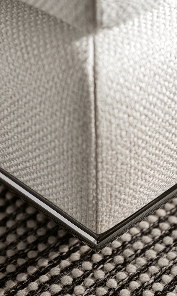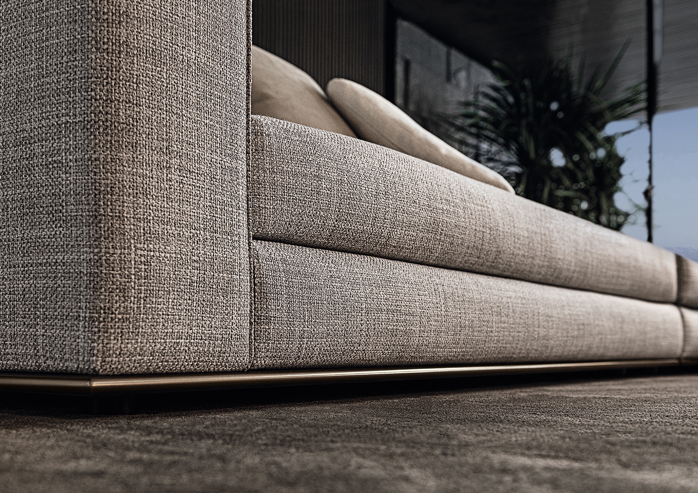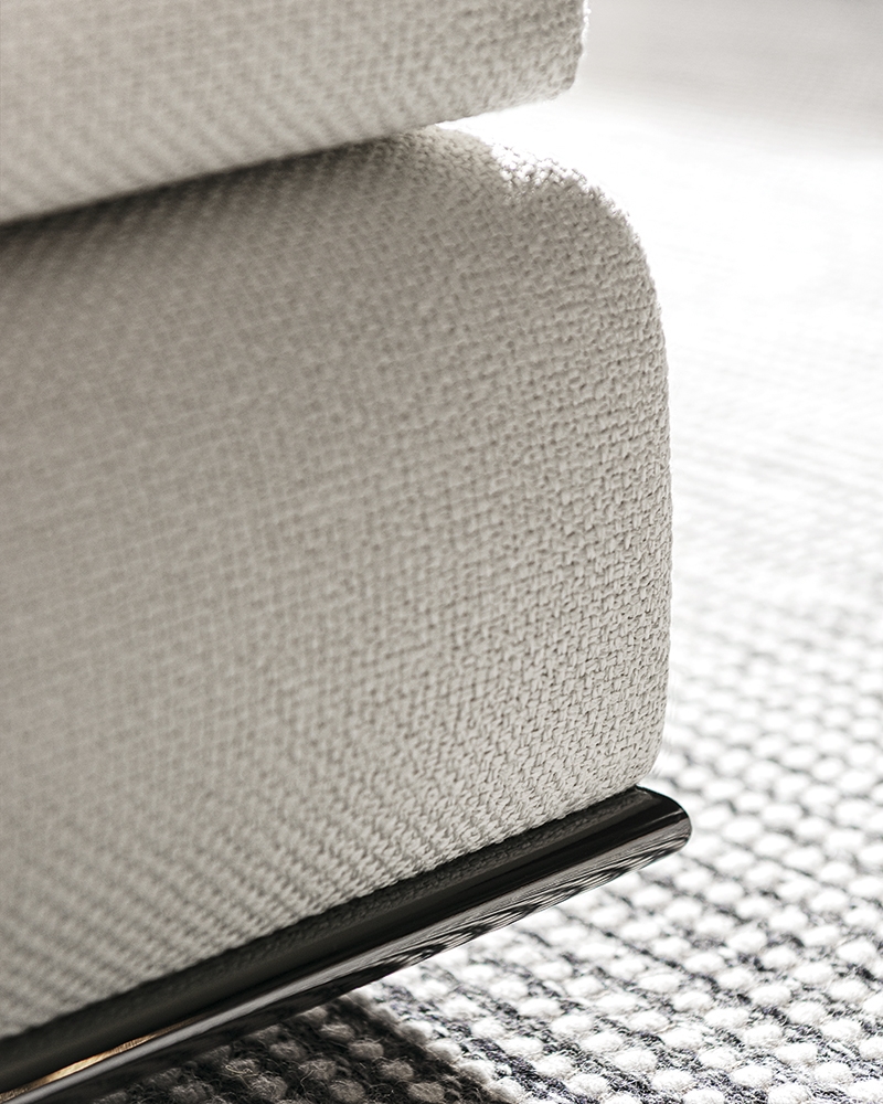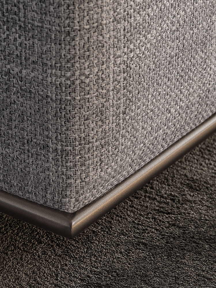 Материалы: каркас из древесины с эластичными ремнями; наполнение — пенополиуретан различной плотности и гусиный пух; обивка — кожа или ткань; основание — алюминиевый профиль с отделкой Black-Nickel