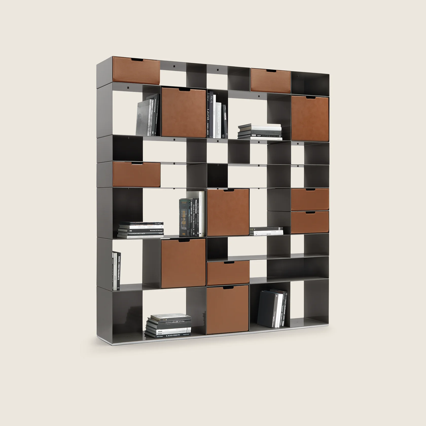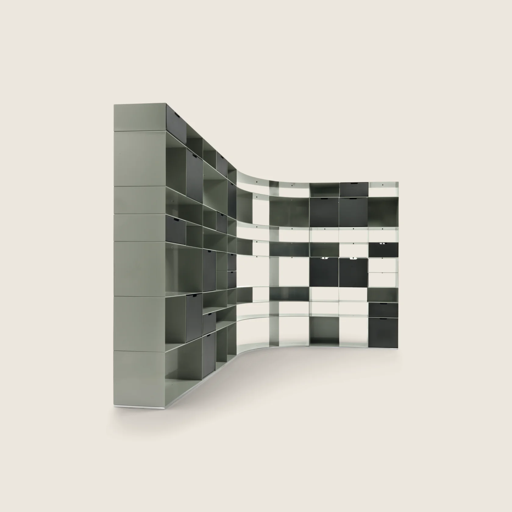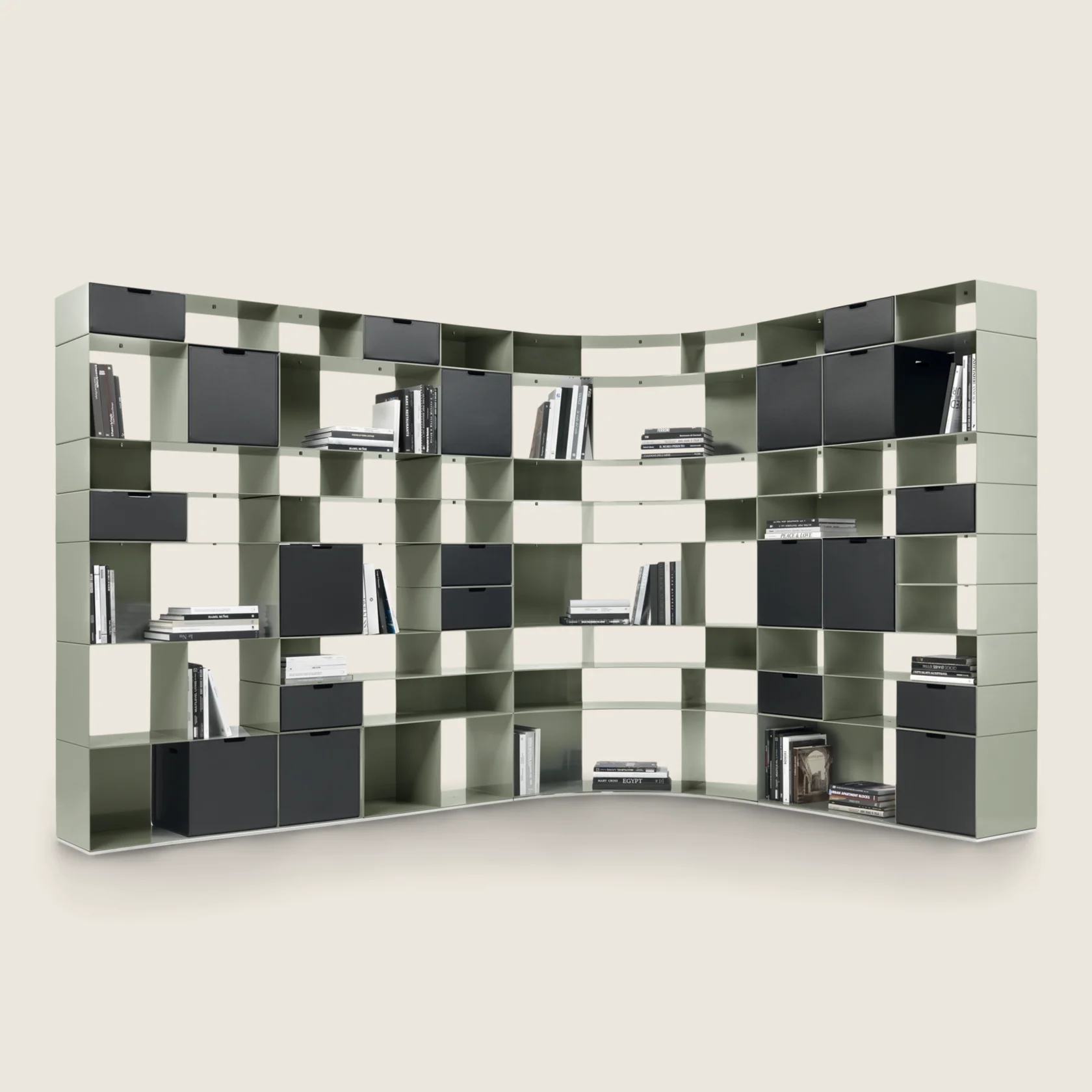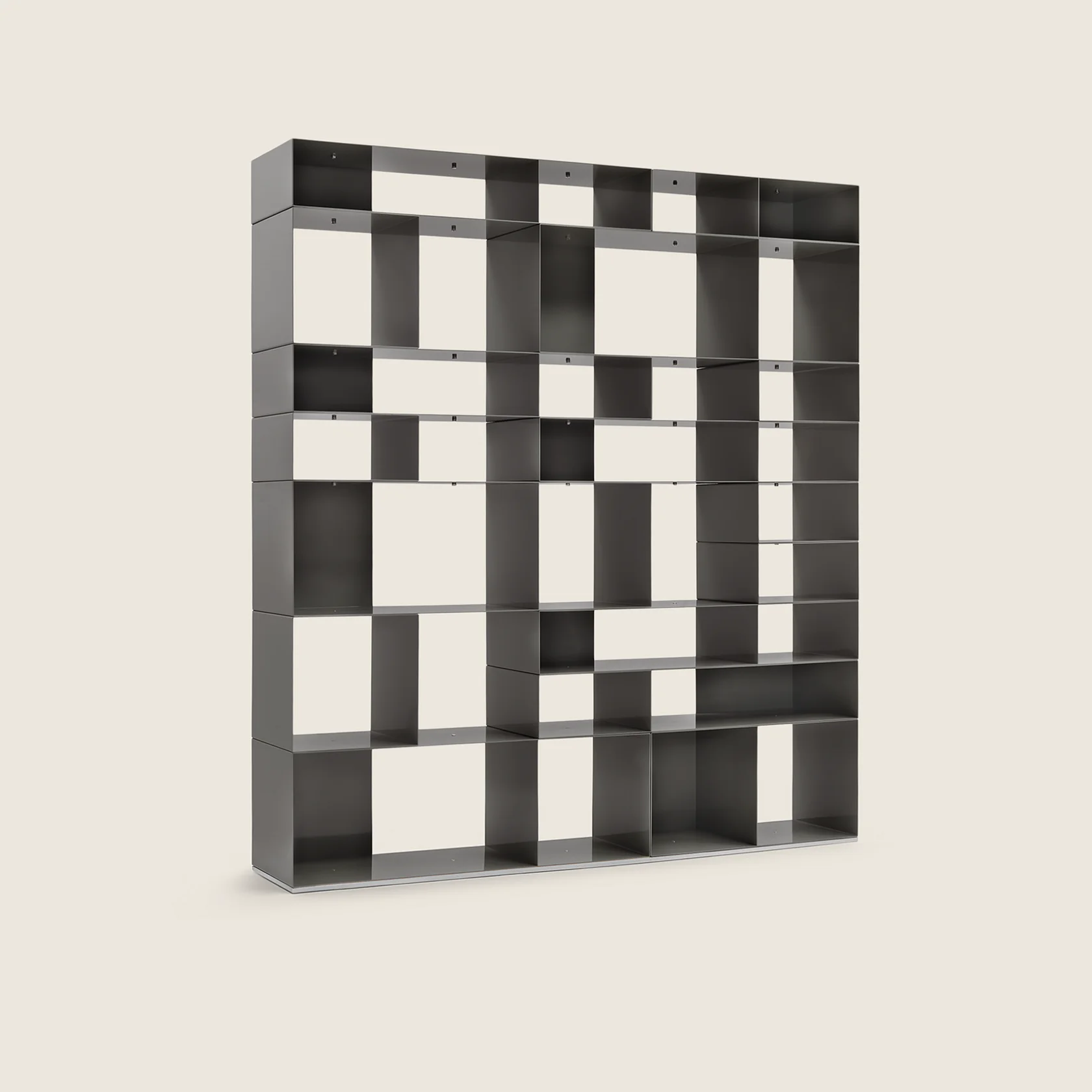 Infinity — модульная система книжных шкафов с лаконичным дизайном. Каркас выполнен из металла с порошковым покрытием, доступного в различных цветах. Система позволяет создавать разнообразные композиции благодаря свободно сочетаемым модулям.