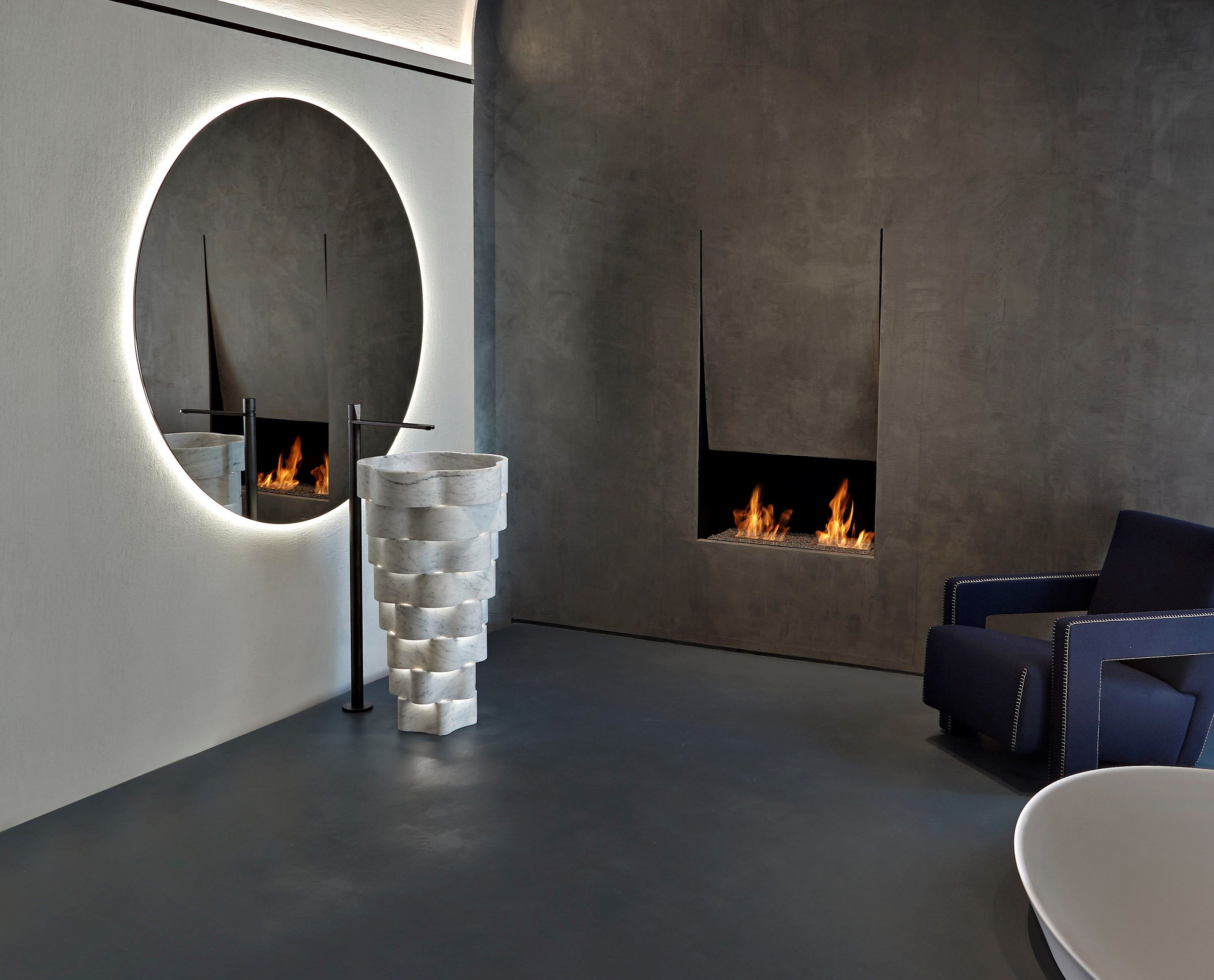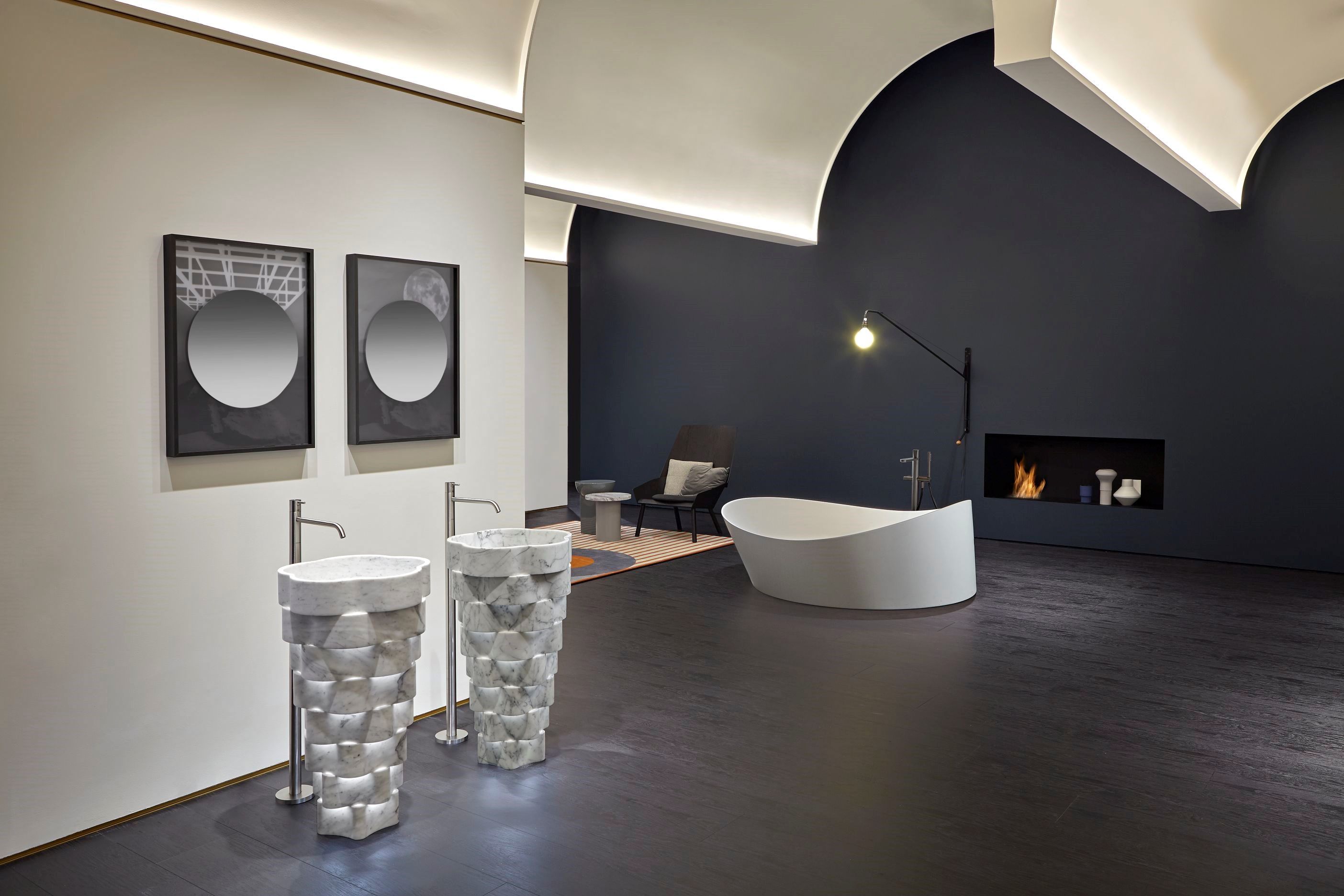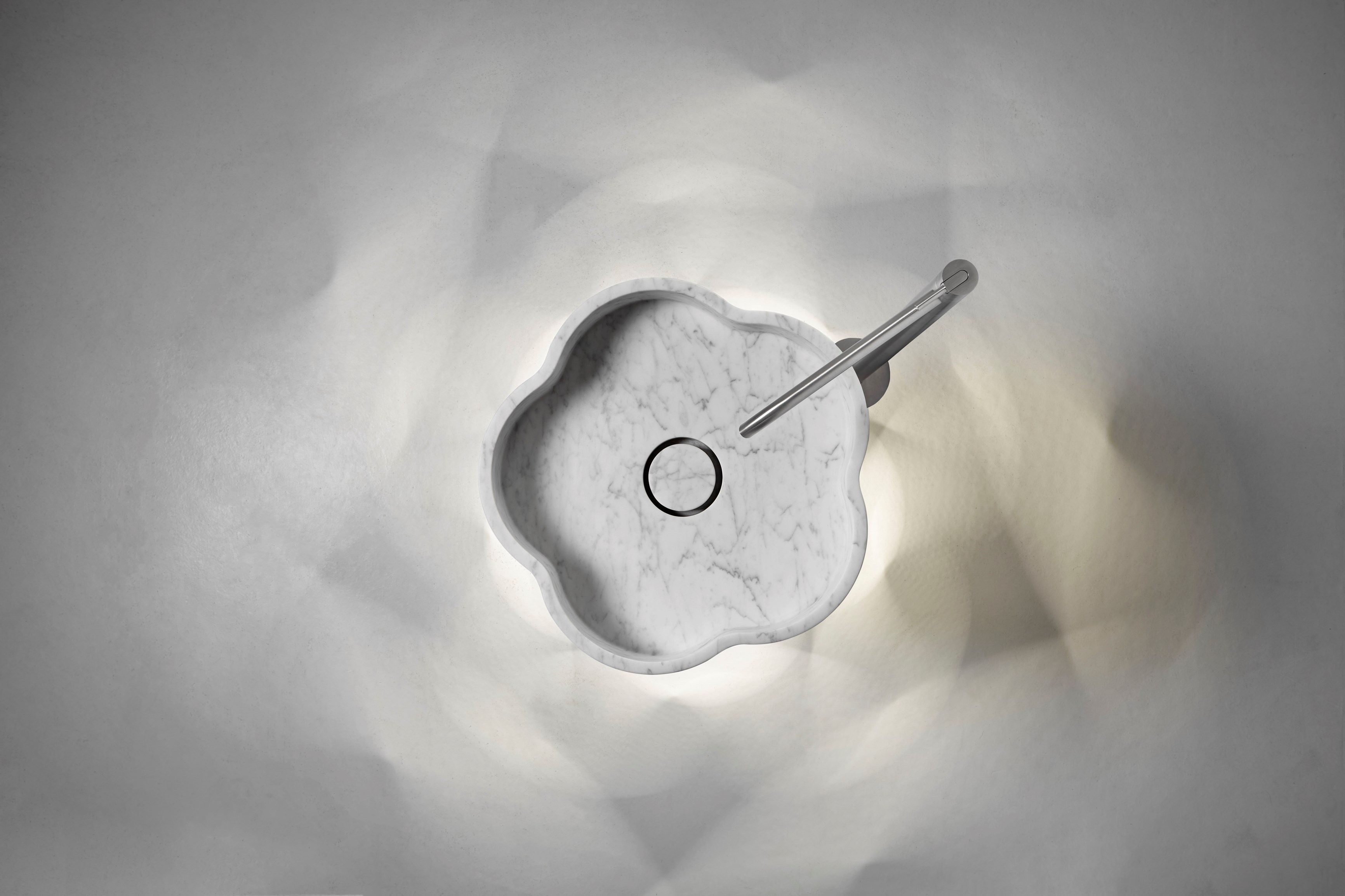 Intreccio — это мраморная напольная раковина, в которой сочетаются природная форма и точная геометрия. Её скульптурный силуэт создан из концентрических колец, сдвинутых по вертикали, что формирует выразительную игру света, тени и глубины.