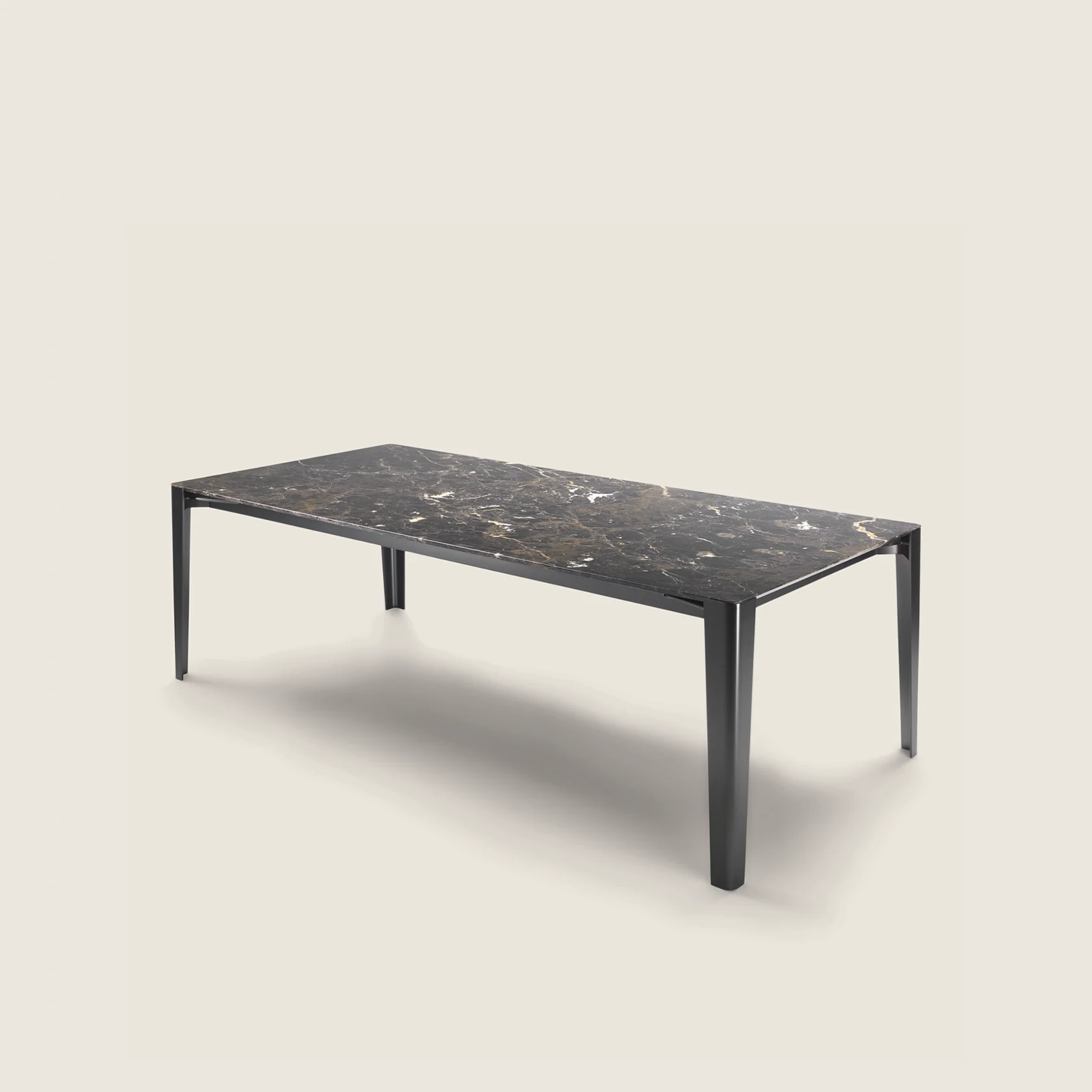 Iseo — элегантный обеденный стол с выразительным основанием, выполненным из металла и дерева.