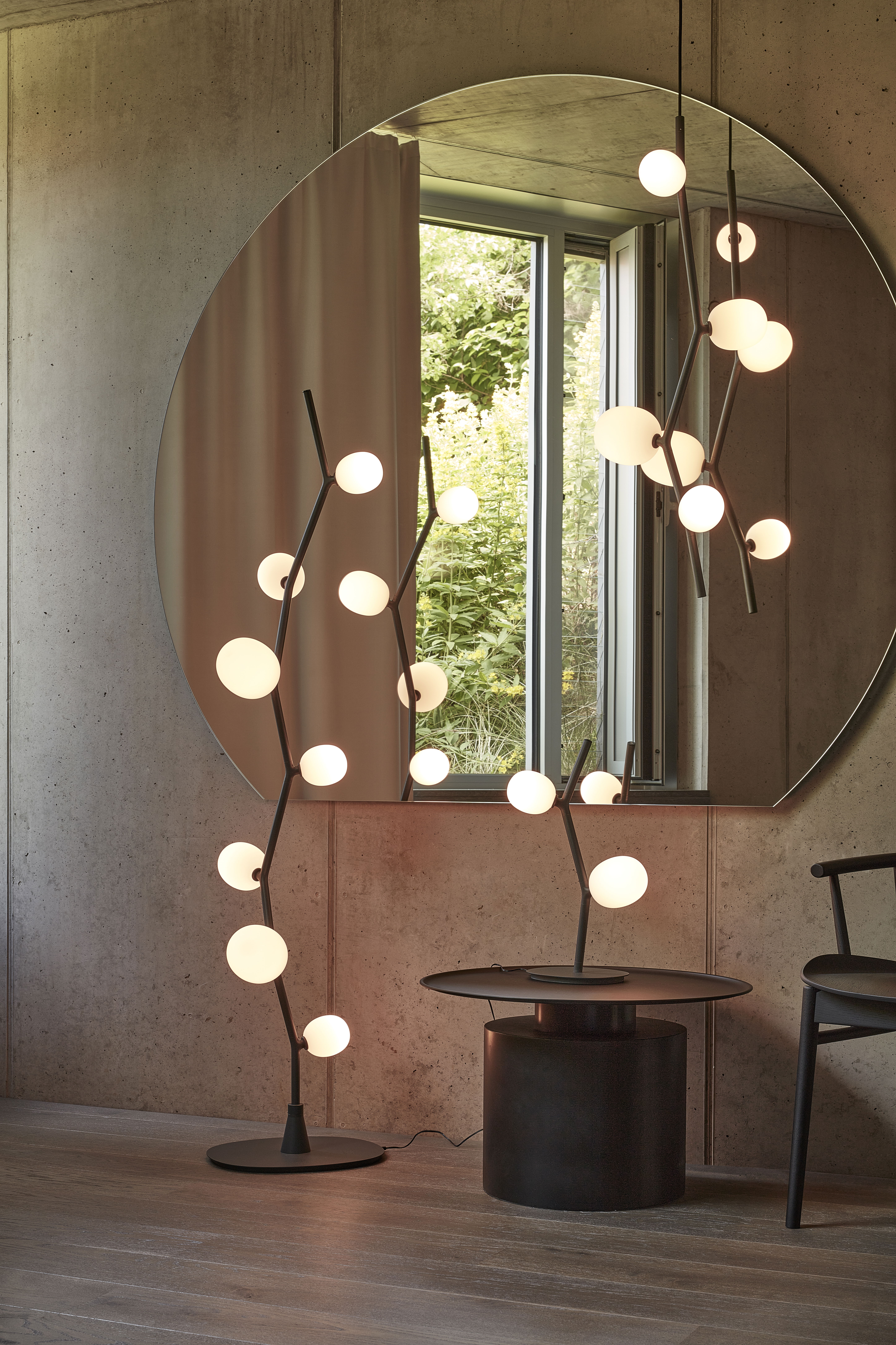Коллекция Ivy использует специальную систему модульных элементов, позволяя создавать инновационные декоративные решения как в вертикальных, так и в горизонтальных инсталляциях. Светильники состоят из металлических ветвей пяти основных размеров и трёх размеров плафонов из выдувного матового стекла светло-розового, опалового или дымчатого оттенка. В коллекции также представлены эффектный напольный светильник и интимный настольный вариант.