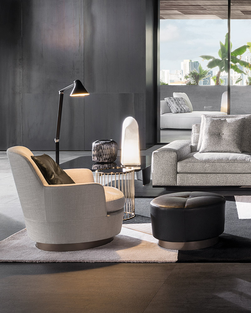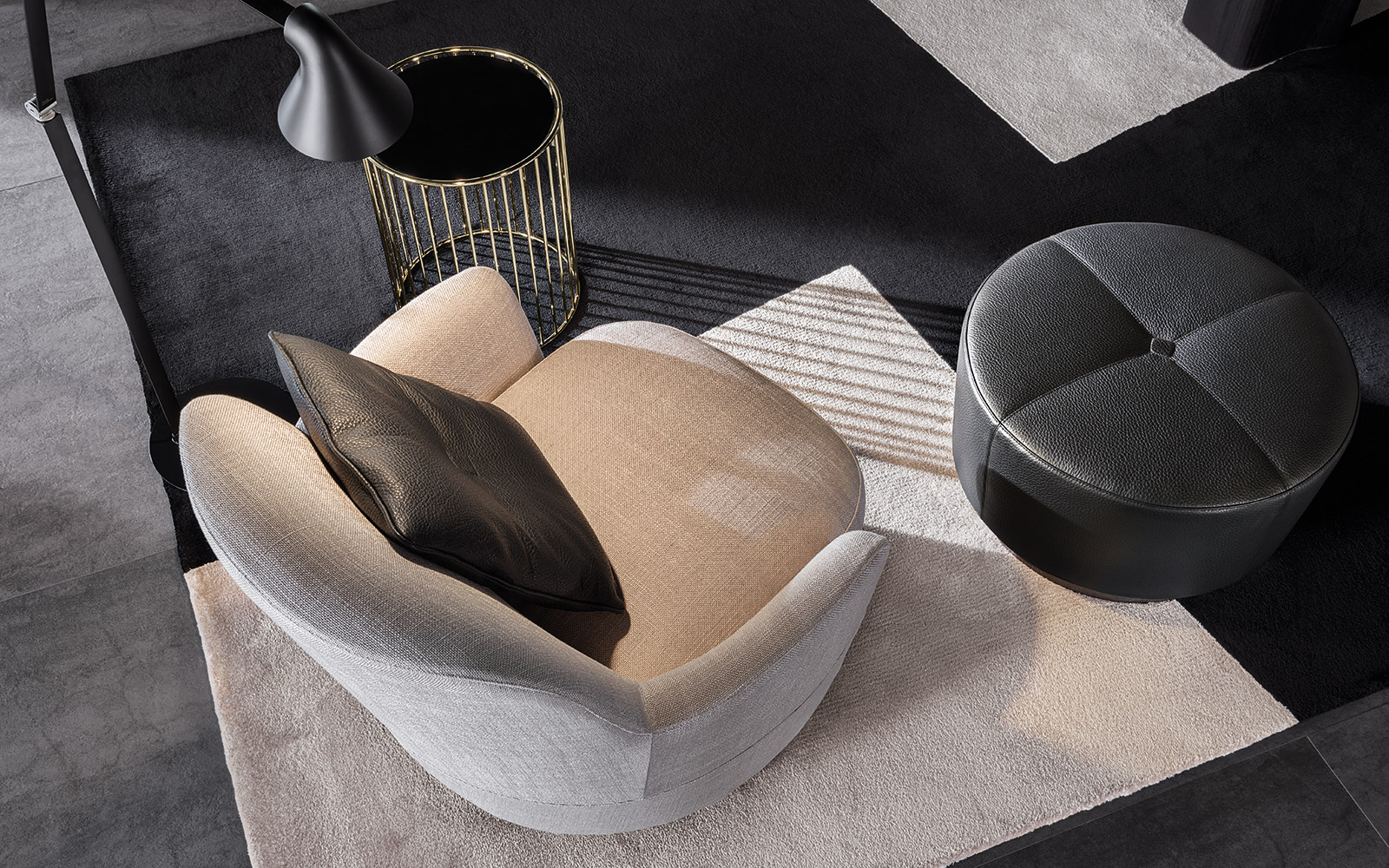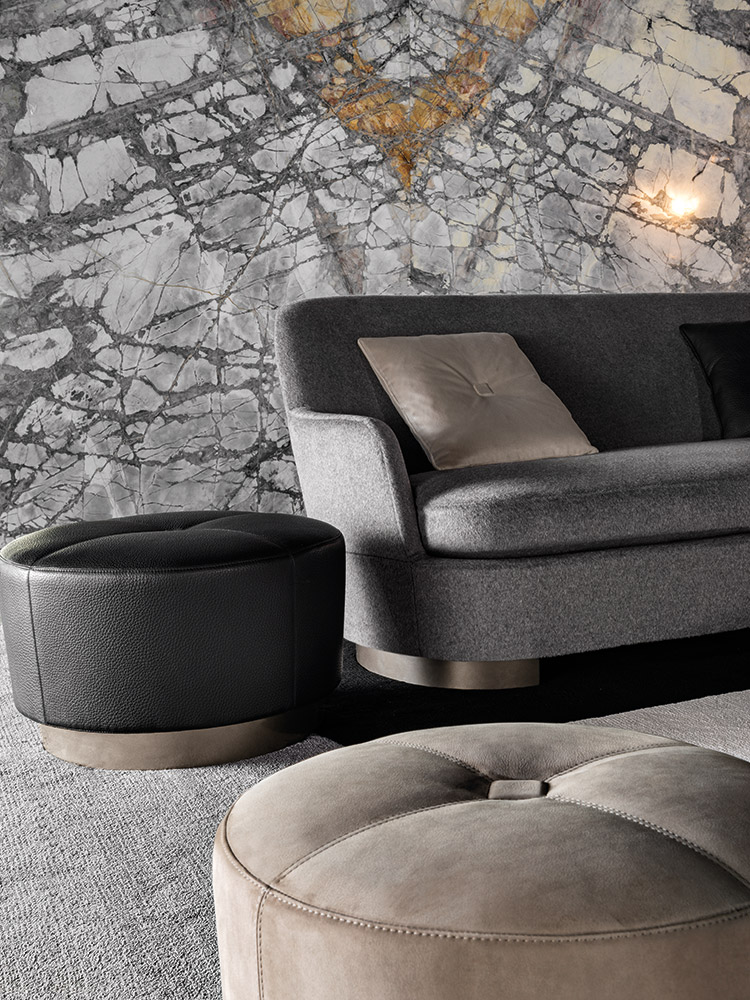 Jacques — универсальные пуфы с мягкой, округлой формой, способные выступать как дополнительное сиденье, подставка для ног или акцентный элемент интерьера. Гармонируют с одноимёнными креслами и диванами.