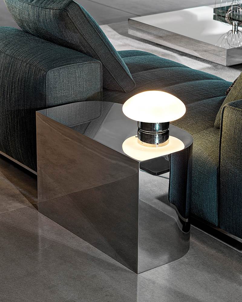 Столик James отличается архитектурной чёткостью и выразительной геометрией. Его асимметричные формы, сбалансированные по пропорциям, создают ощущение динамики. Идеально сочетается с мягкой мебелью коллекции Minotti, добавляя интерьеру графичный акцент.