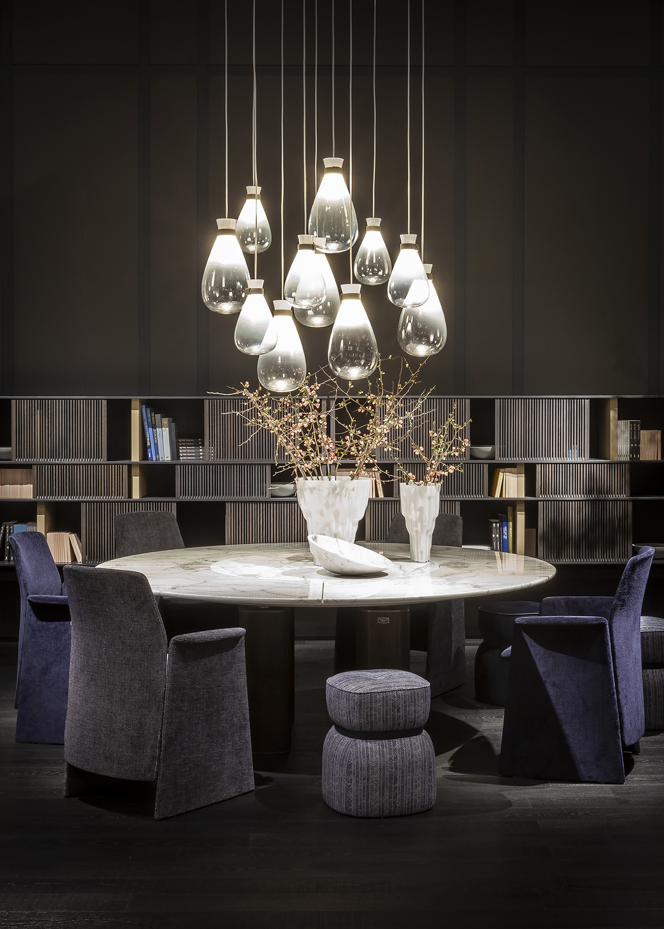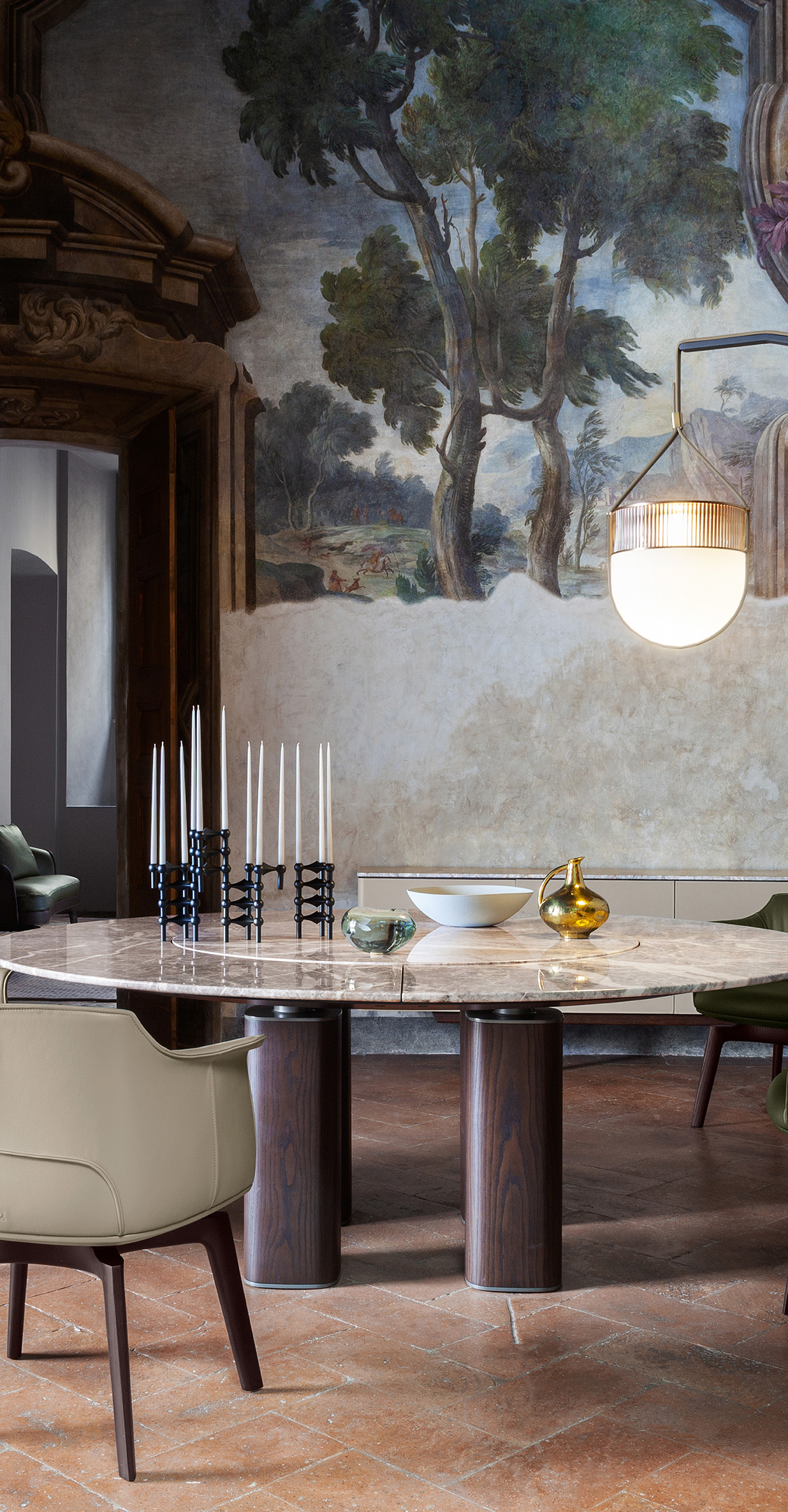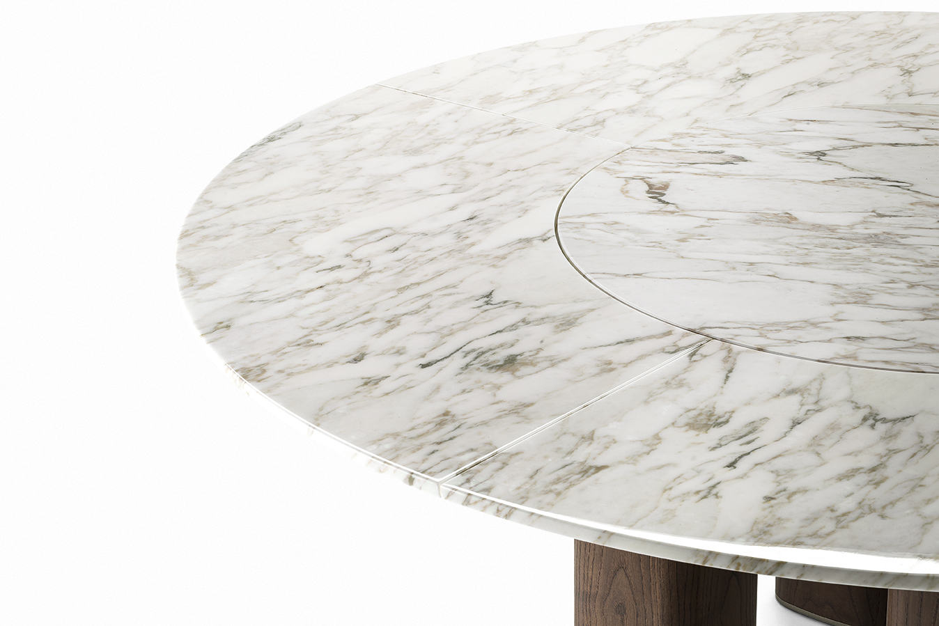 Стол Jane также доступен в версии круглый стол на четырёх колоннах с мраморной столешницей, состоящей из четырёх выдвижных радиальных секций и круглой центральной пластины, которая может поворачиваться по запросу (Lazy Susan). Центральная столешница доступна из мрамора Calacatta Gold, мрамора Emperador или мрамора Fior di Pesco (с глянцевой или полуглянцевой отделкой). Радиальные секции можно выдвинуть на расстояние до 10 см для облегчения уборки. Они доступны в вариантах «золото Калакатта» или «мрамор Имперадор» с глянцевой отделкой, соответствующей отделке центрального диска.
