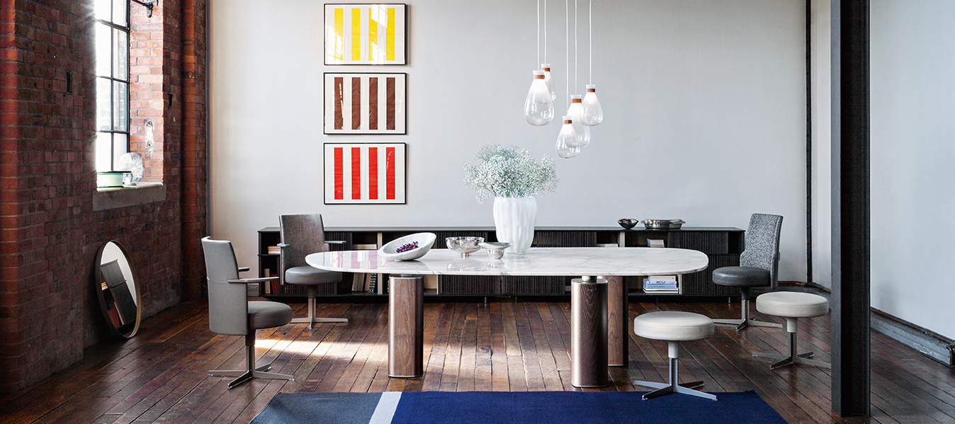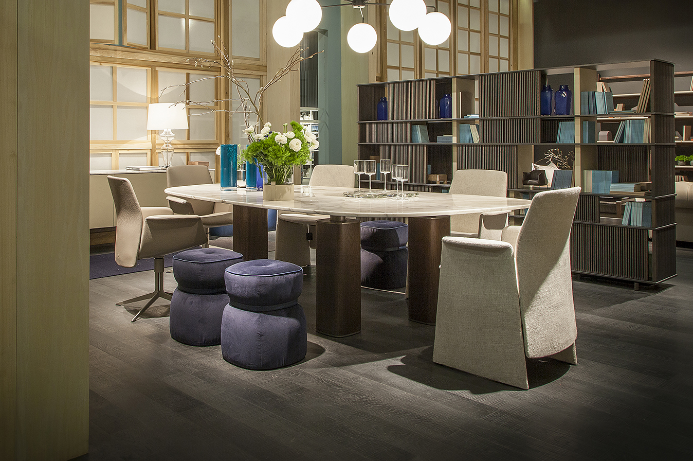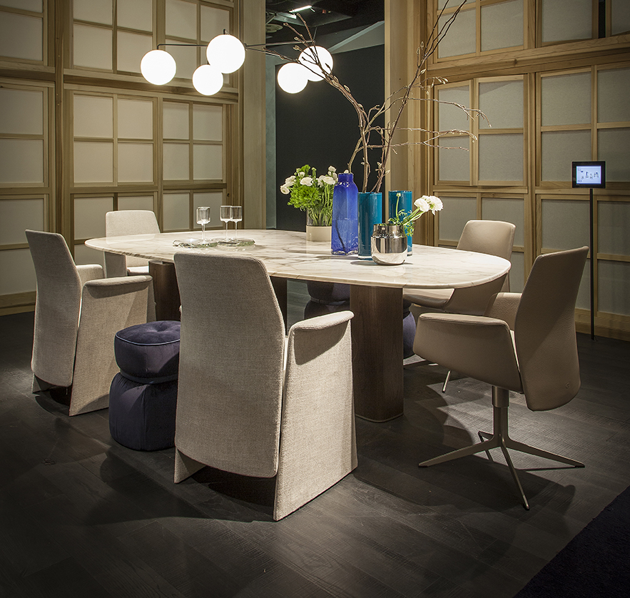 Стол Jane также доступен в версии круглый стол на четырёх колоннах с мраморной столешницей, состоящей из четырёх выдвижных радиальных секций и круглой центральной пластины, которая может поворачиваться по запросу (Lazy Susan). Центральная столешница доступна из мрамора Calacatta Gold, мрамора Emperador или мрамора Fior di Pesco (с глянцевой или полуглянцевой отделкой). Радиальные секции можно выдвинуть на расстояние до 10 см для облегчения уборки. Они доступны в вариантах «золото Калакатта» или «мрамор Имперадор» с глянцевой отделкой, соответствующей отделке центрального диска.