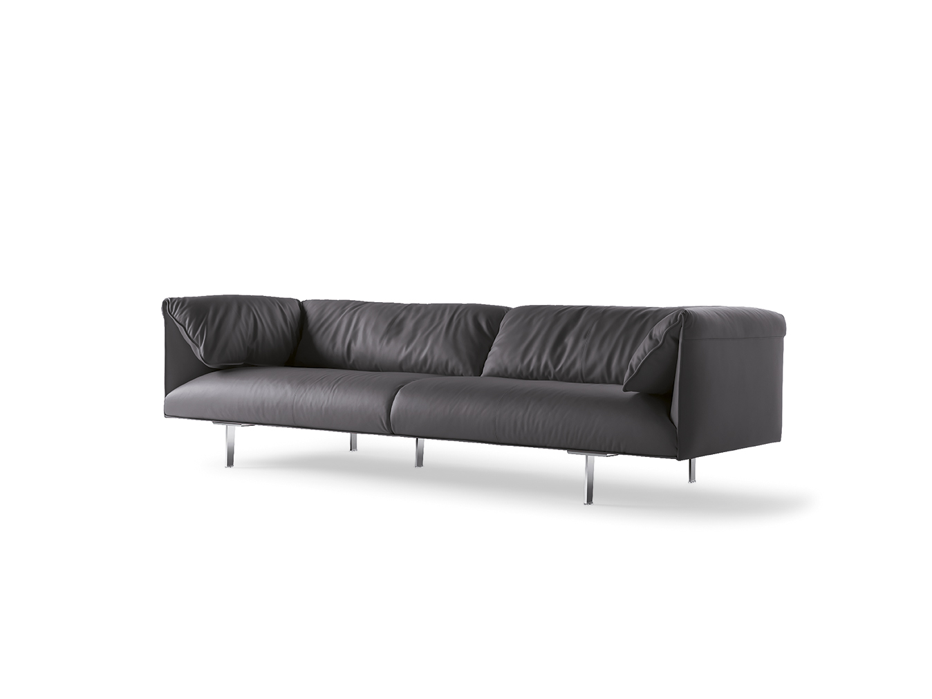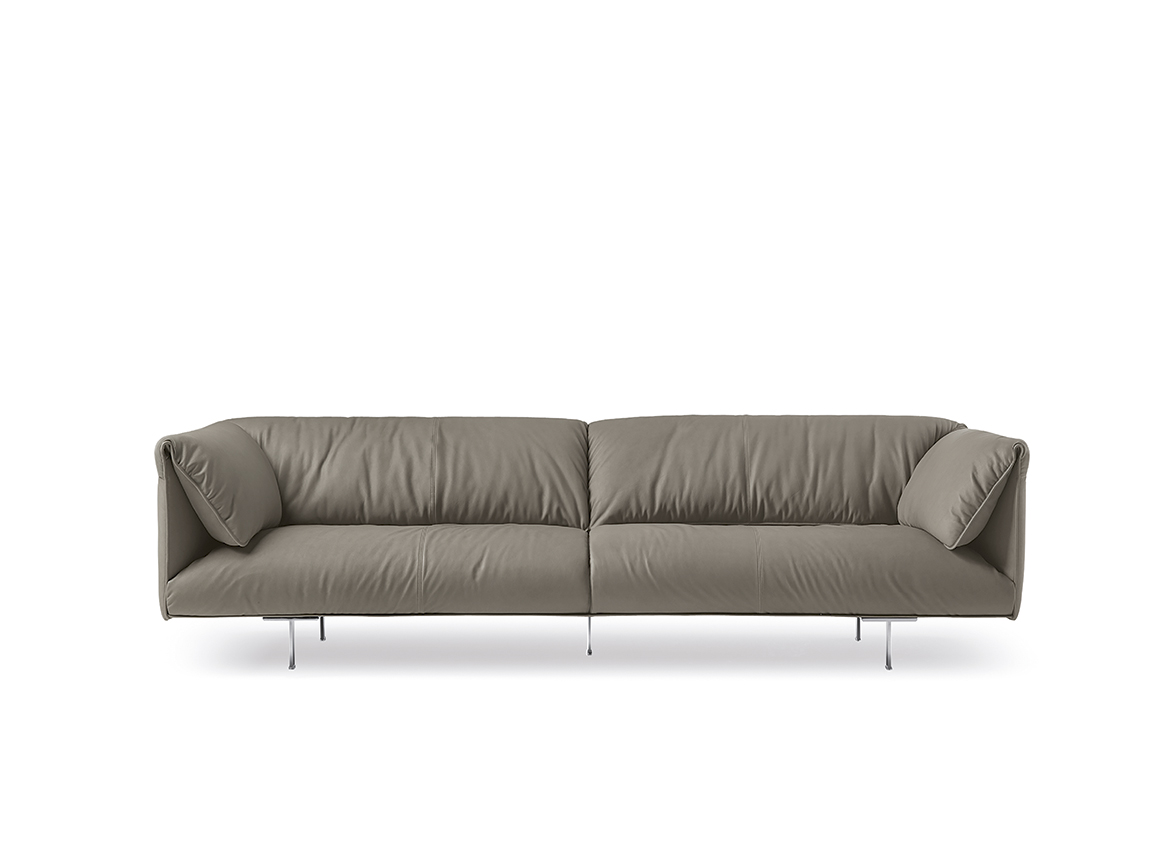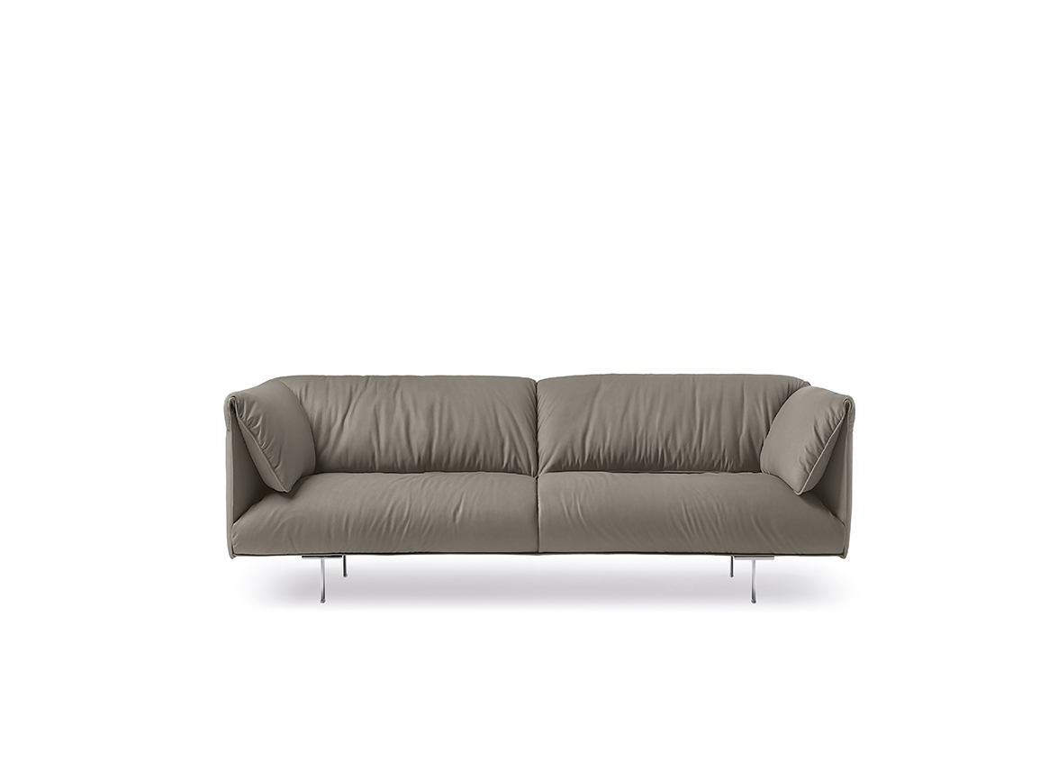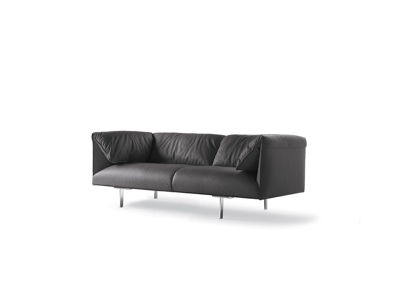 Диван John-John имеет прочный буковый каркас с центральной железной перекладиной. Спинка и подлокотники, наполненные пенополиуретаном и синтепоном, изготовлены из массива бука и тополя, а панели – из фанеры из тополя и березы. Подушки, набитые мягким гусиным пухом и обтянутые сзади микроперфорированной кожей Pelle Frau®, адаптируются к движениям тела и подчёркивают мягкость и комфорт сиденья. Система пружин сиденья состоит из эластичных ремней. Алюминиевые ножки с рутениевым покрытием и прозрачными пластиковыми защитными колпачками.