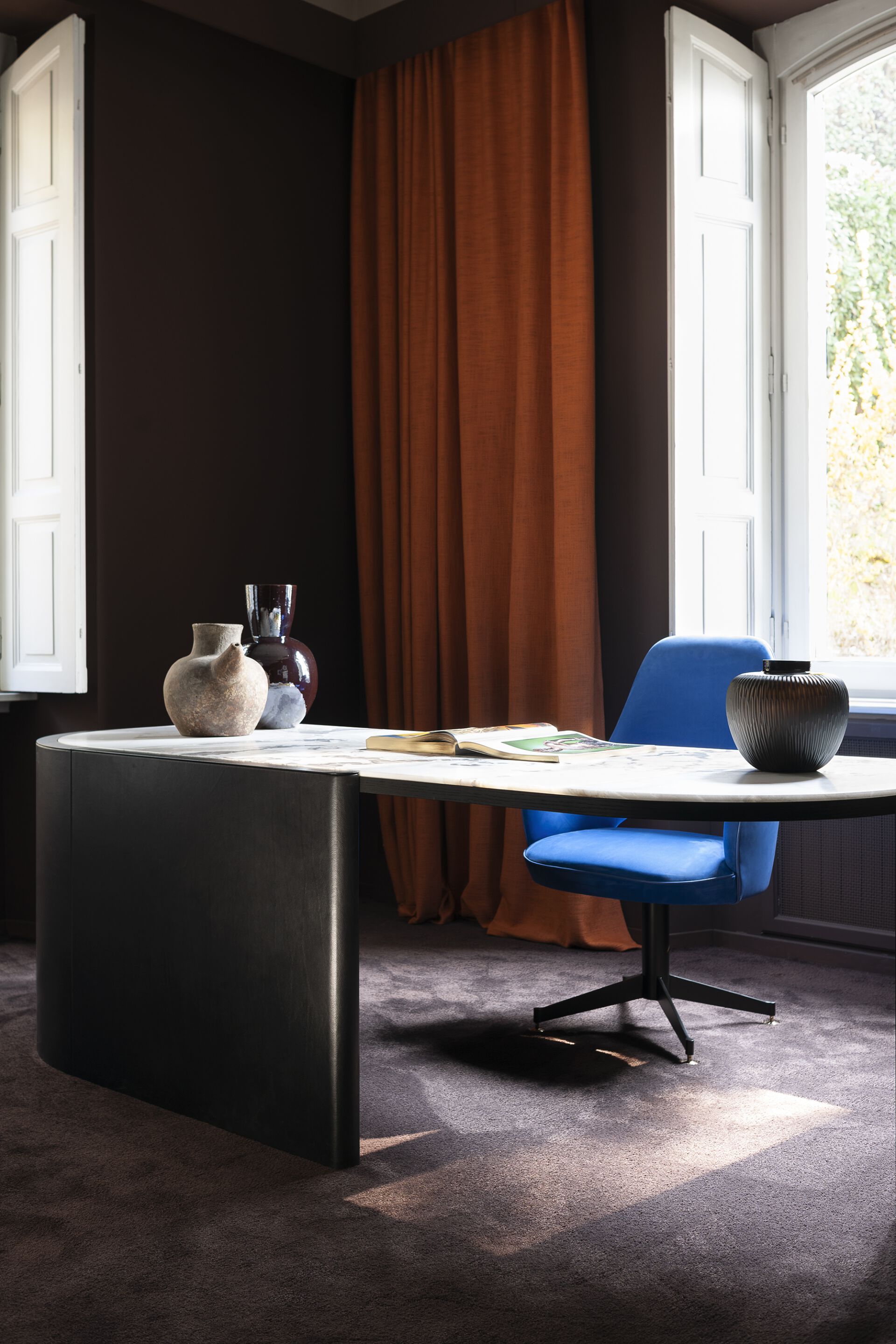 Коллекция Joni, созданная Кристофом Делькуром, вдохновлена стилем 1970-х годов, переосмысленным в духе современного минимализма. Массивная столешница опирается на основание, частично прикрывающее ящики, создавая игру между пустотой и наполненностью. Криволинейные формы, свободные от жёсткой геометрии, напоминают о духе свободы и путешествий.