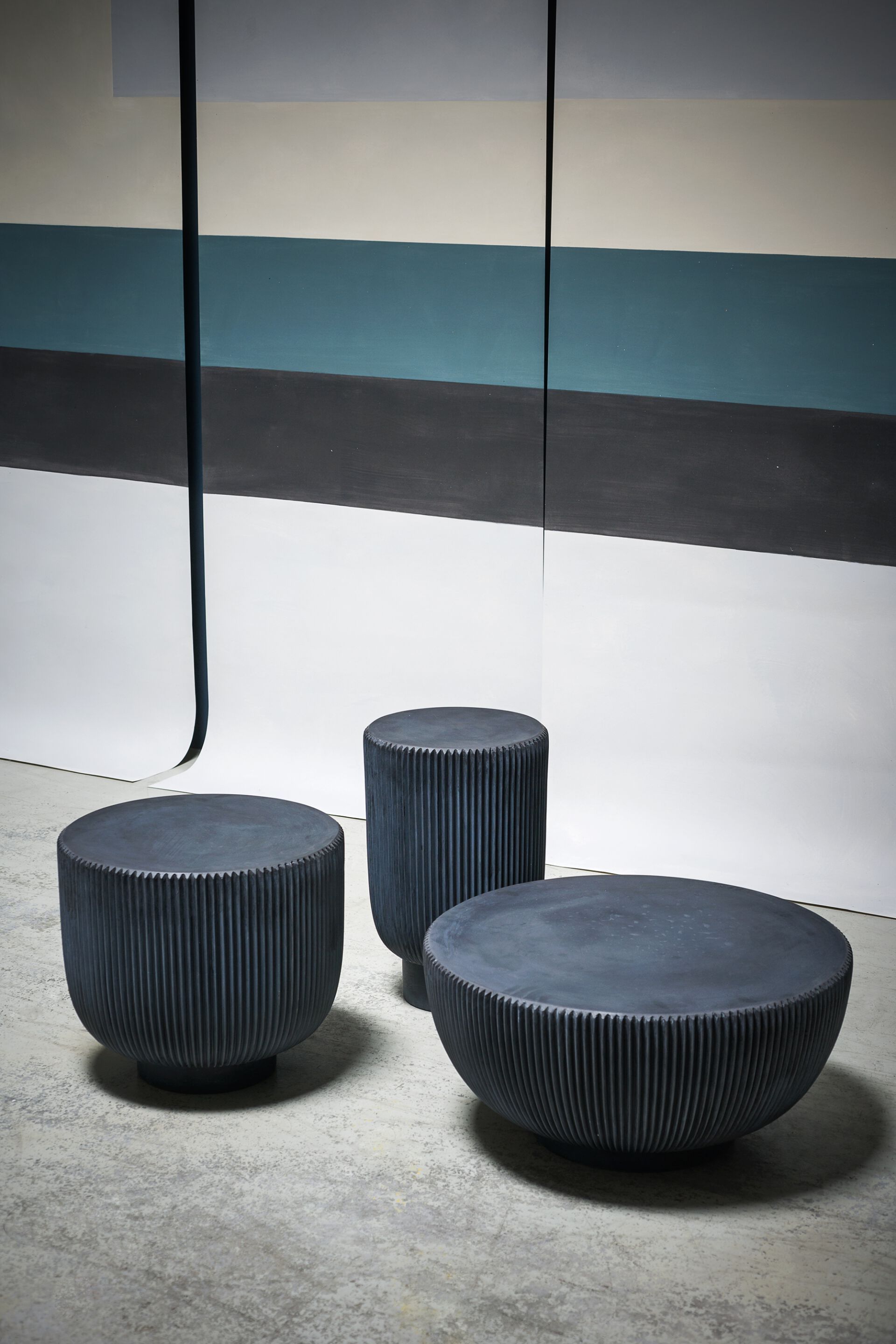 Маленький столик, разработанный Draga&Aurel. Круглая конструкция из литого бетона с вертикальными складками на поверхности. Доступен в цветах мшисто-синий, серый голубой и зеленый. Со временем могут появляться микро-трещины, что характерно для бетонных поверхностей.