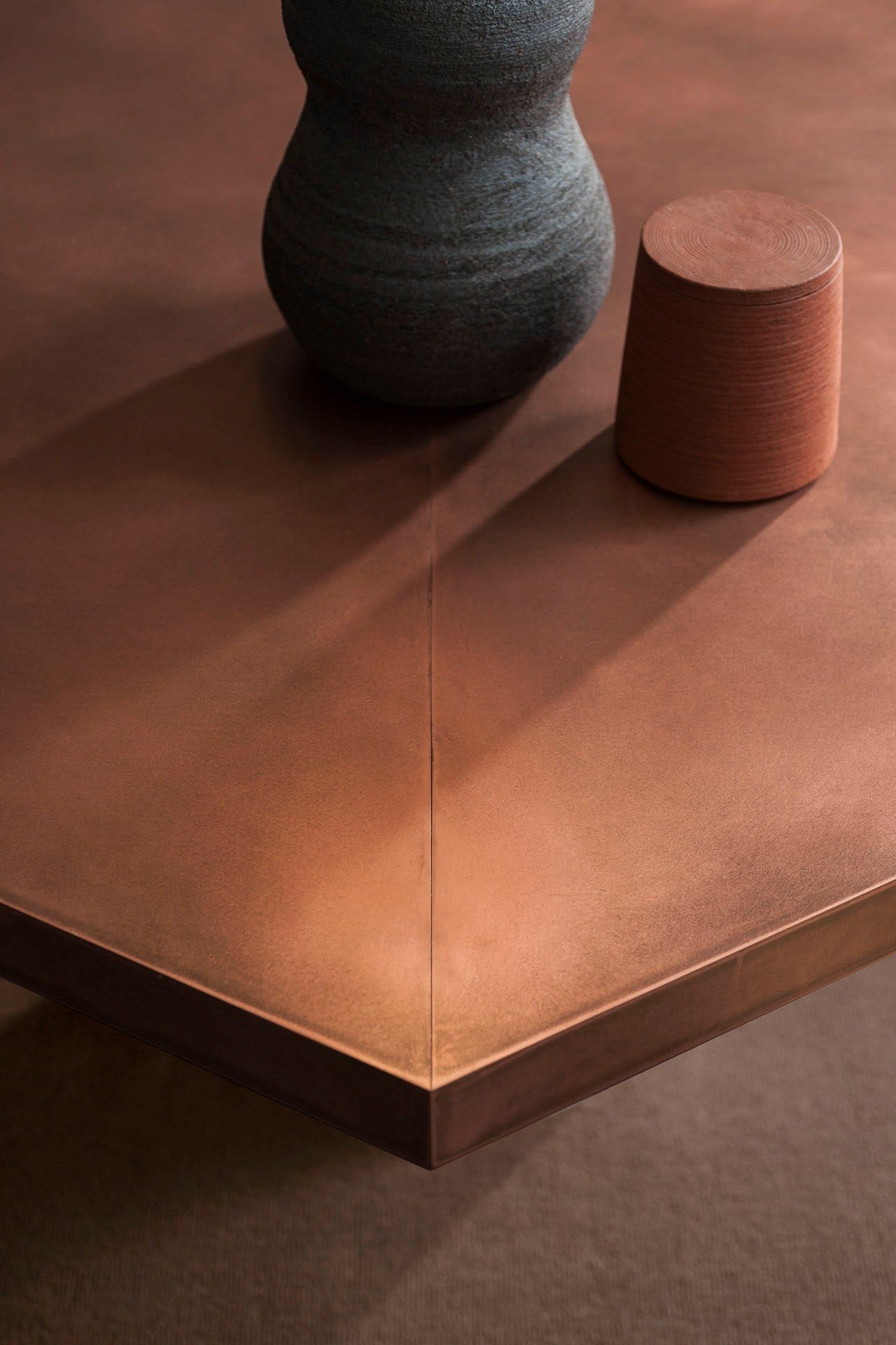 Столешница: сотовая структура, отделка материалом на выбор с матовым лаком или натуральный мрамор Travertino White с полировкой смолой, патинированной отделкой и водоотталкивающим маслом.