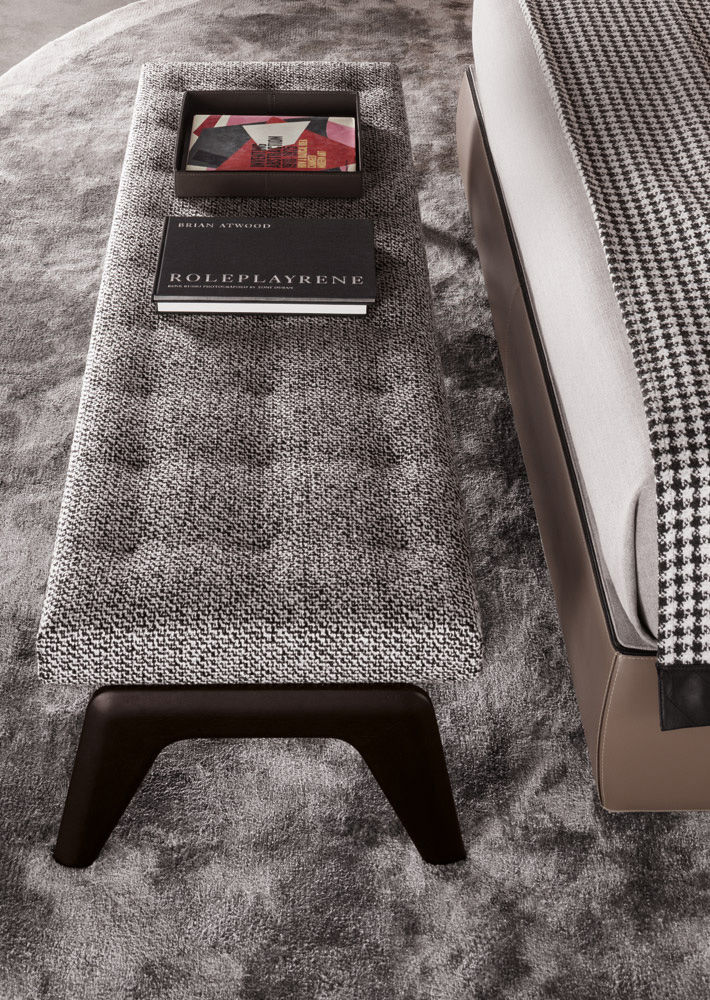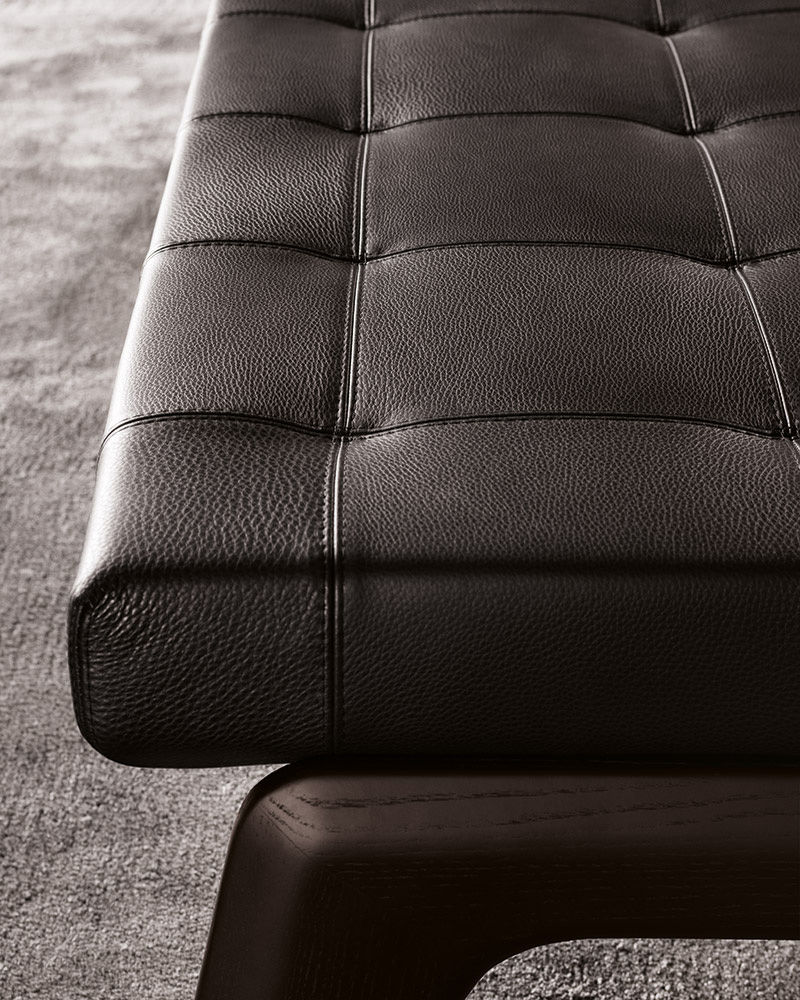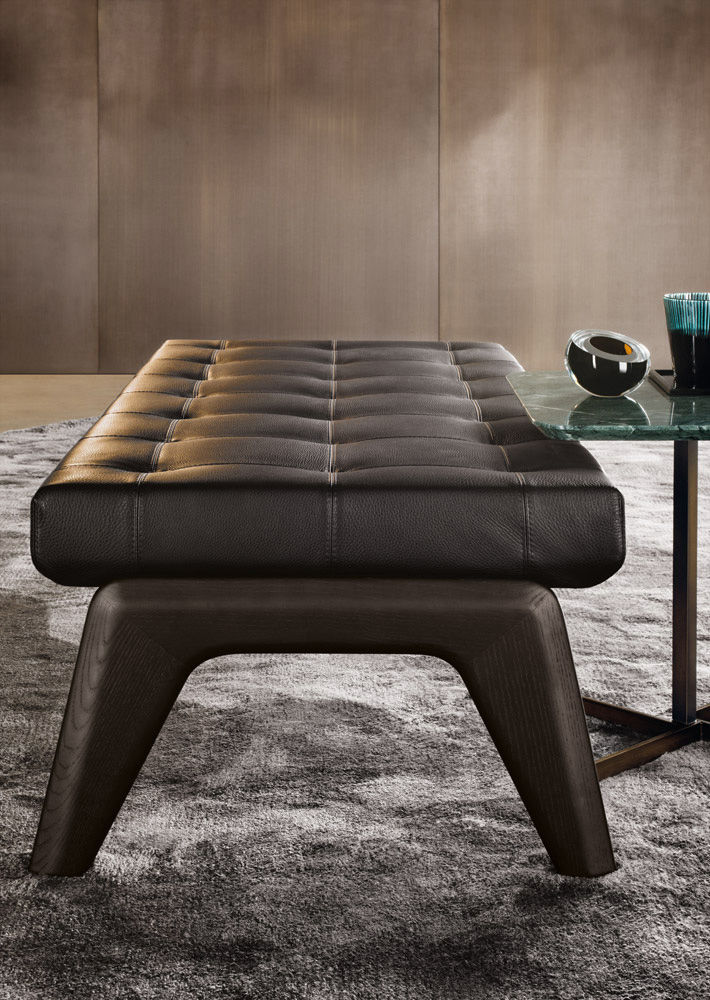 Kirk Bench сочетает в себе современный дизайн и функциональность. Его структура из многослойной древесины с полиуретановой пеной разной плотности обеспечивает прочность и комфорт.