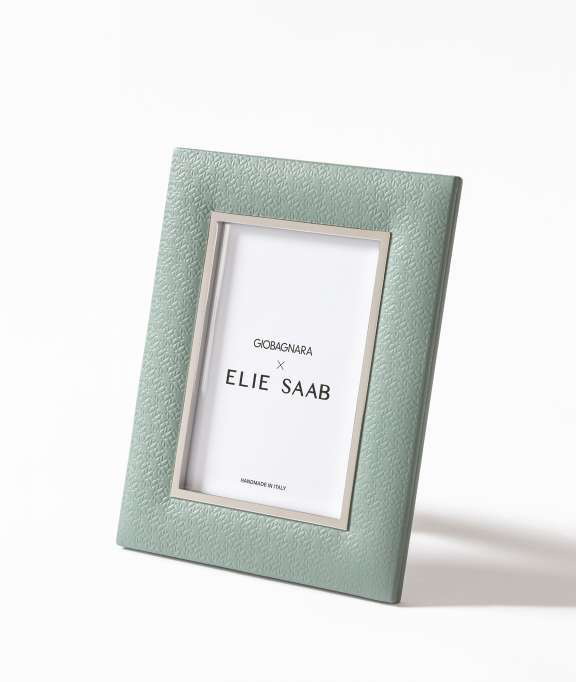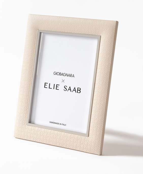 Кожаная рамка с мягкой отделкой и отделкой из полированного палладия, украшенная эксклюзивным узором ELIE SAAB Monogram.