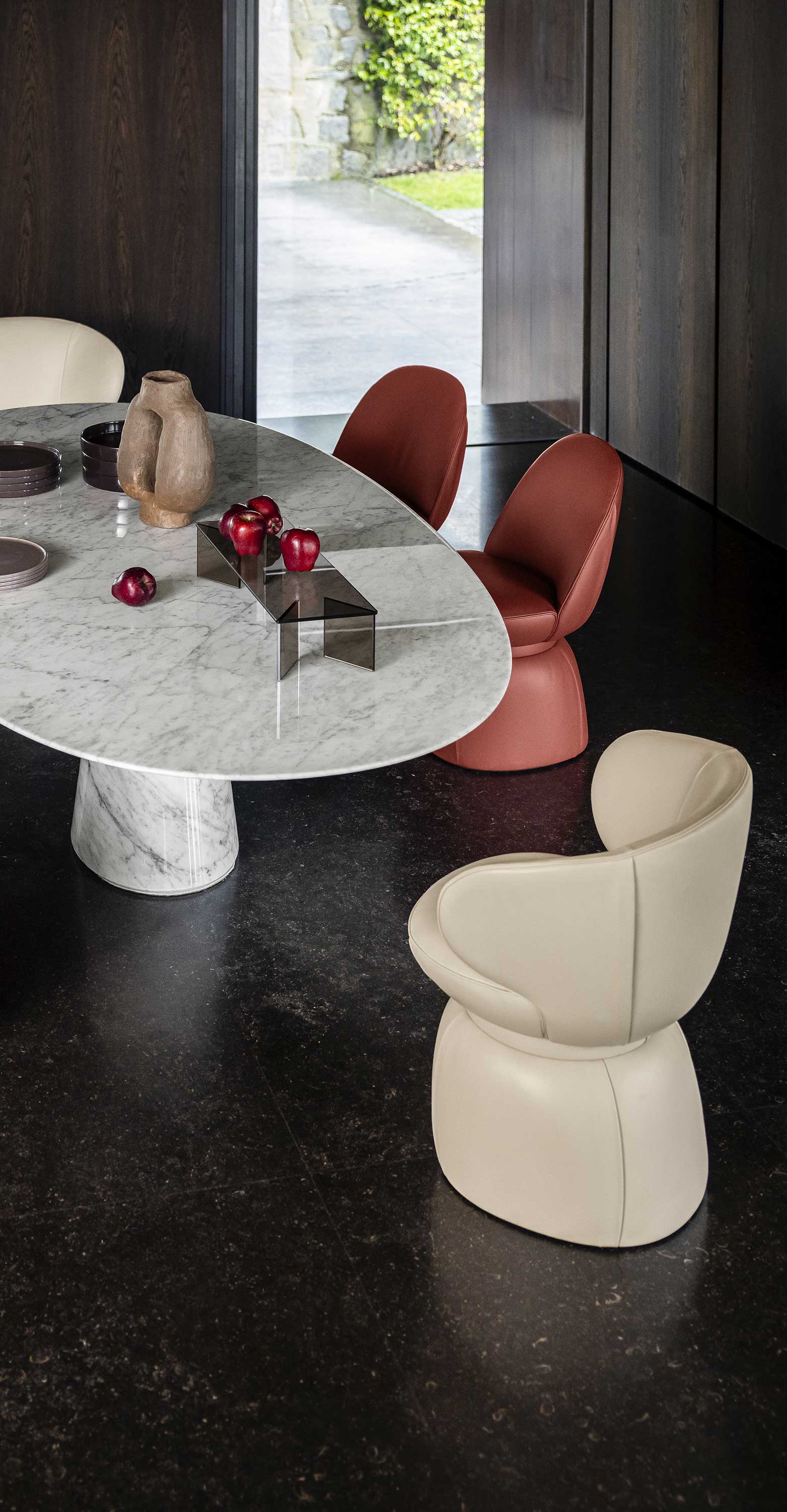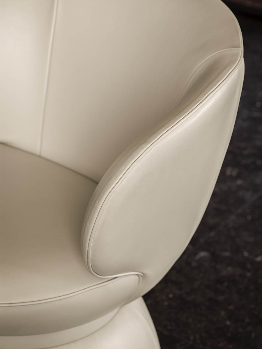 Мягкое кресло Leplì изготовлено из берёзовой и тополевой фанеры с наполнителем из крафт-картона. Каркас спинки изготовлен из Polimex® и тополевой фанеры. Наполнитель выполнен из пенополиуретана и полиэстеровой ваты. Кресло Leplì доступно в различных сочетаниях кожи и ткани. Основание: стационарное, изготовлено из МДФ, окрашенного в чёрный цвет и устойчивого к царапинам; поворотное, с механизмом возврата на 360° и возвратом в исходное положение; и на колёсах, с пятью поворотными колёсами, вмонтированными в основание.