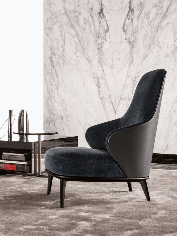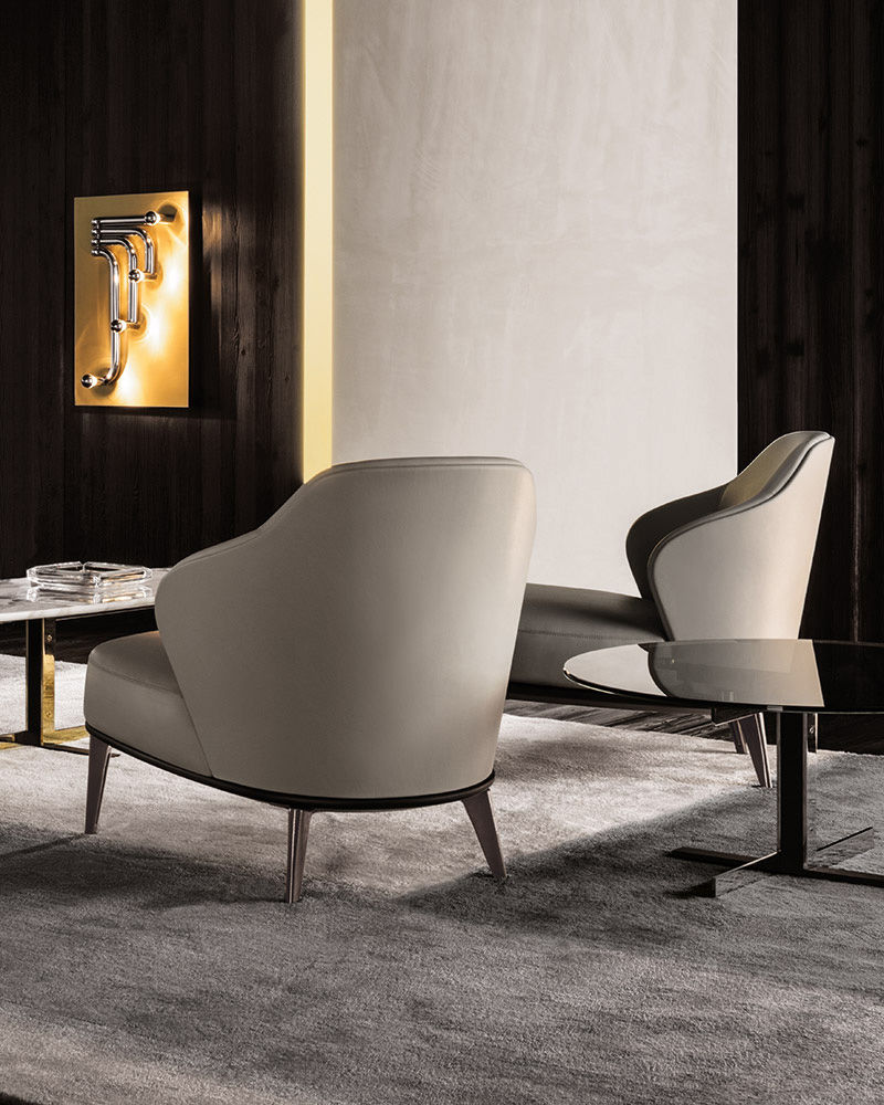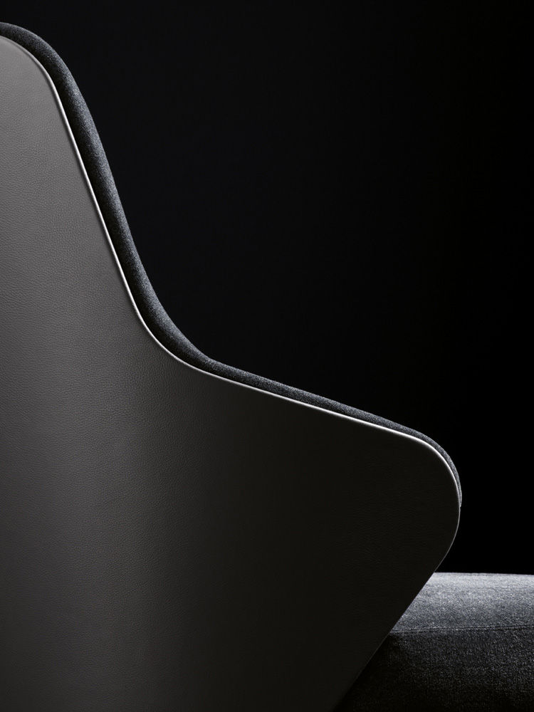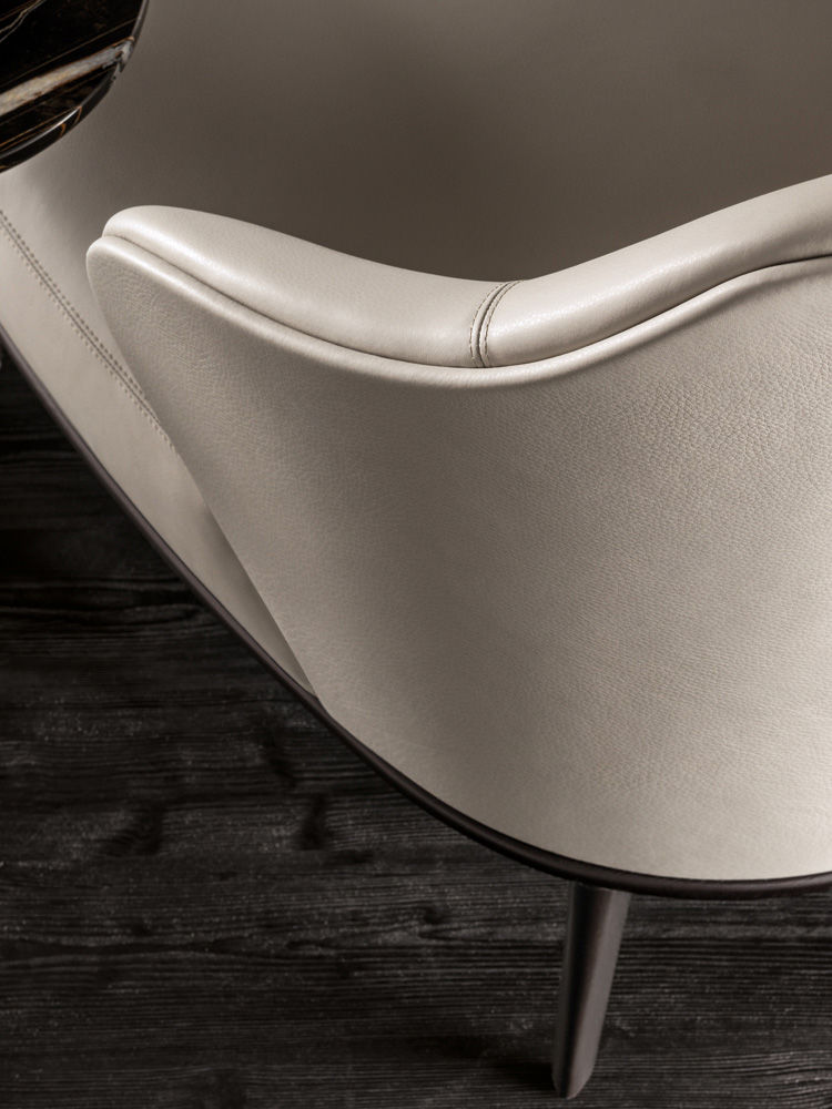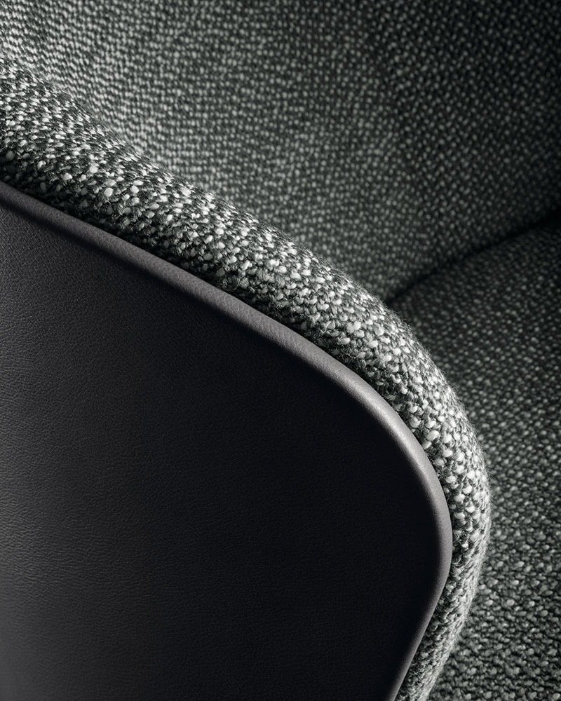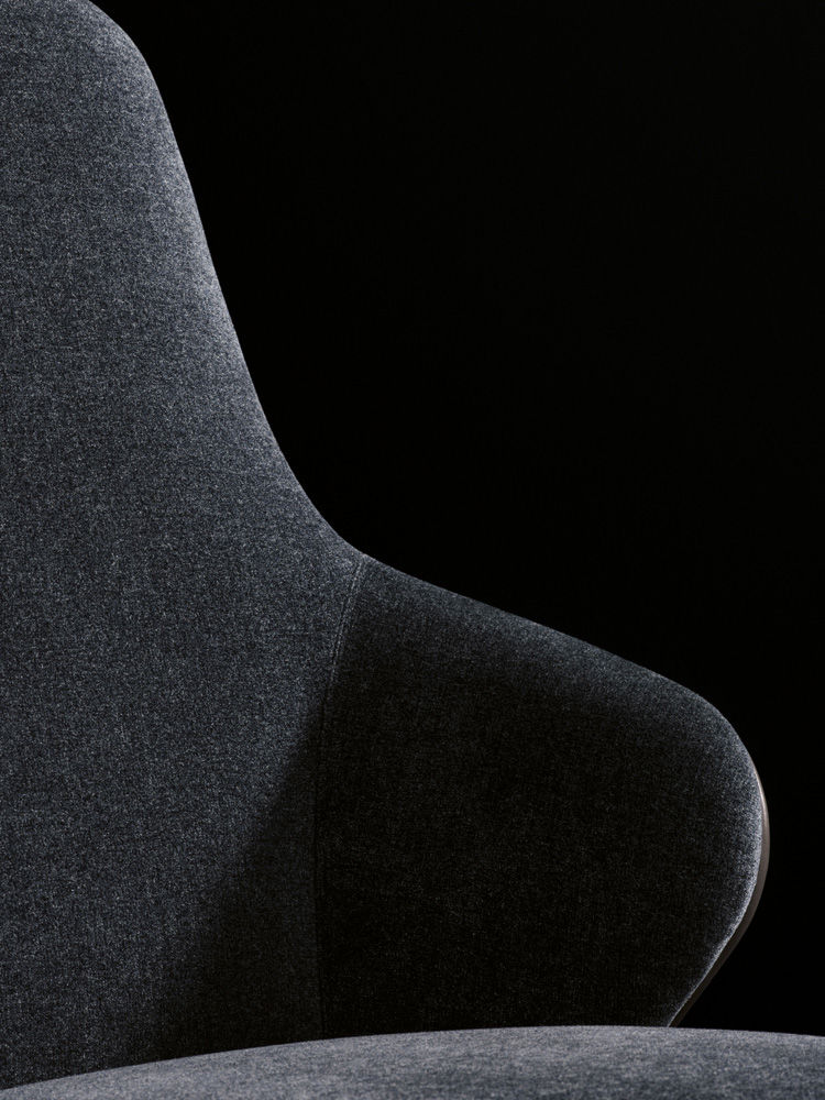 Leslie — уютное кресло с плавными очертаниями и продуманной эргономикой. Замкнутая спинка обеспечивает приватность и комфорт при посадке.