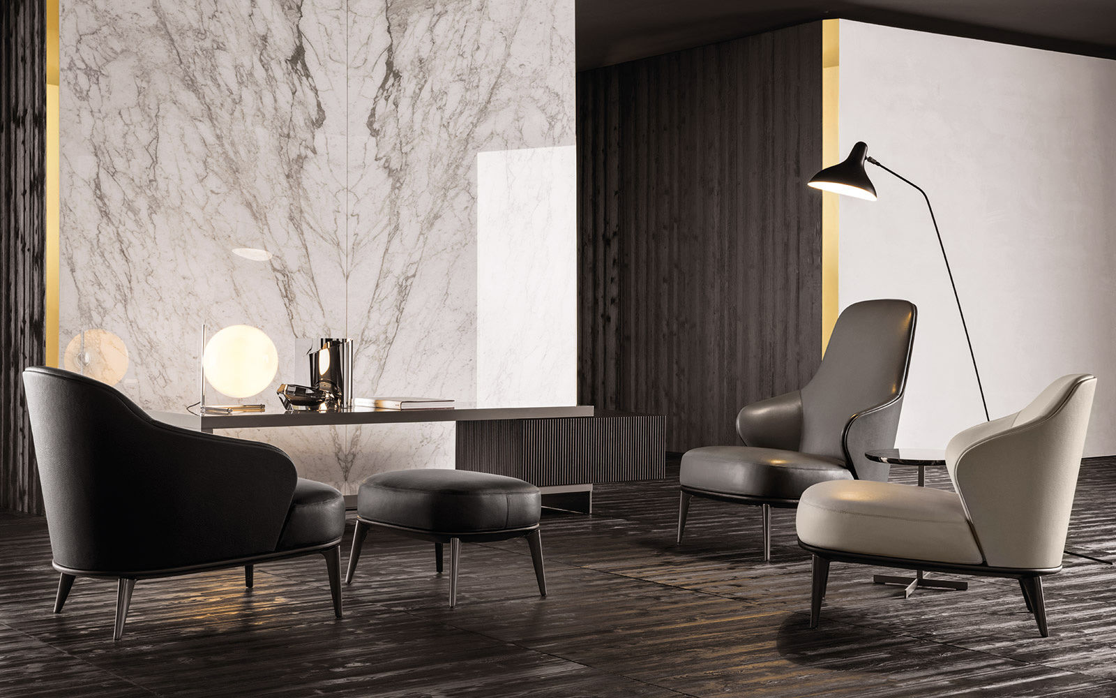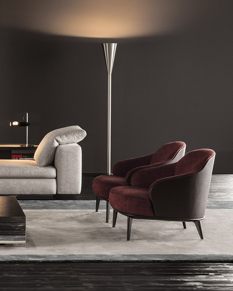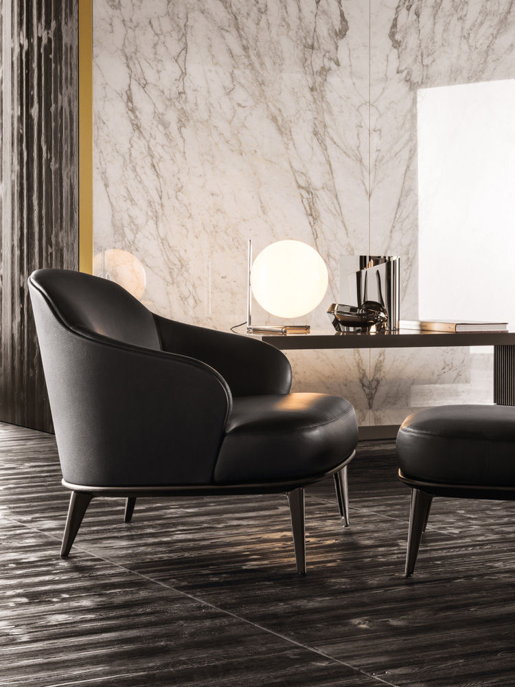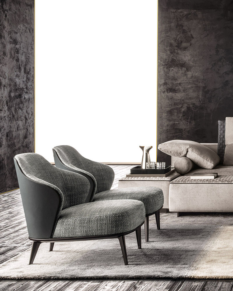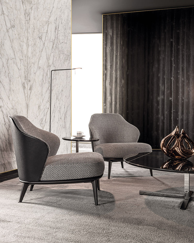 Leslie — уютное кресло с плавными очертаниями и продуманной эргономикой. Замкнутая спинка обеспечивает приватность и комфорт при посадке.
