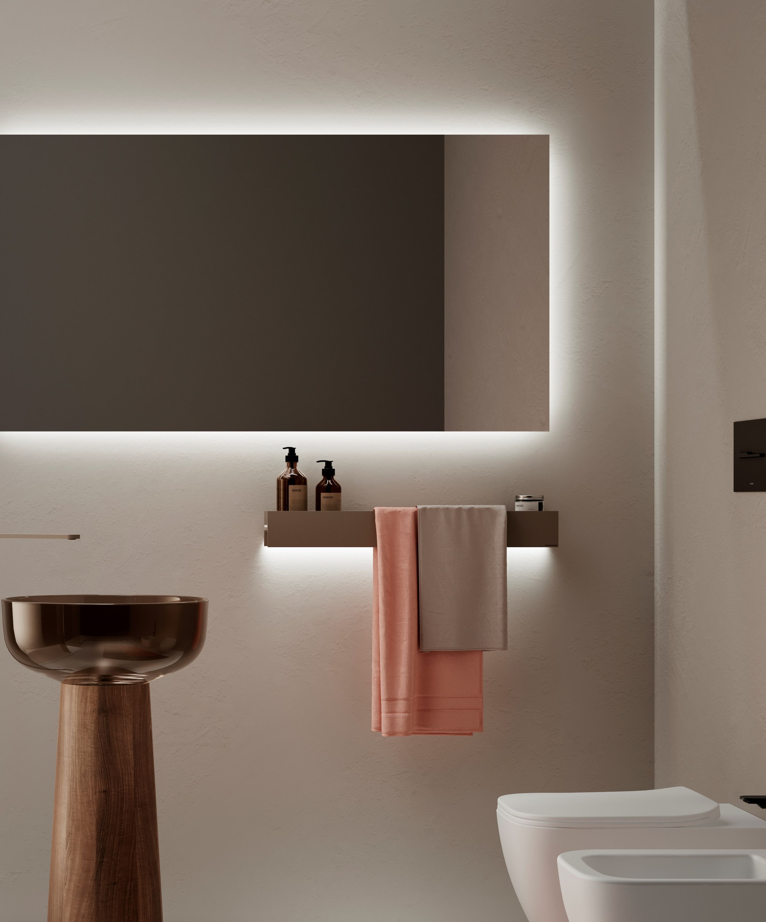 Универсальна — подходит для ванной (у раковины, возле ванны, в душевой), но стильно смотрится и на кухне, в гостиной или спальне благодаря чистой архитектурной форме
